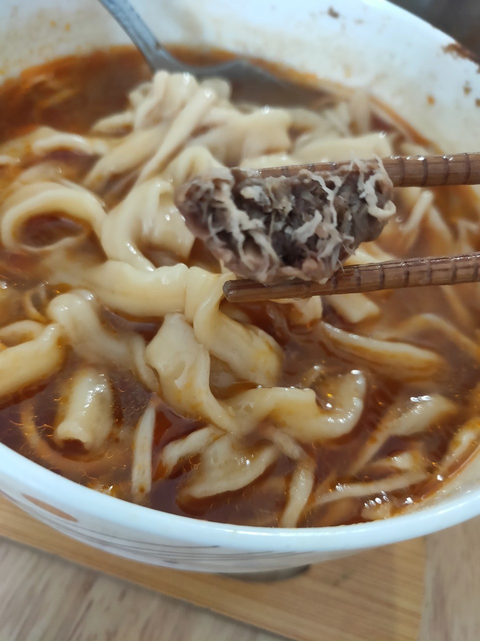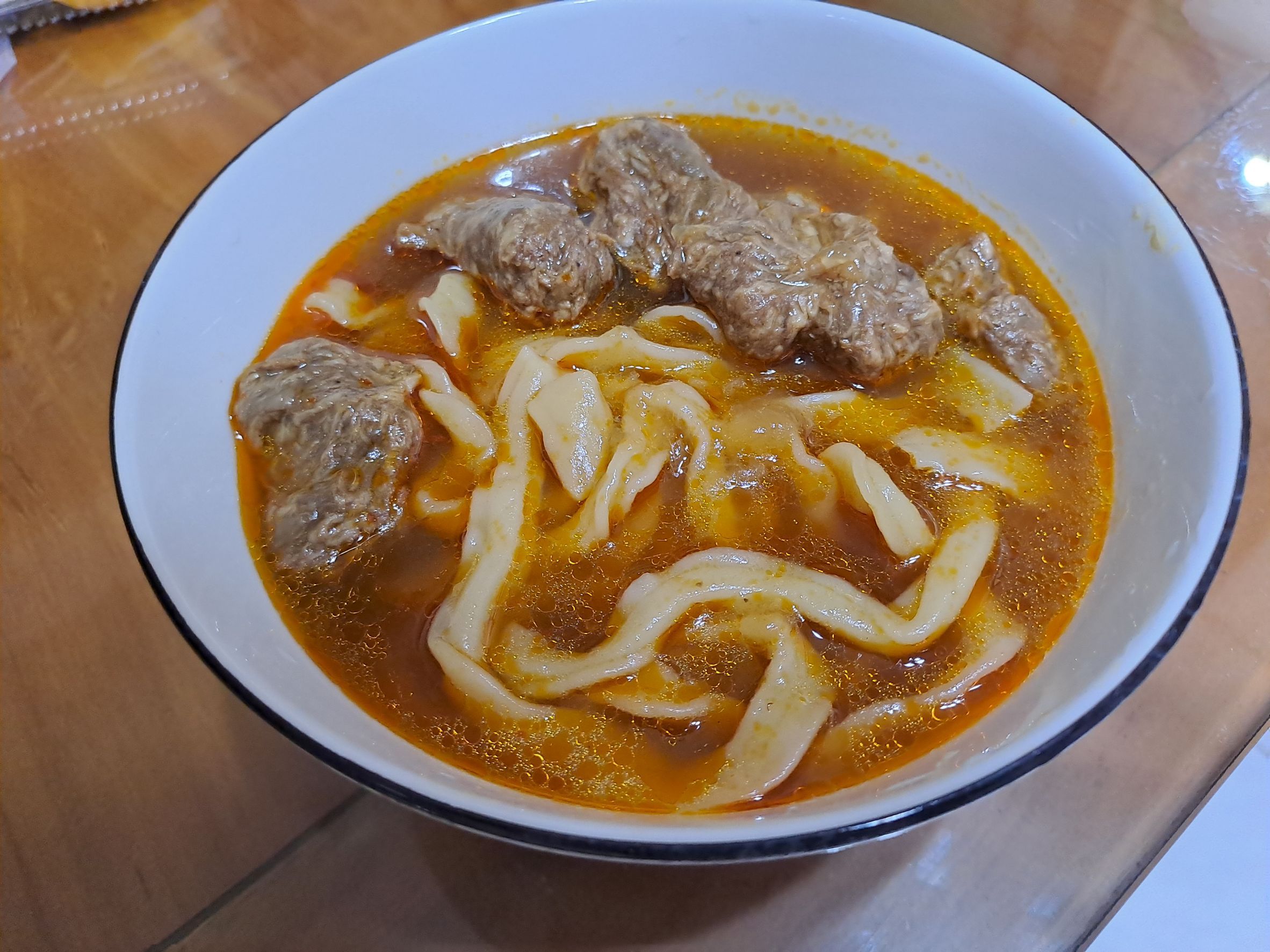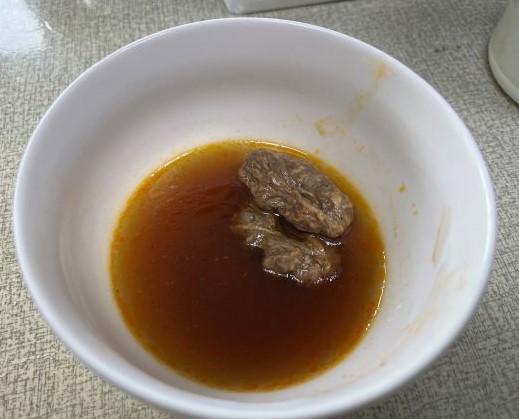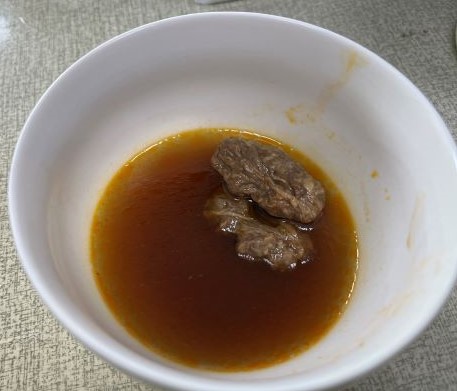 2)微波加熱:將解凍後之調理包及牛肉塊包,倒入容器中微波加熱6-7分鐘(家用700W)。