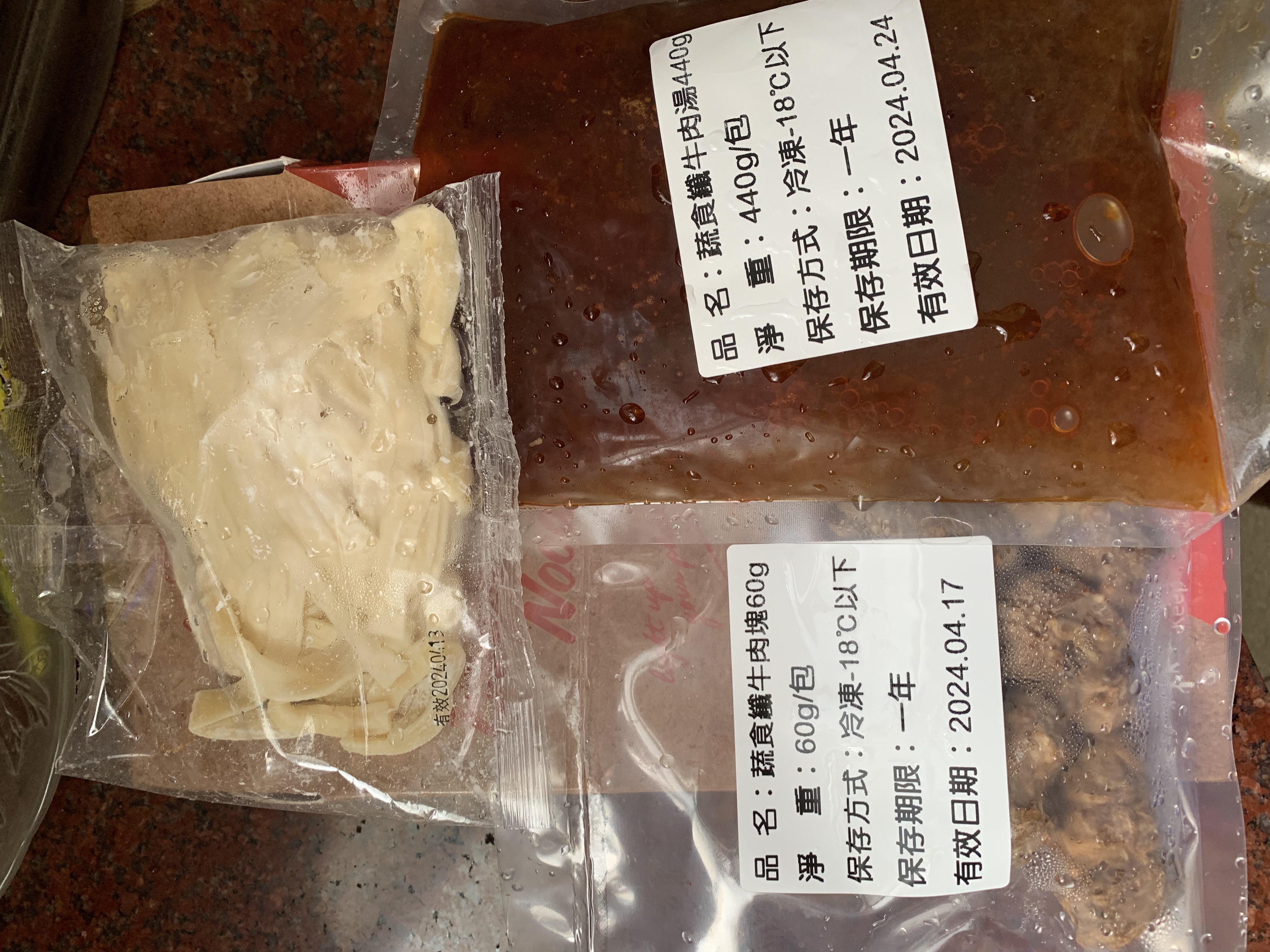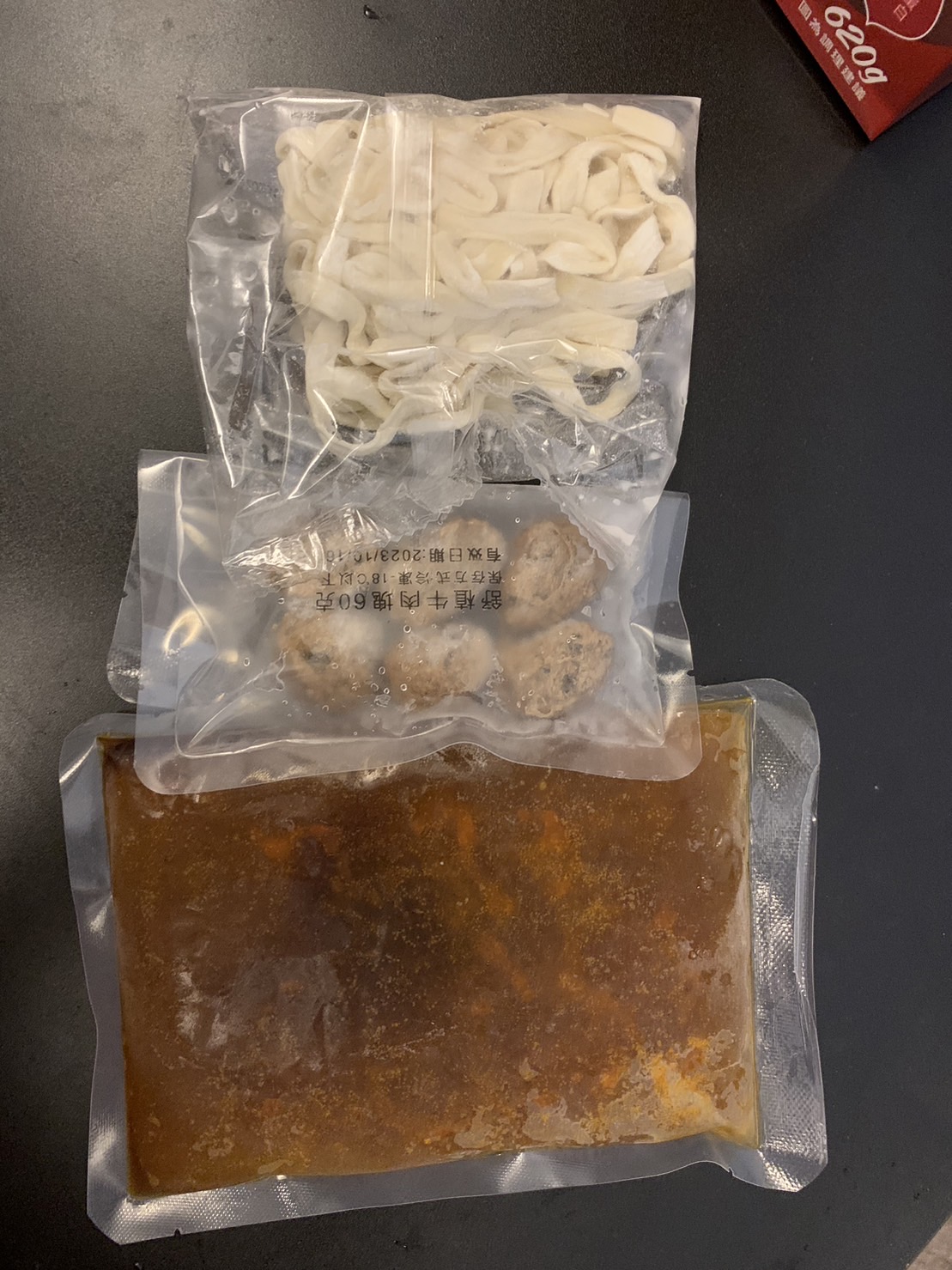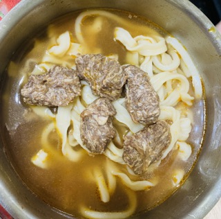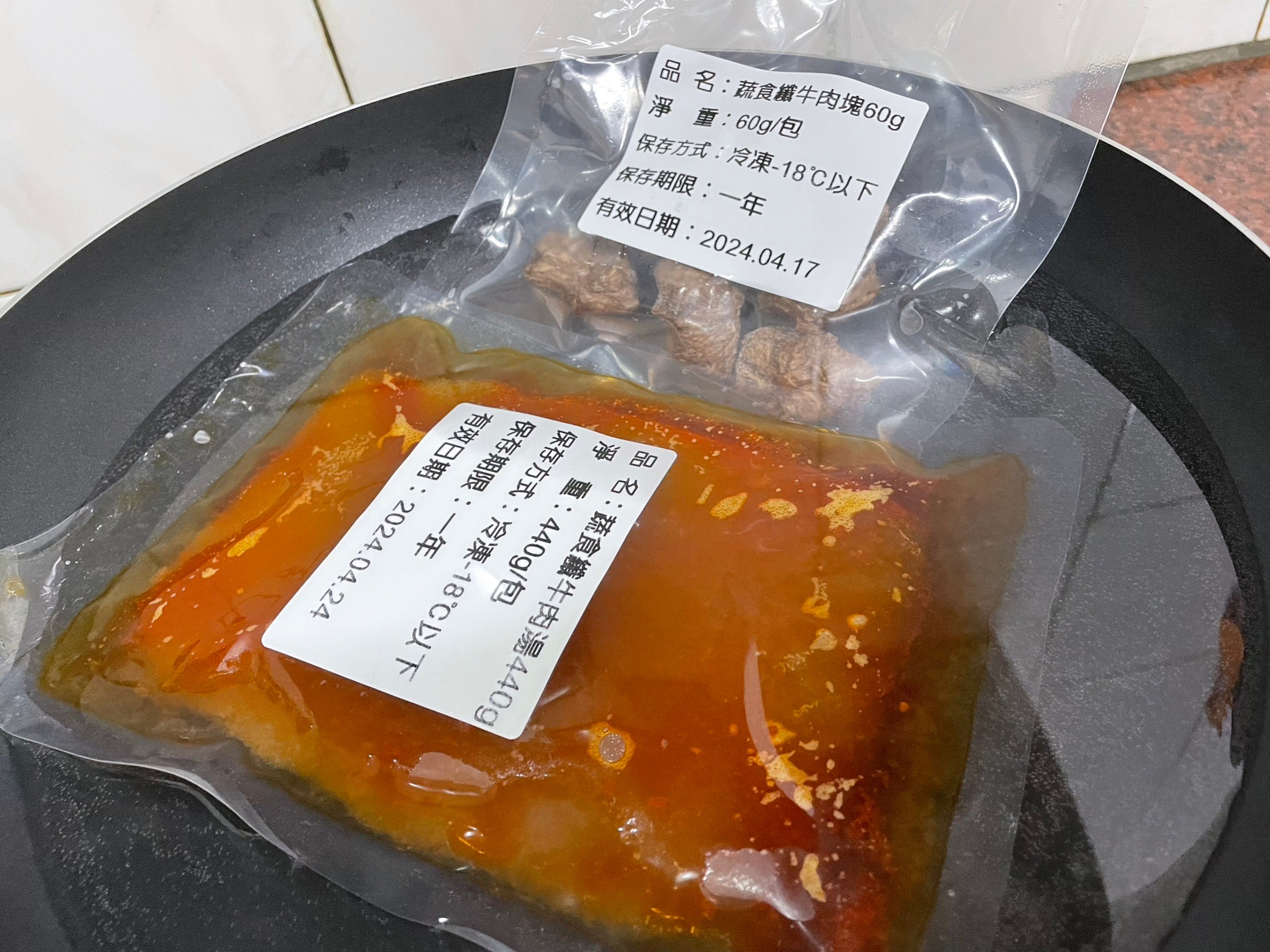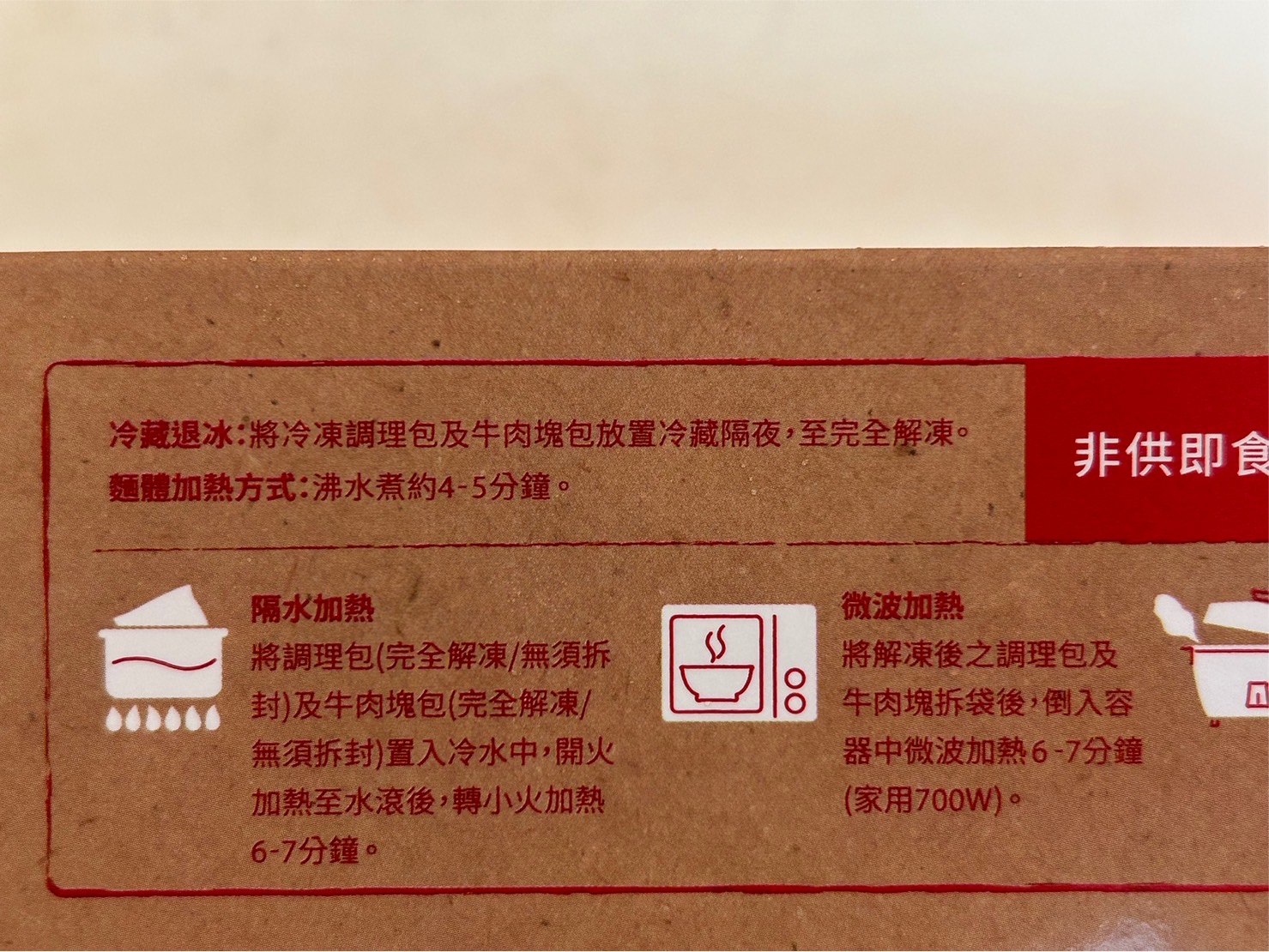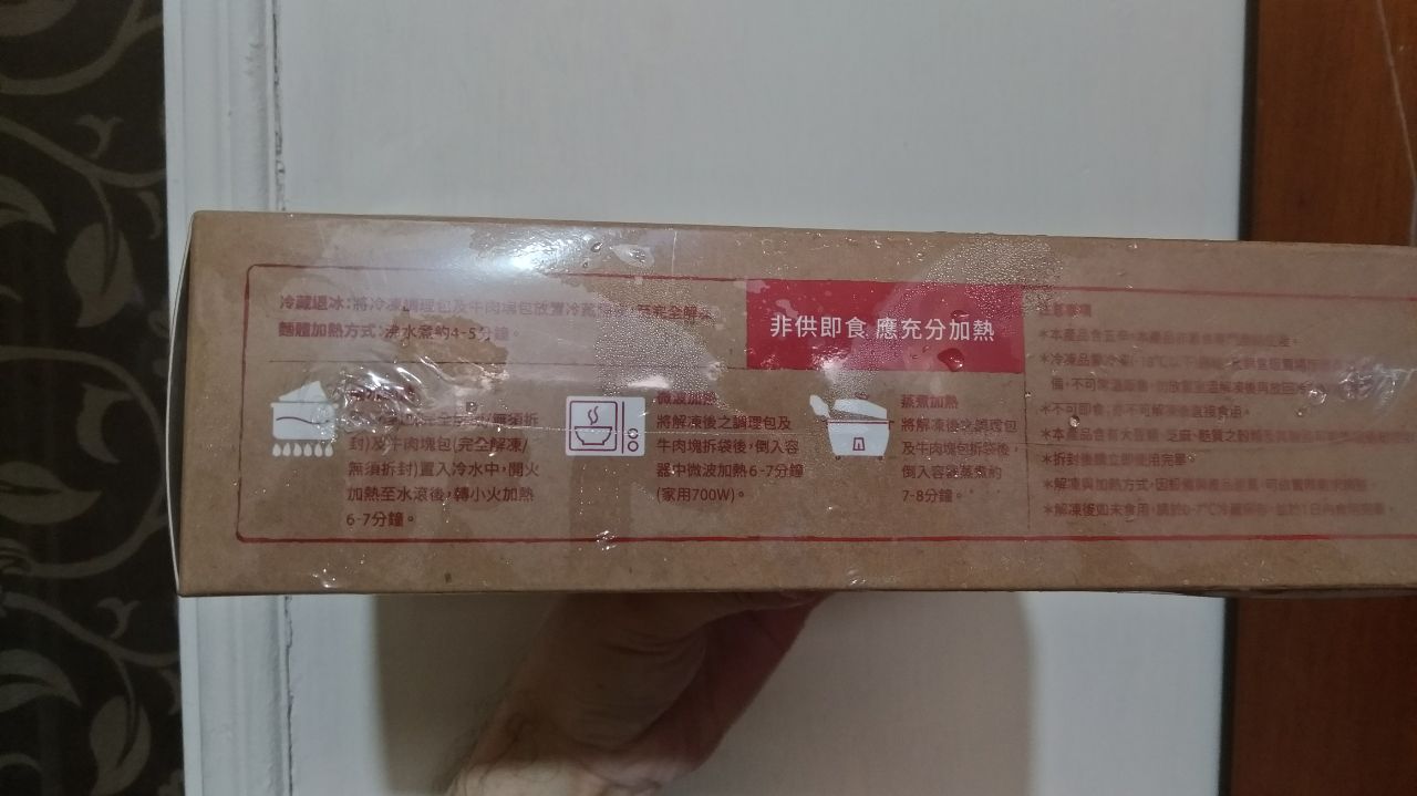 1)隔水加熱:將調理包(完全解凍/無須拆封)及牛肉塊包(完全解凍/無須拆封),置入冷水中,開火加熱至水滾後,轉小火加熱6-7分鐘。