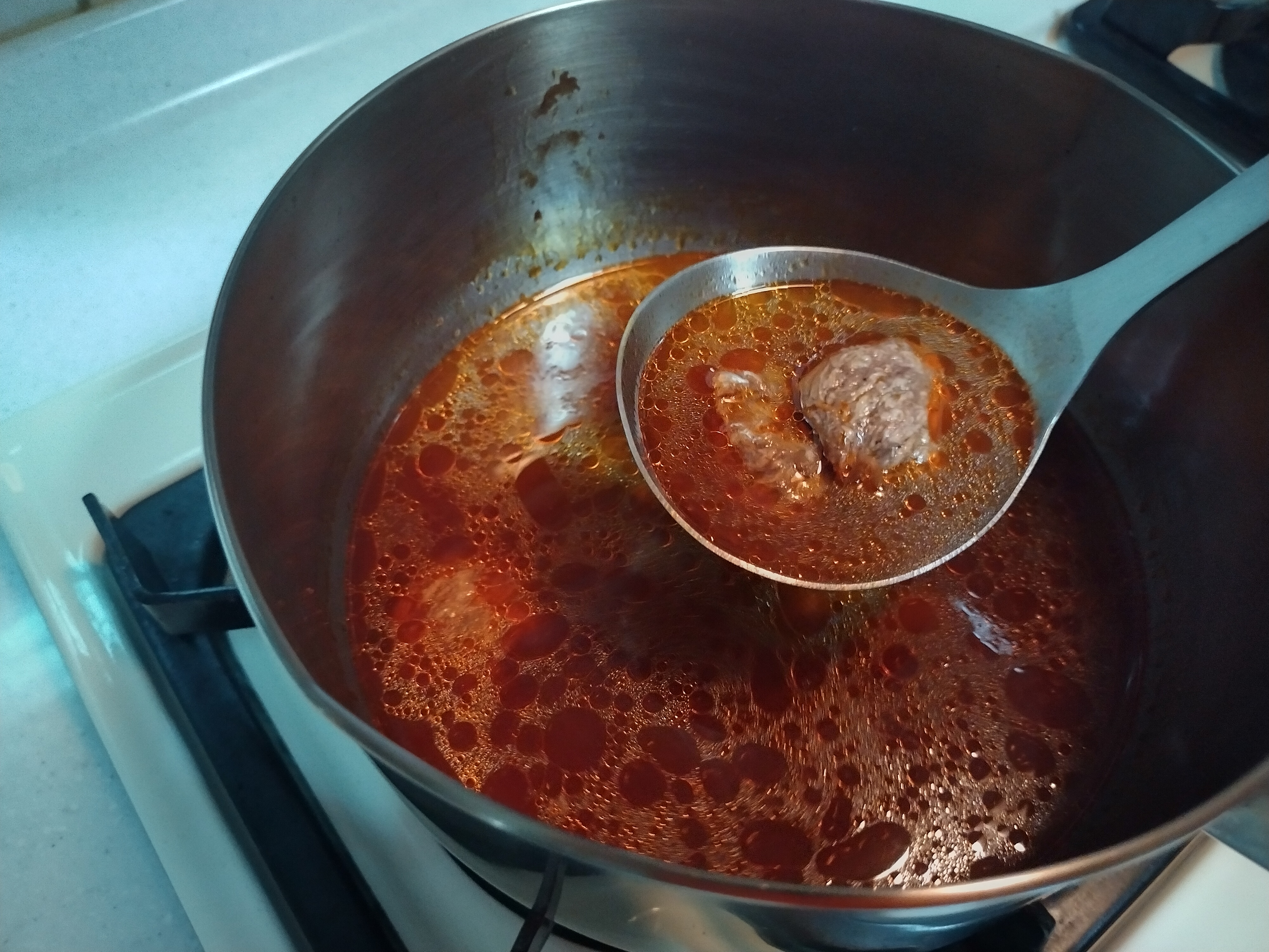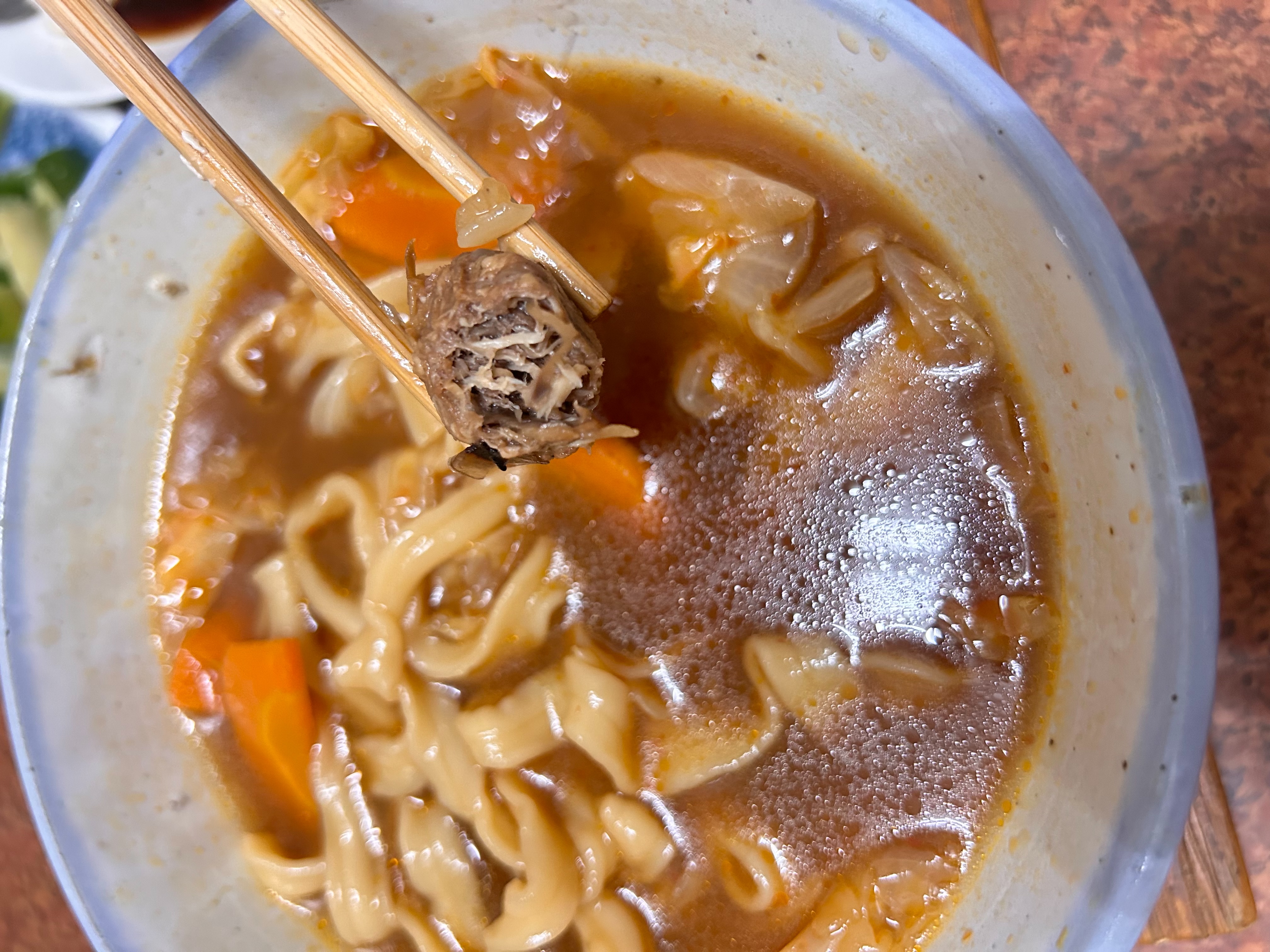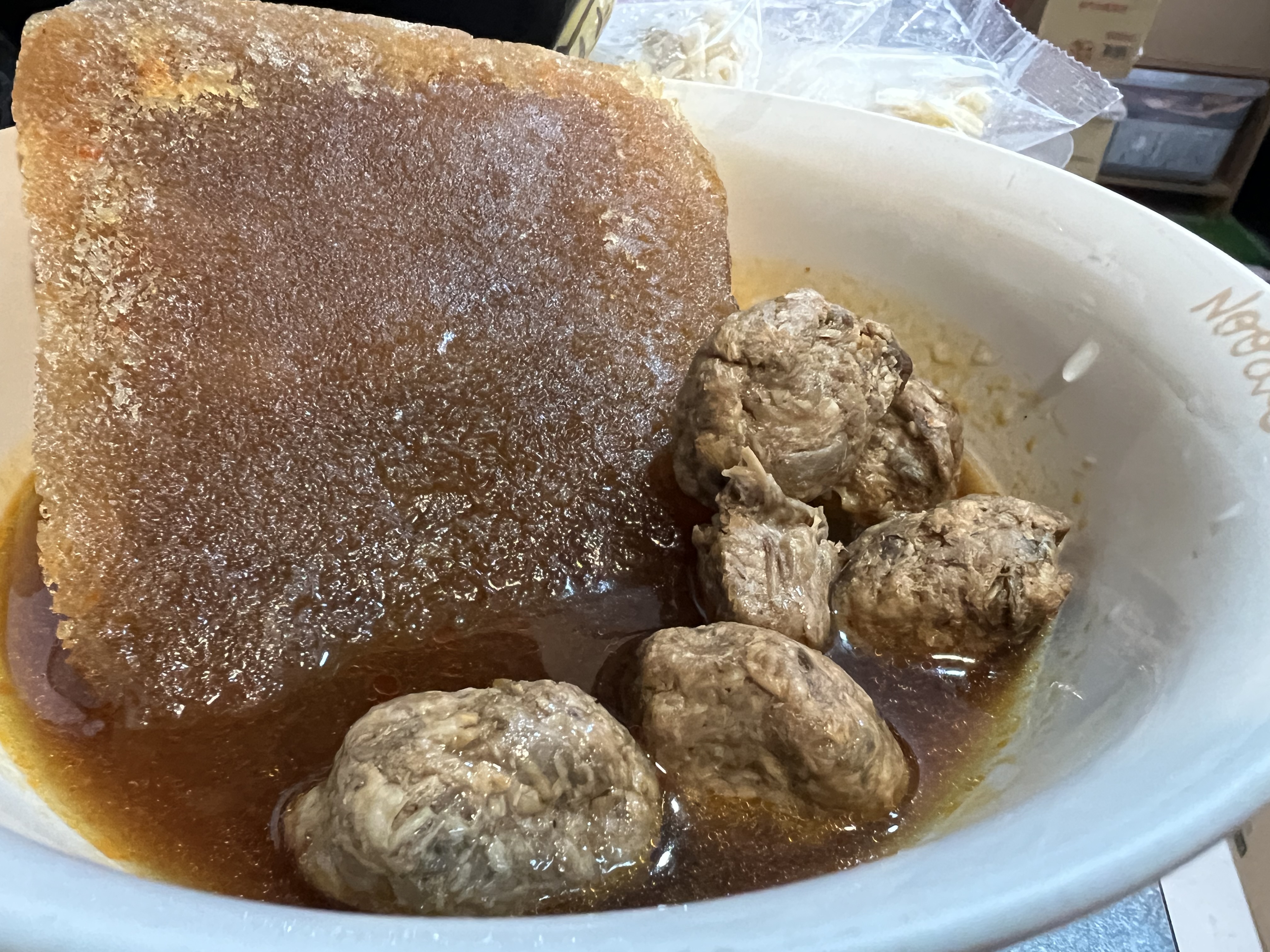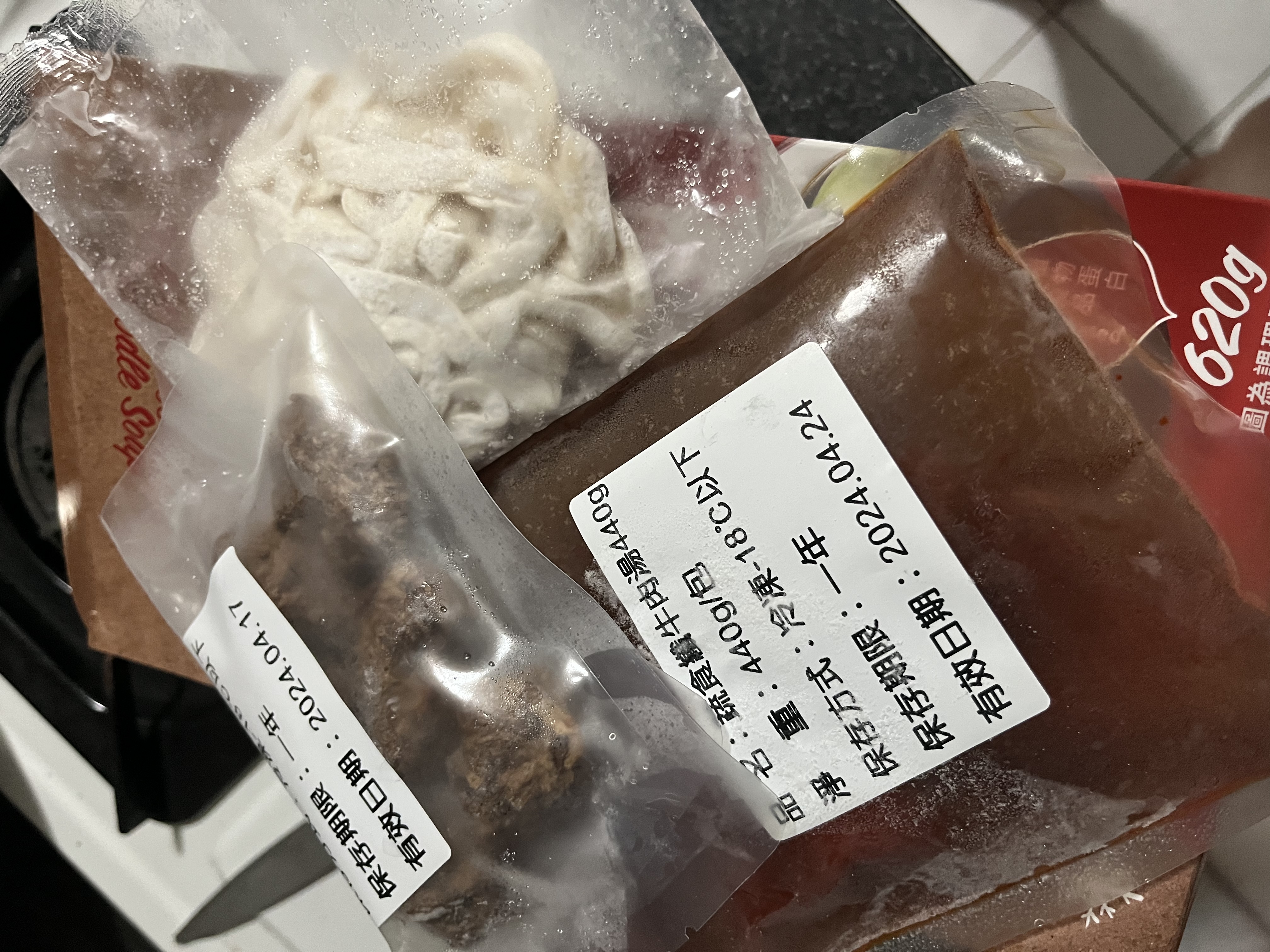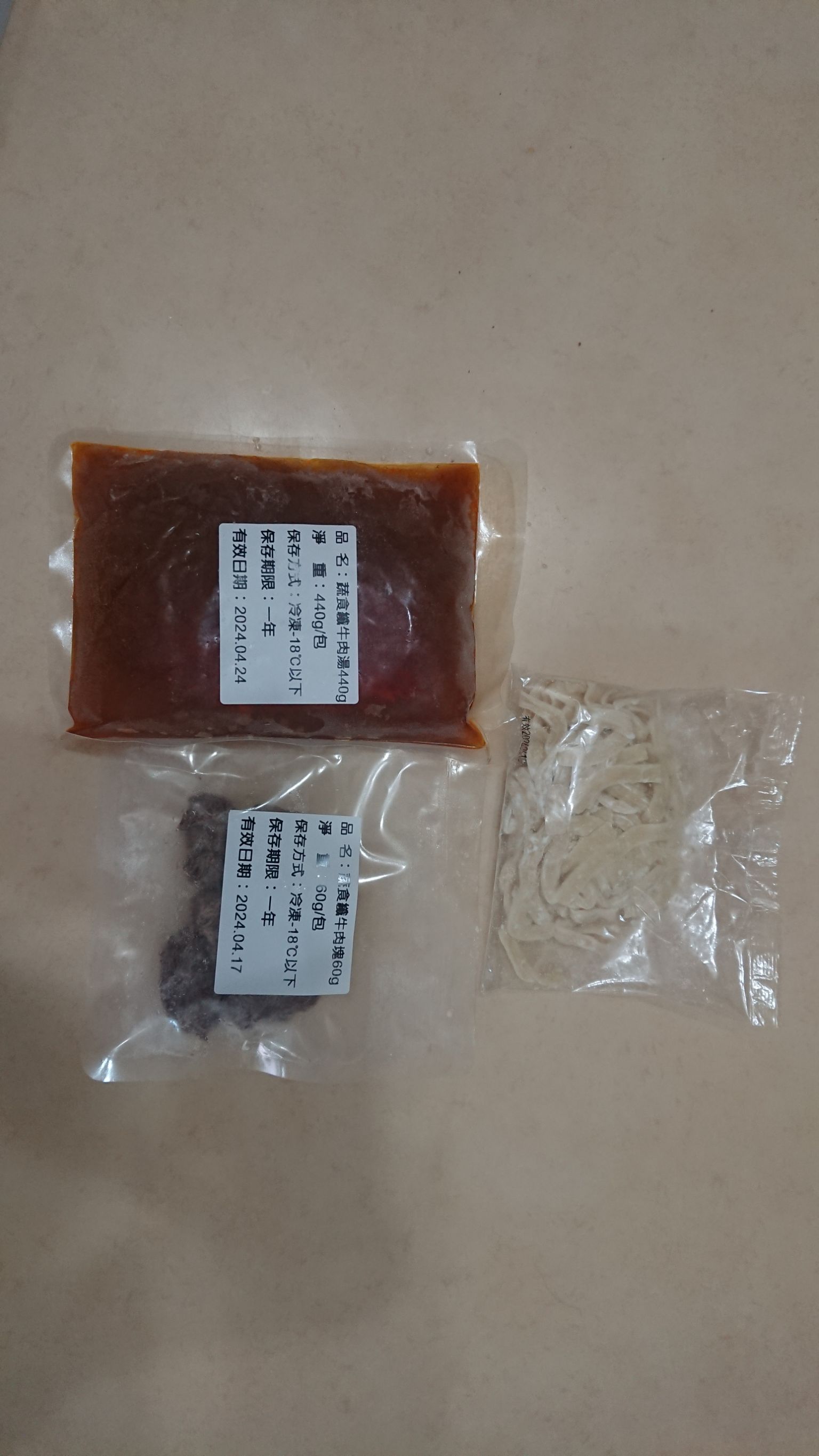 1)隔水加熱:將調理包(完全解凍/無須拆封)及牛肉塊包(完全解凍/無須拆封),置入冷水中,開火加熱至水滾後,轉小火加熱6-7分鐘。