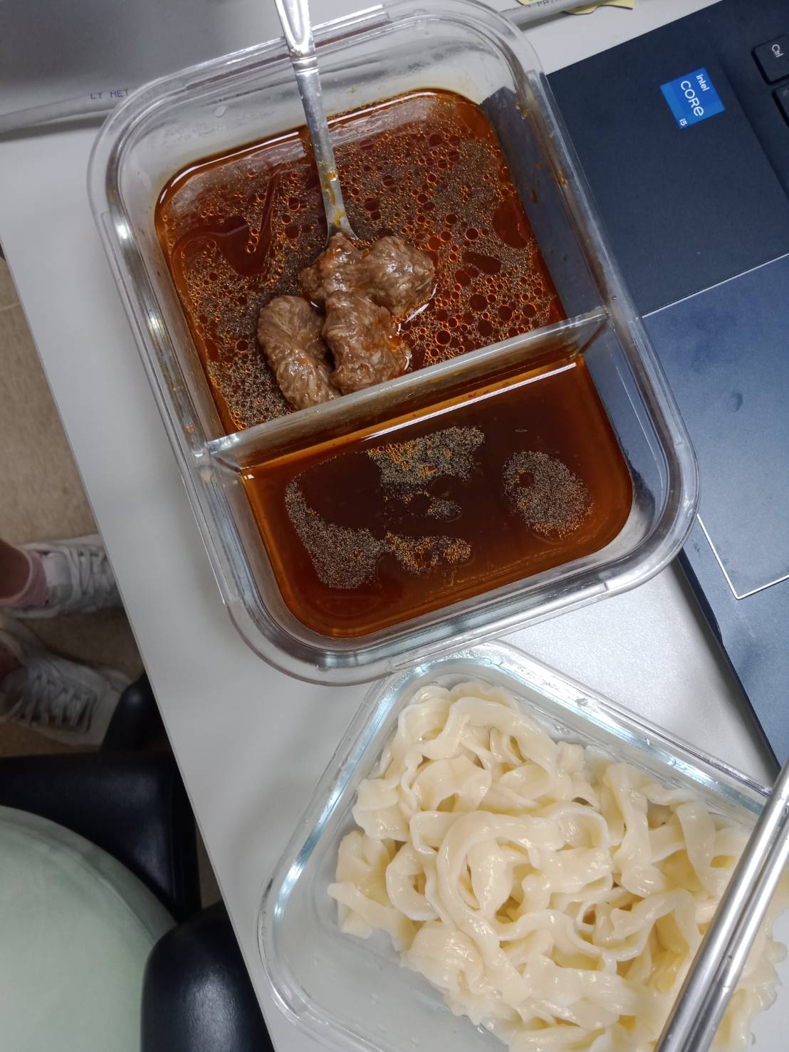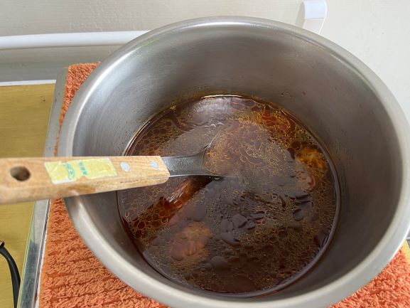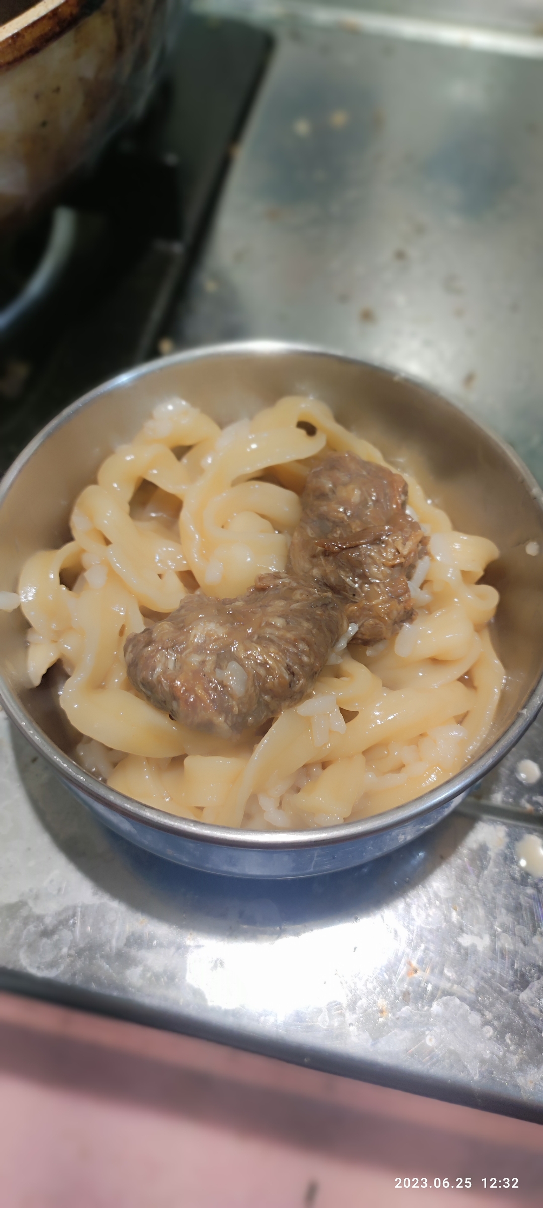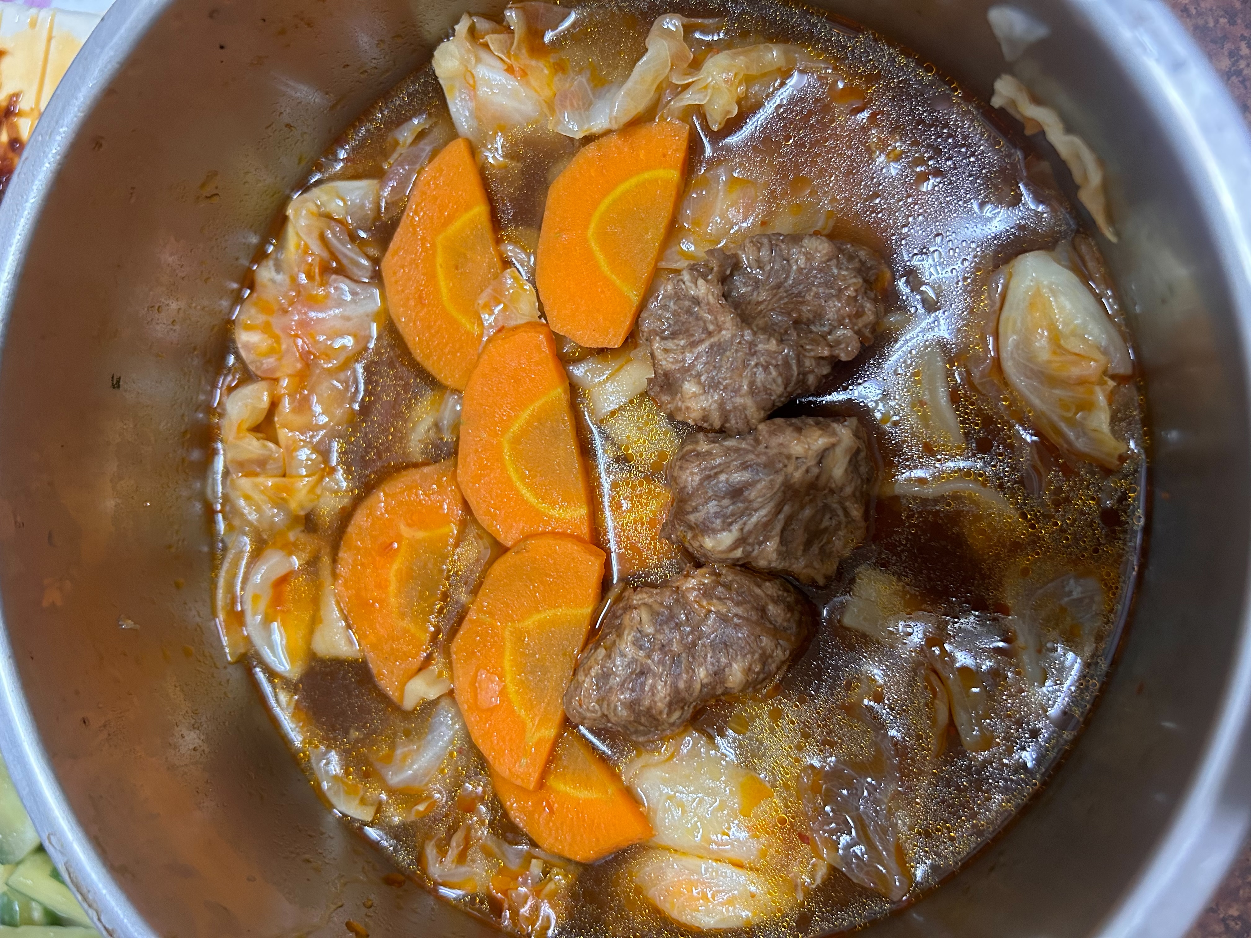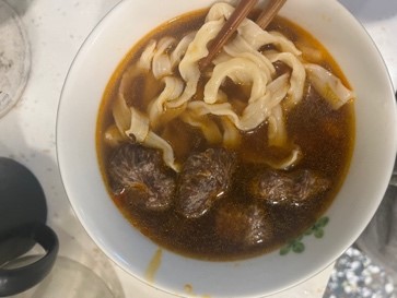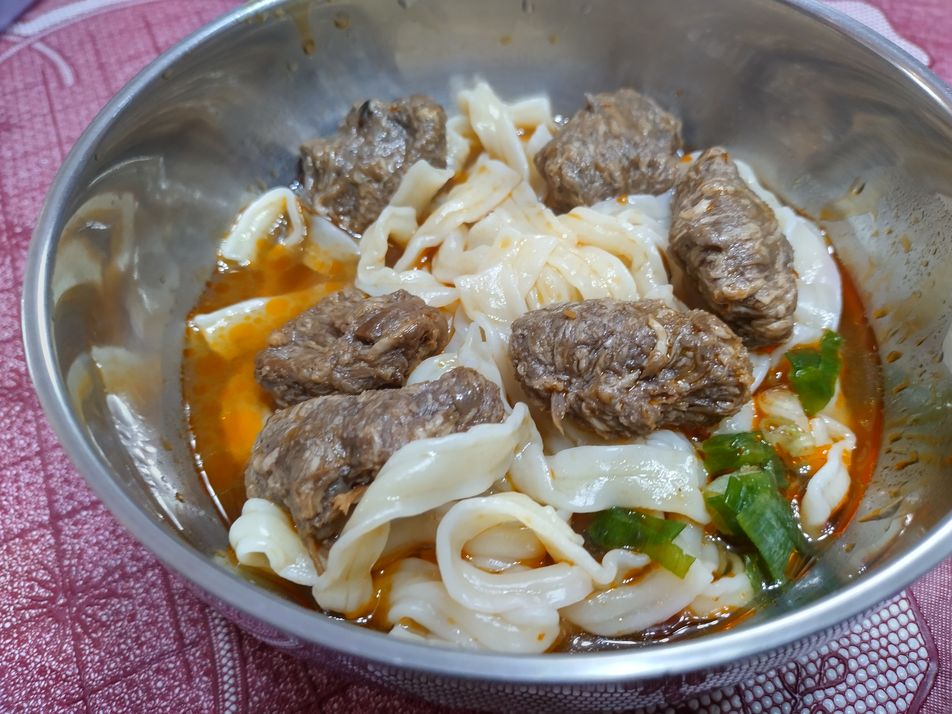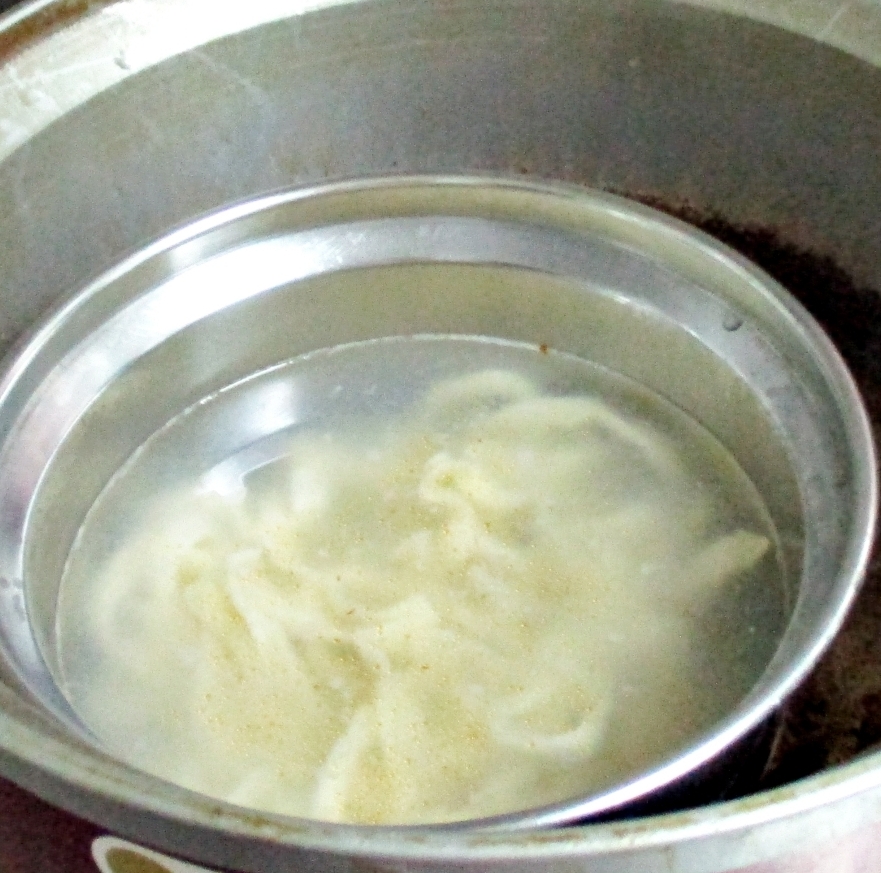 3)蒸煮加熱:將解凍後之調理包及牛肉塊包拆袋後,倒入容器蒸煮約 7-8 分鐘。