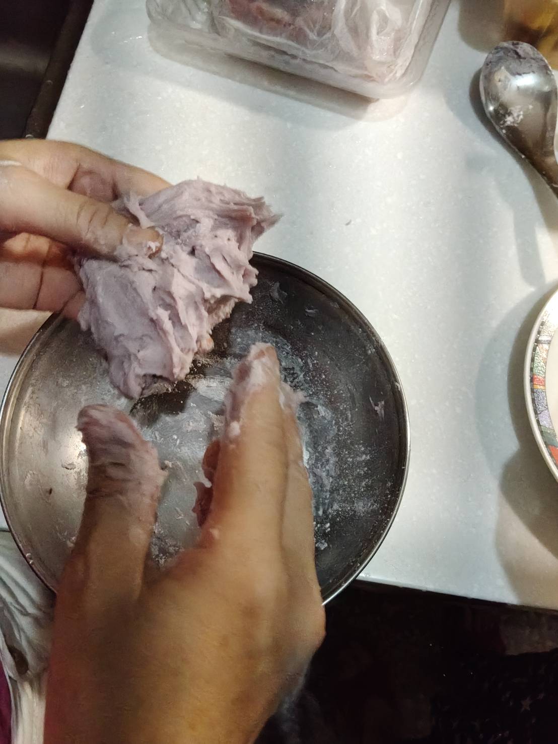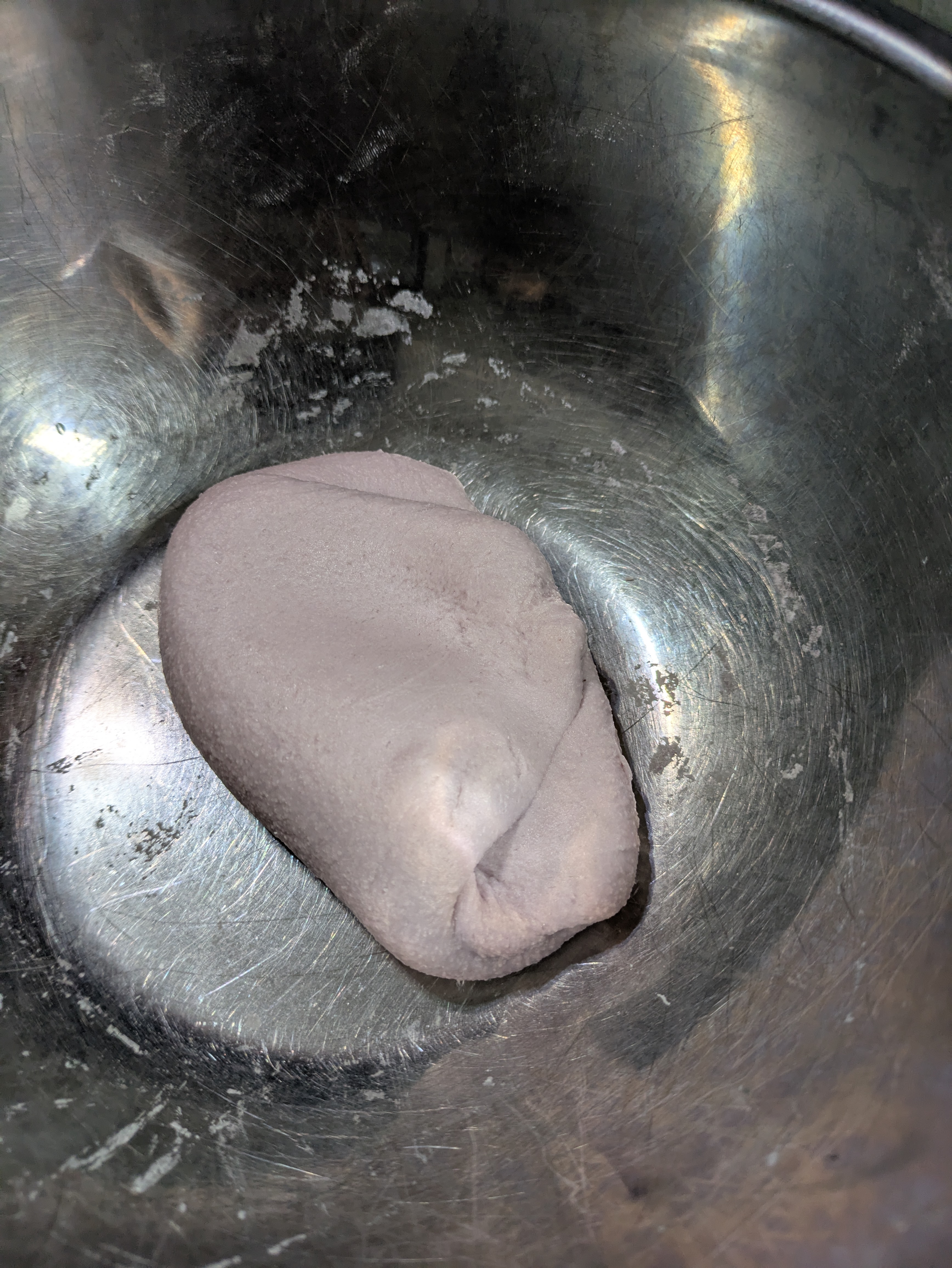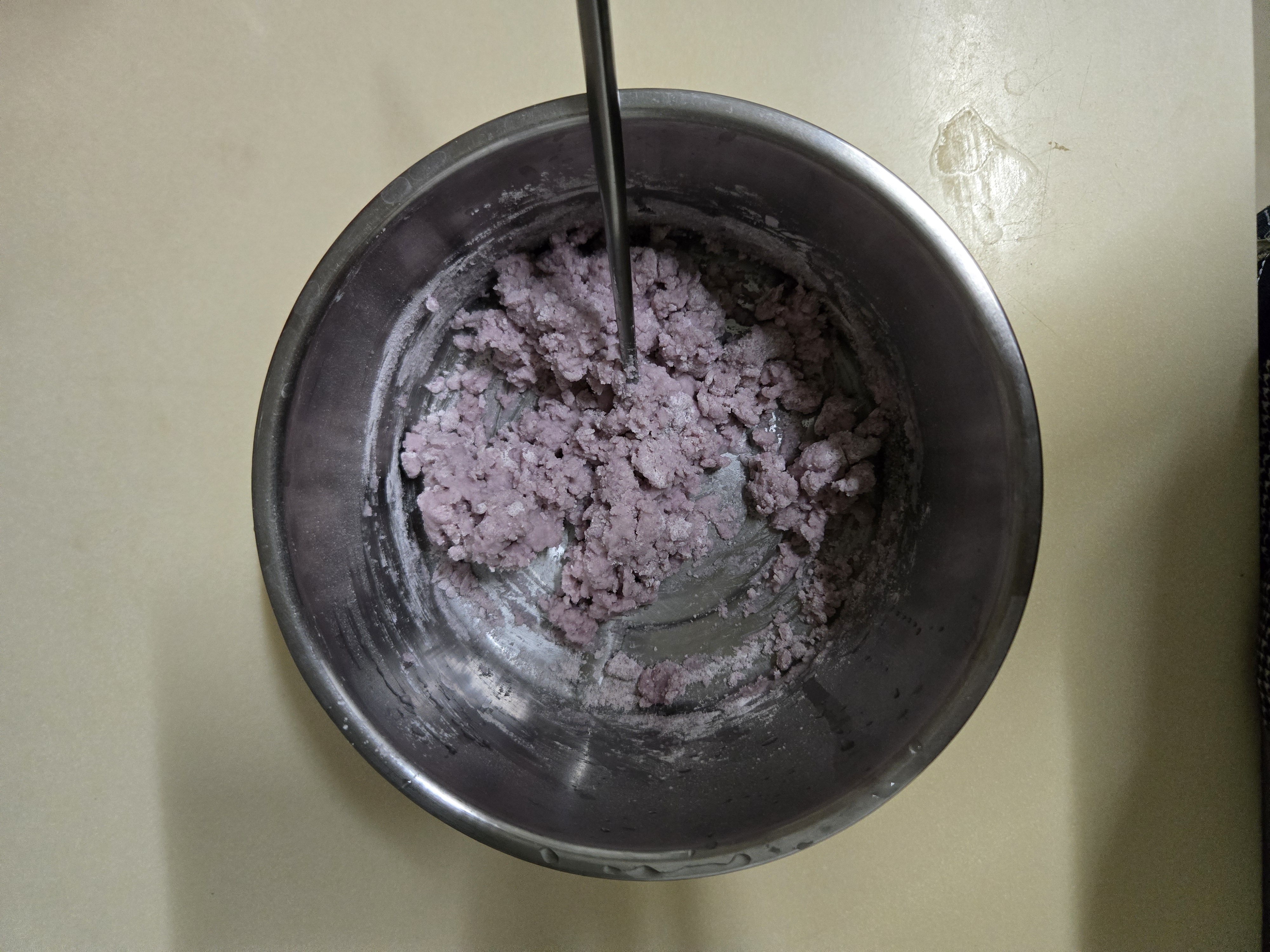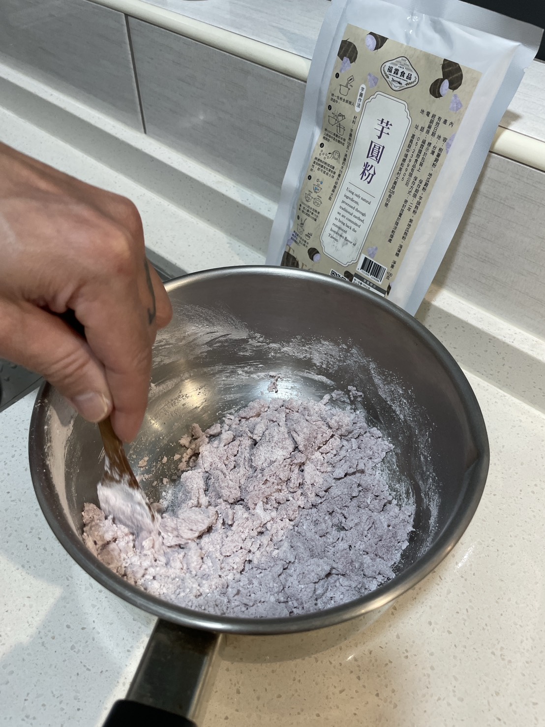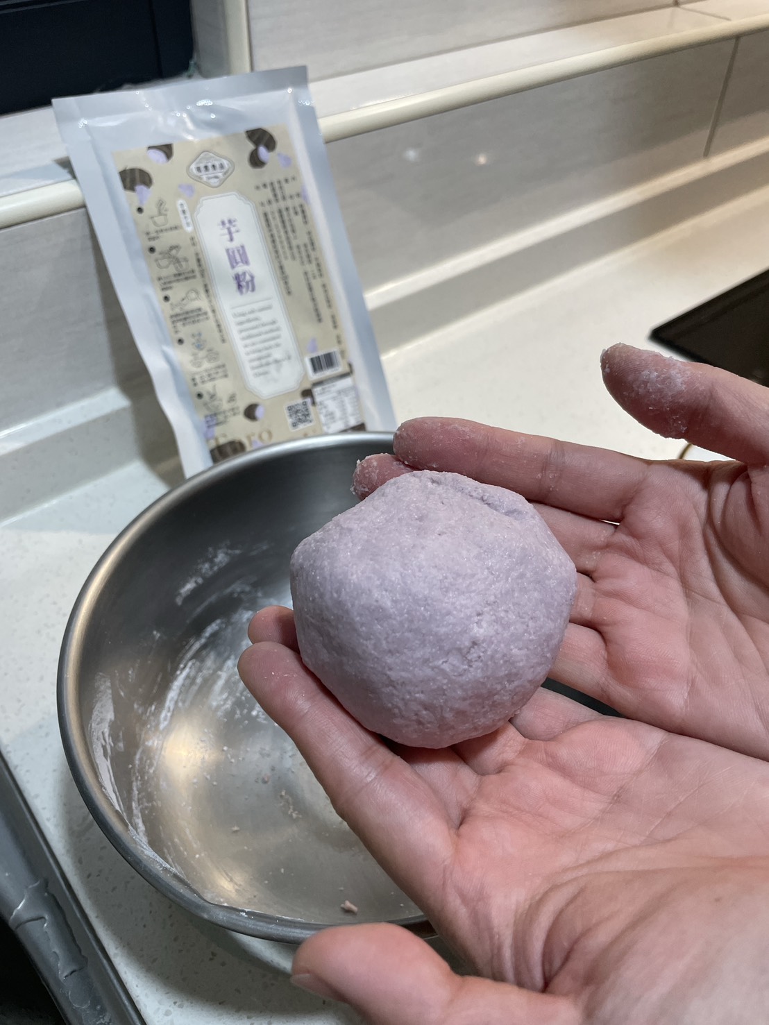 步驟三:將拌勻的芋圓粉團拿出碗開始努力揉!! 將他揉成均勻的粉團