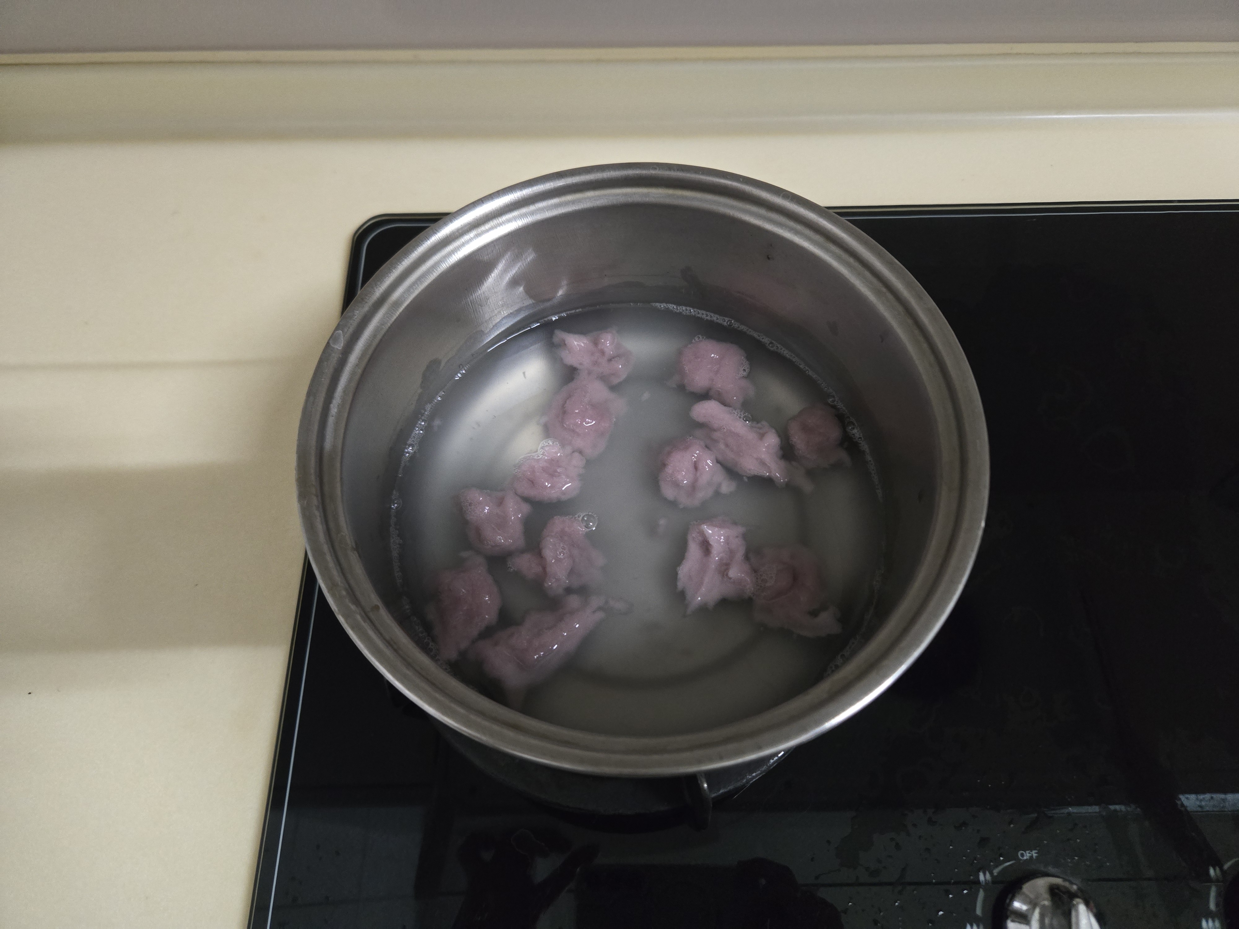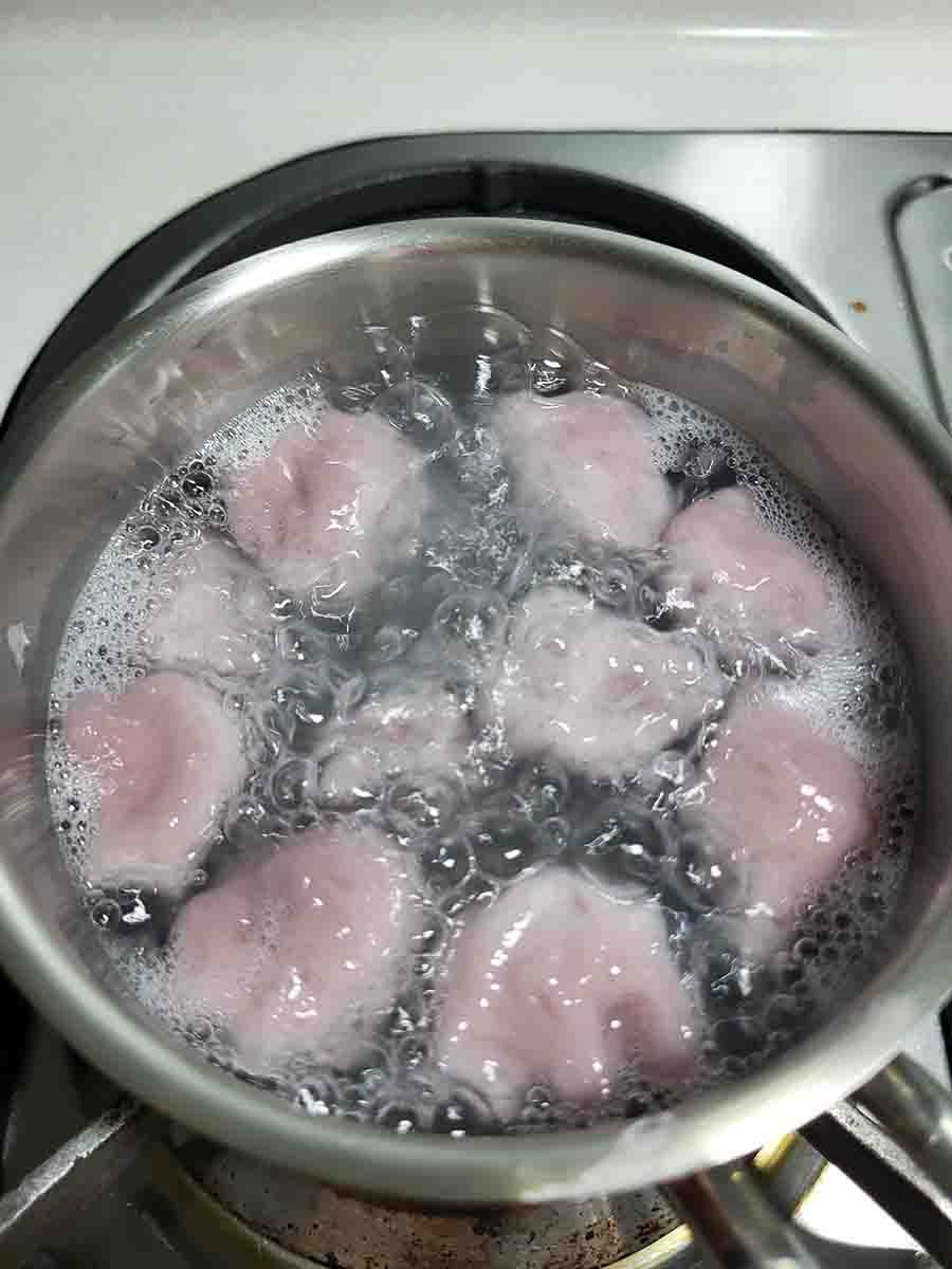 步驟五:將切好小塊的芋圓放入沸騰的水中煮20分鐘!