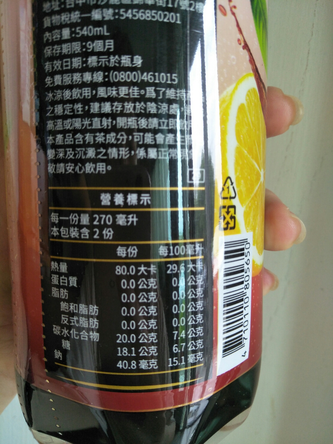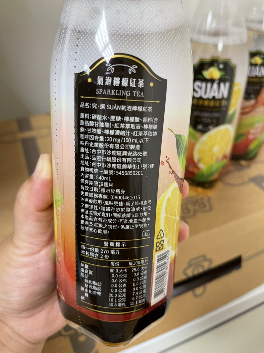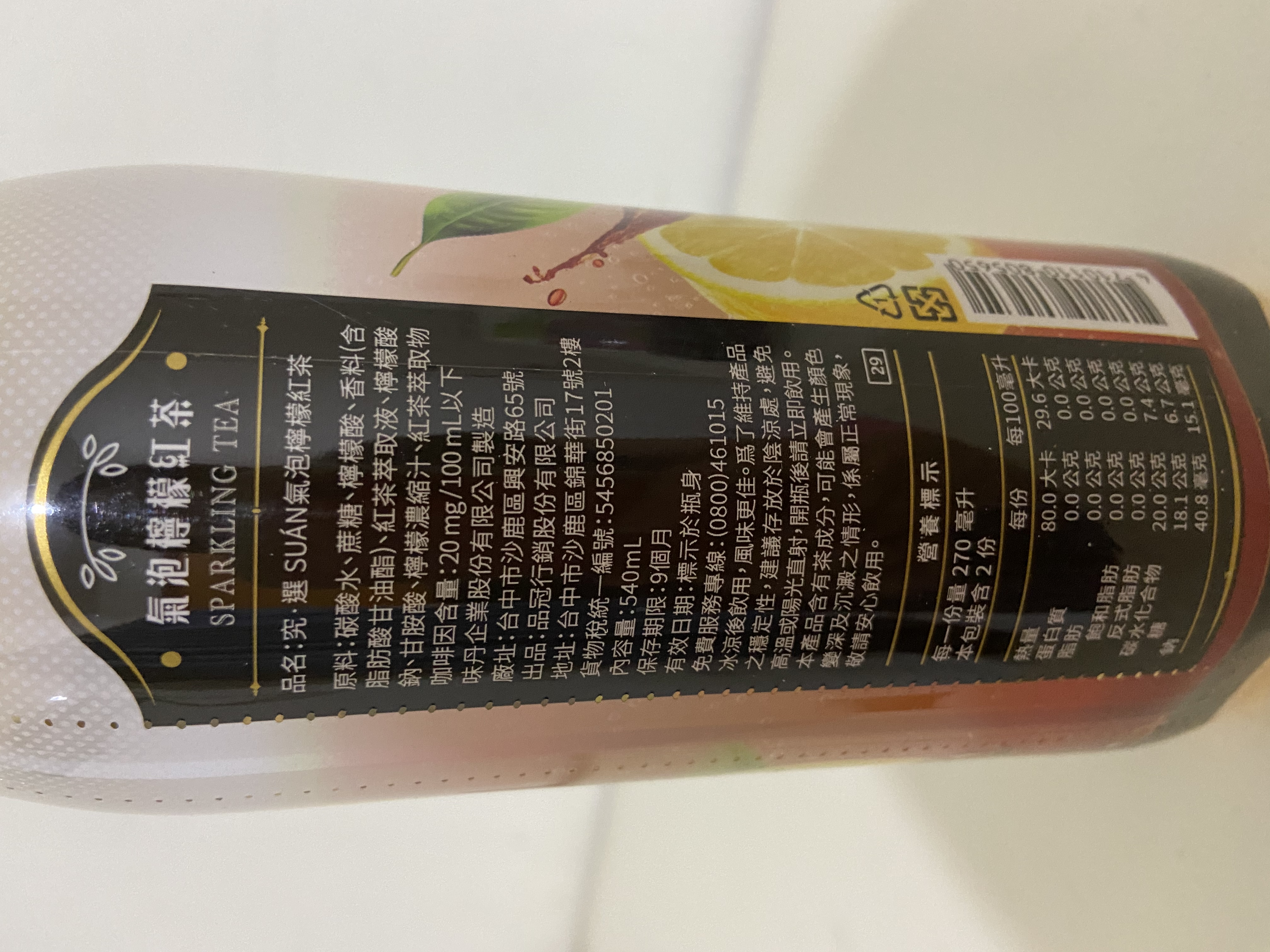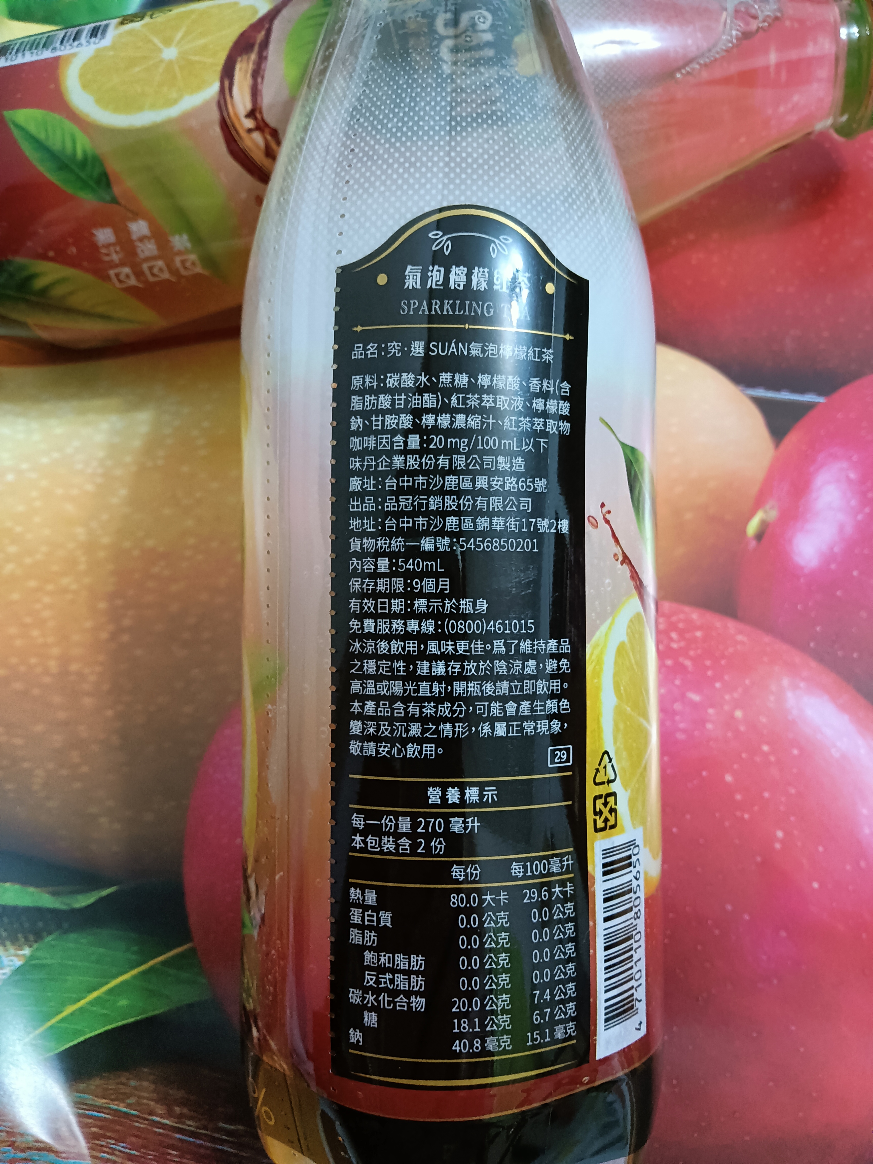 碳酸水、蔗糖、檸檬酸、香料、紅茶萃取液、檸檬酸鈉、甘胺酸、桃濃縮、紅茶萃取物