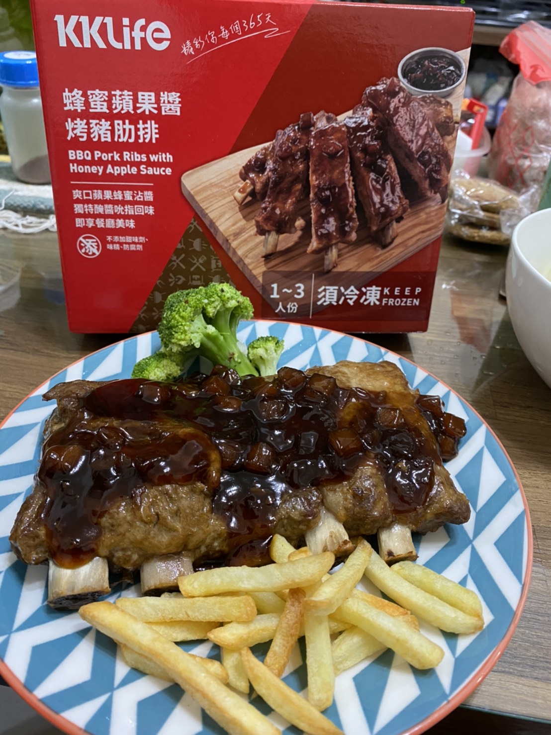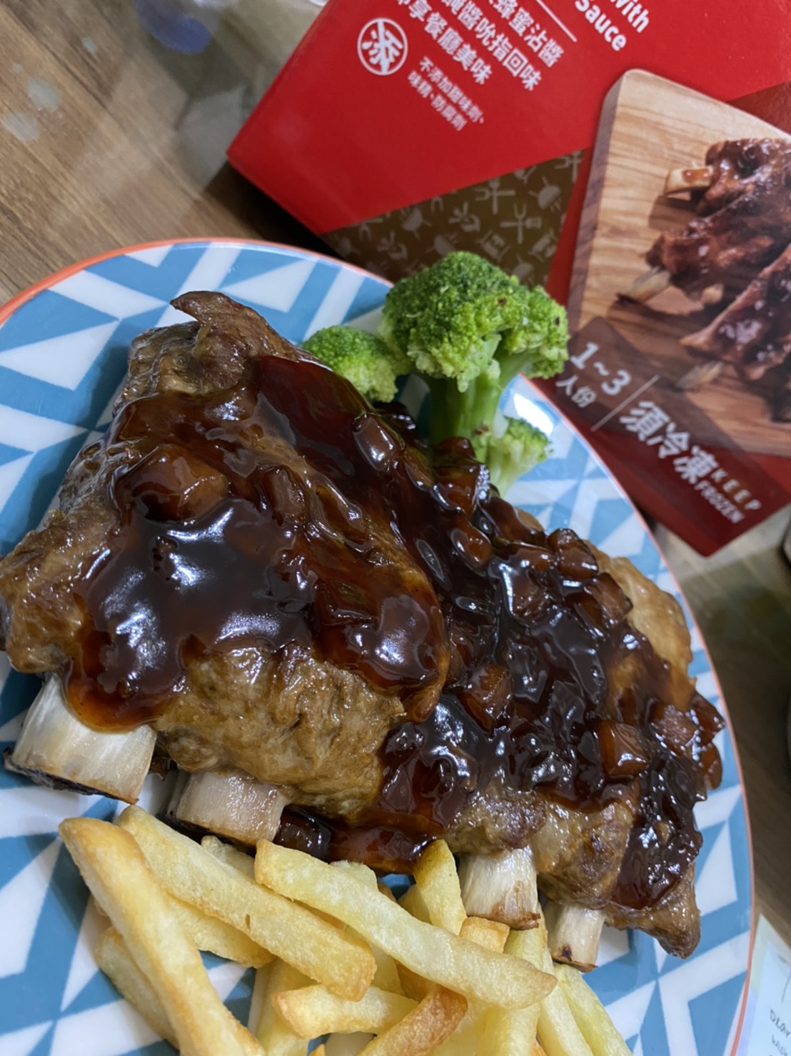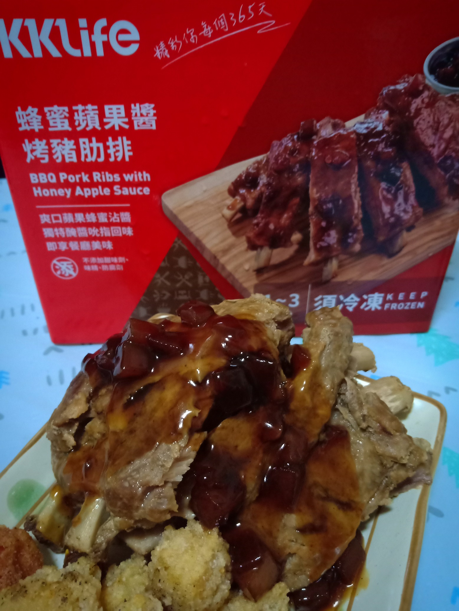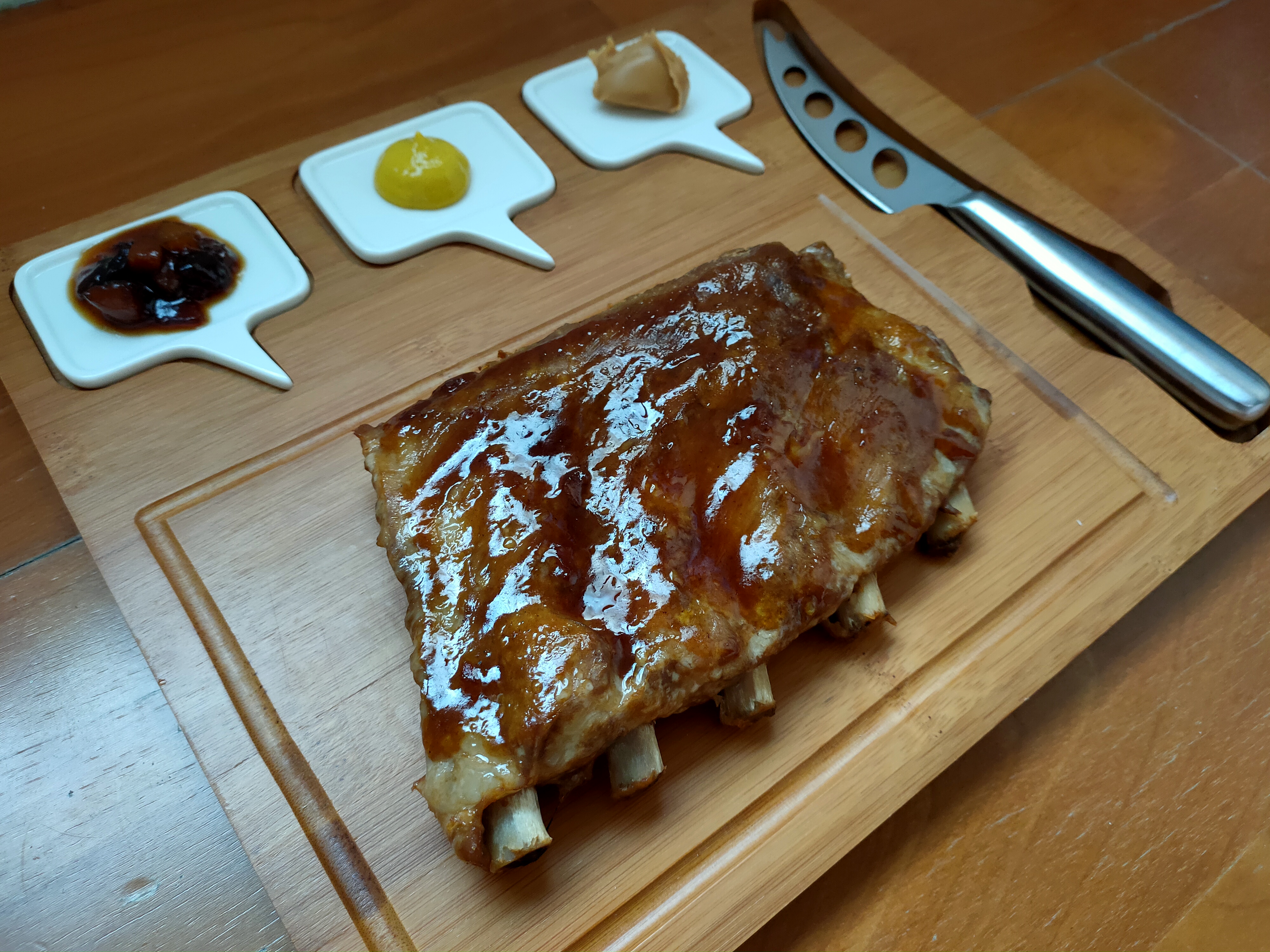 肋排解凍後,經過烤箱簡單復熱後的豬肋排,淋上蜂蜜蘋果醬,創造出豬肋排多層次甜而不膩、軟嫩入味的獨家風味,讓你吮指回味。