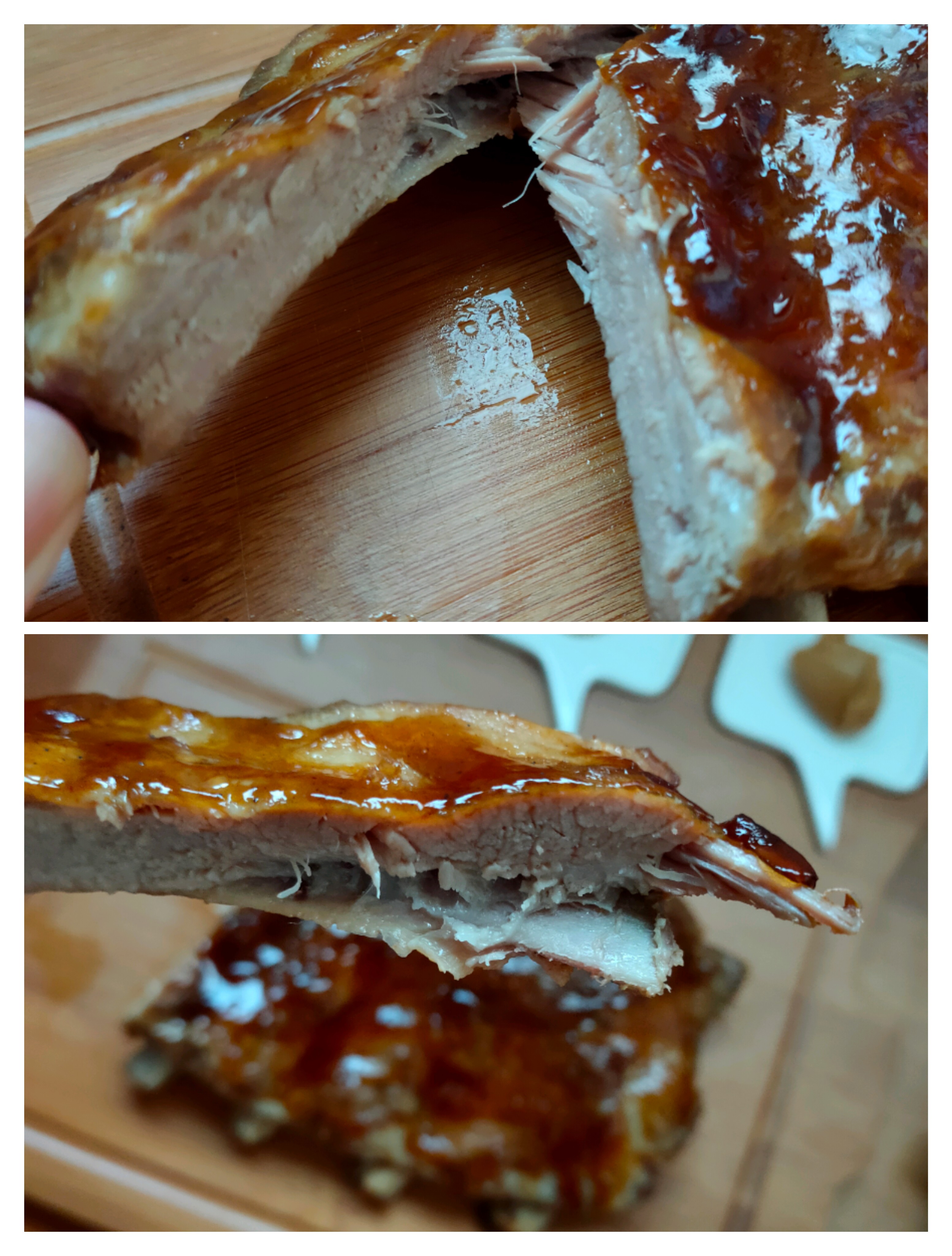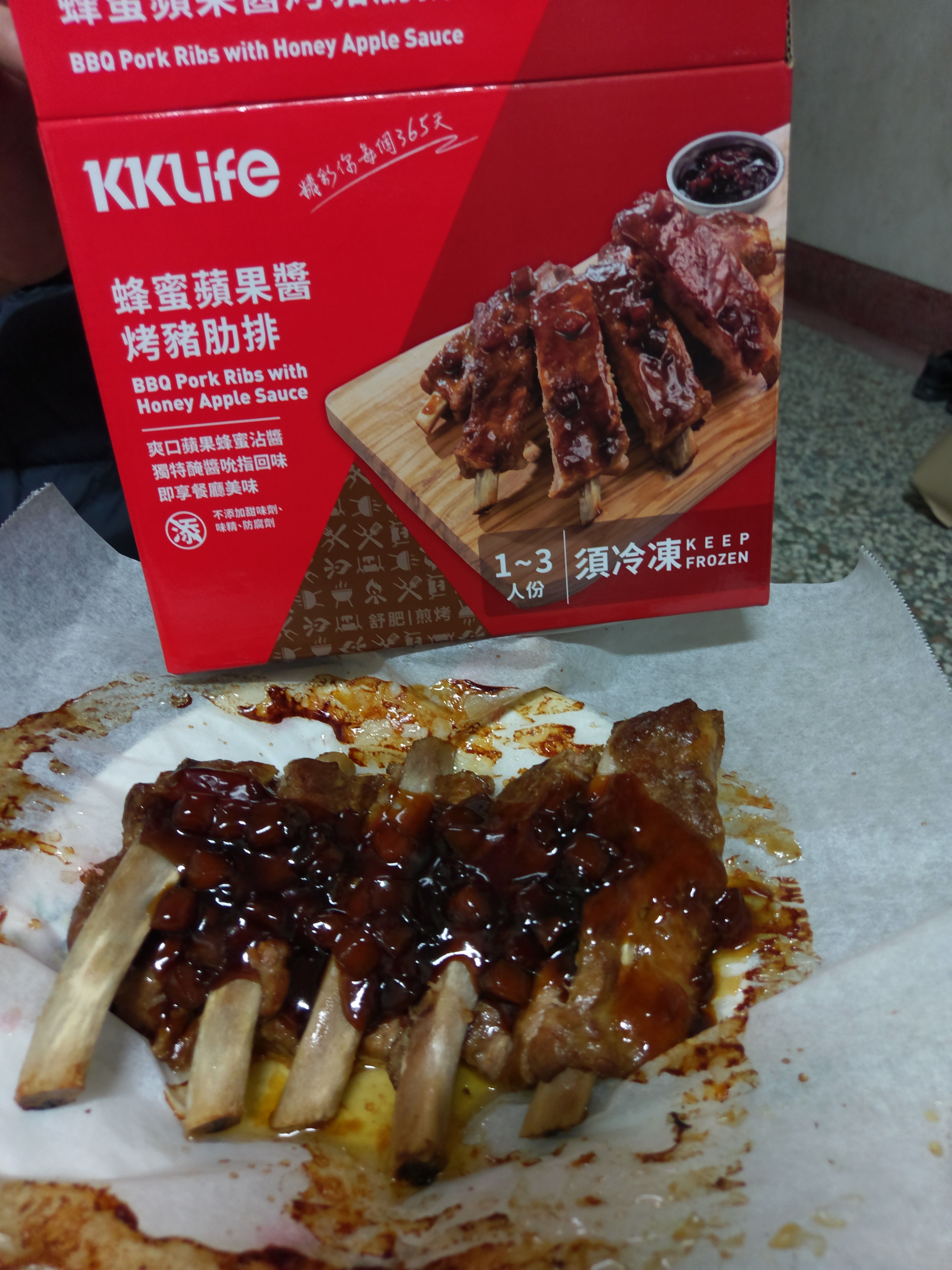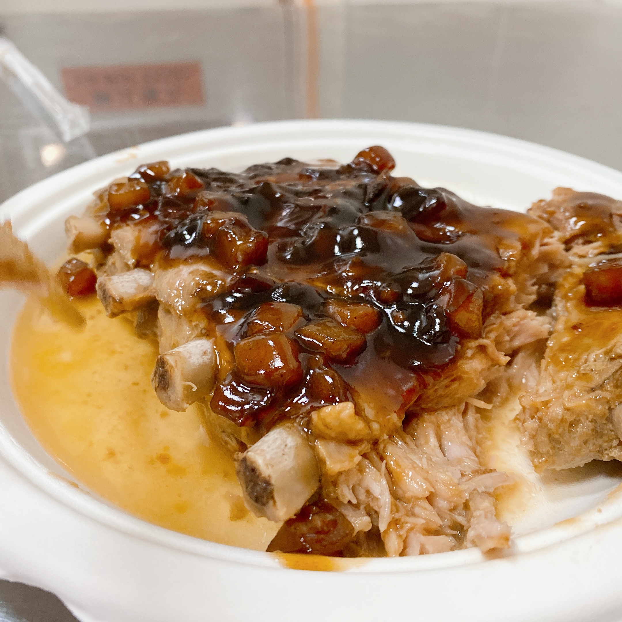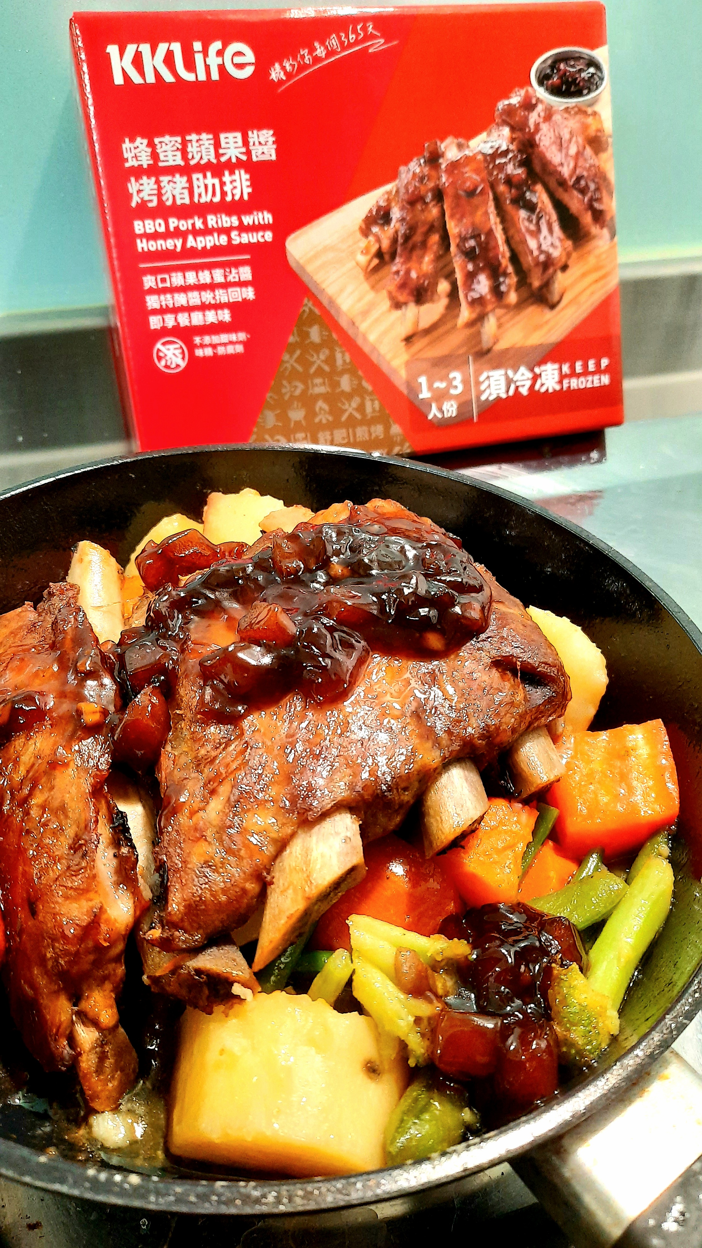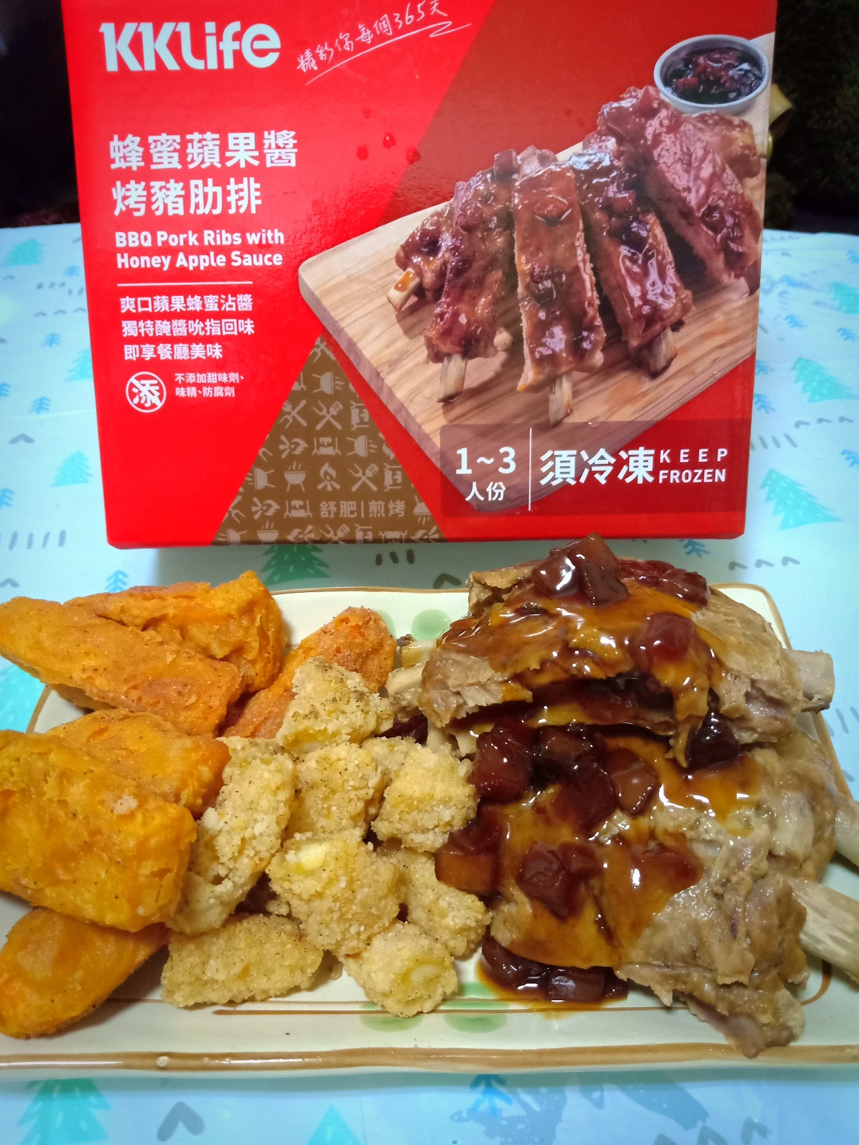 肋排解凍後,經過烤箱簡單復熱後的豬肋排,淋上蜂蜜蘋果醬,創造出豬肋排多層次甜而不膩、軟嫩入味的獨家風味,讓你吮指回味。