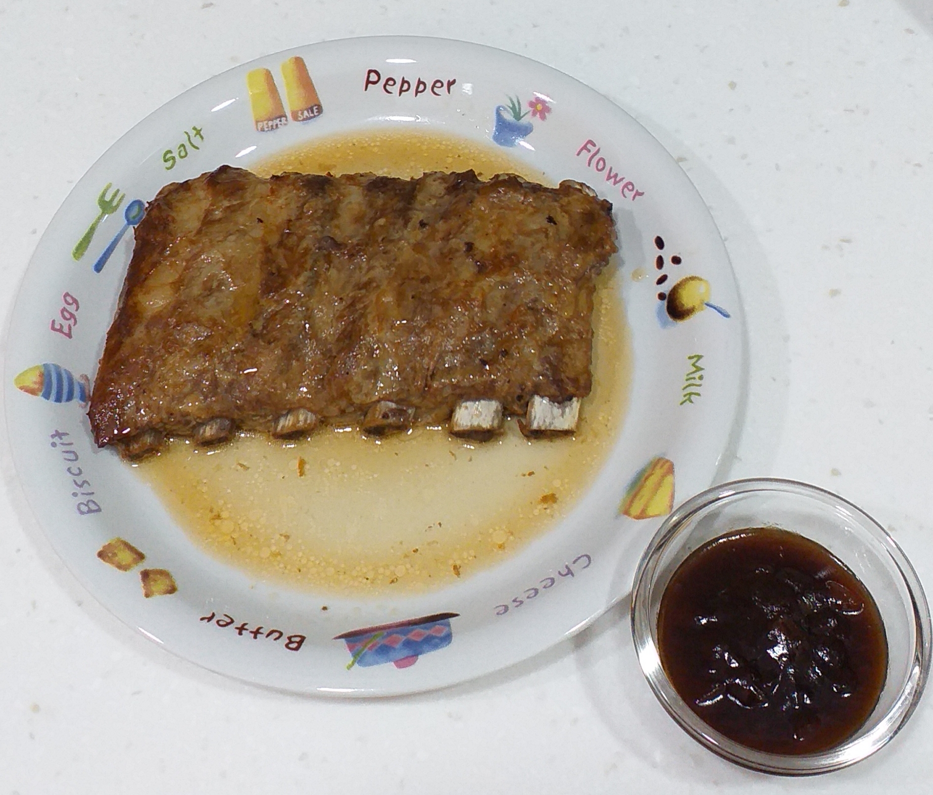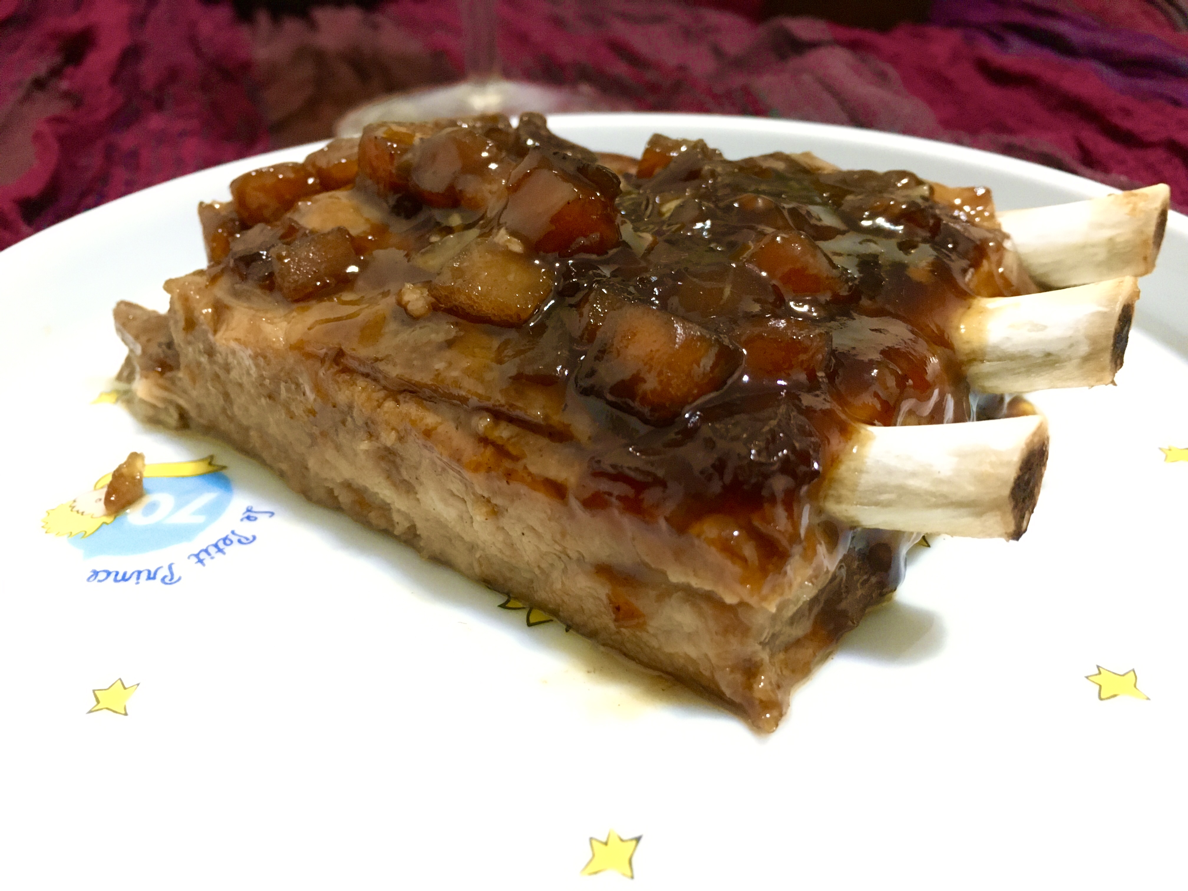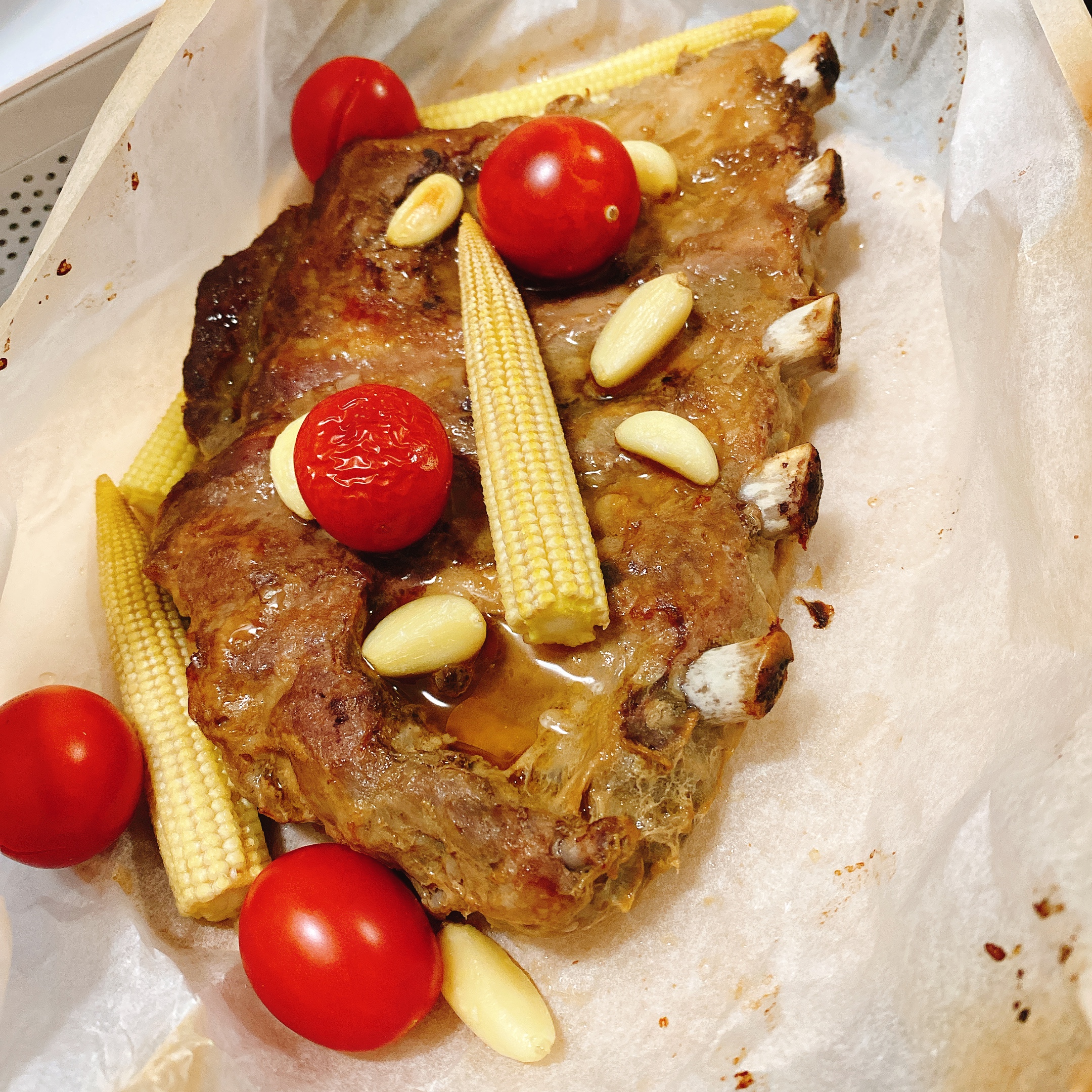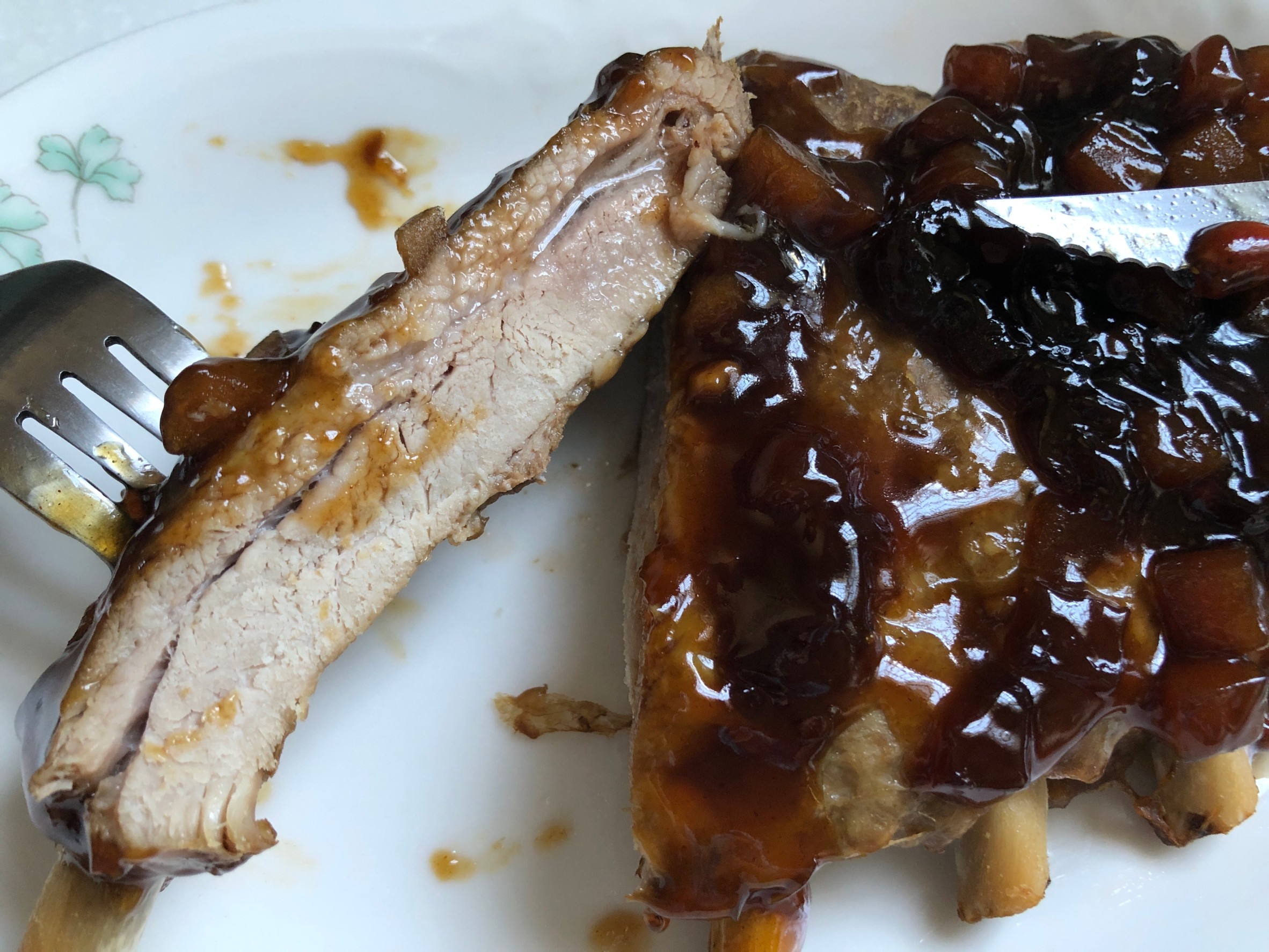 肋排解凍後,經過烤箱簡單復熱後的豬肋排,淋上蜂蜜蘋果醬,創造出豬肋排多層次甜而不膩、軟嫩入味的獨家風味,讓你吮指回味。
