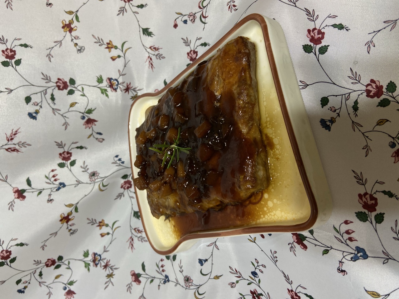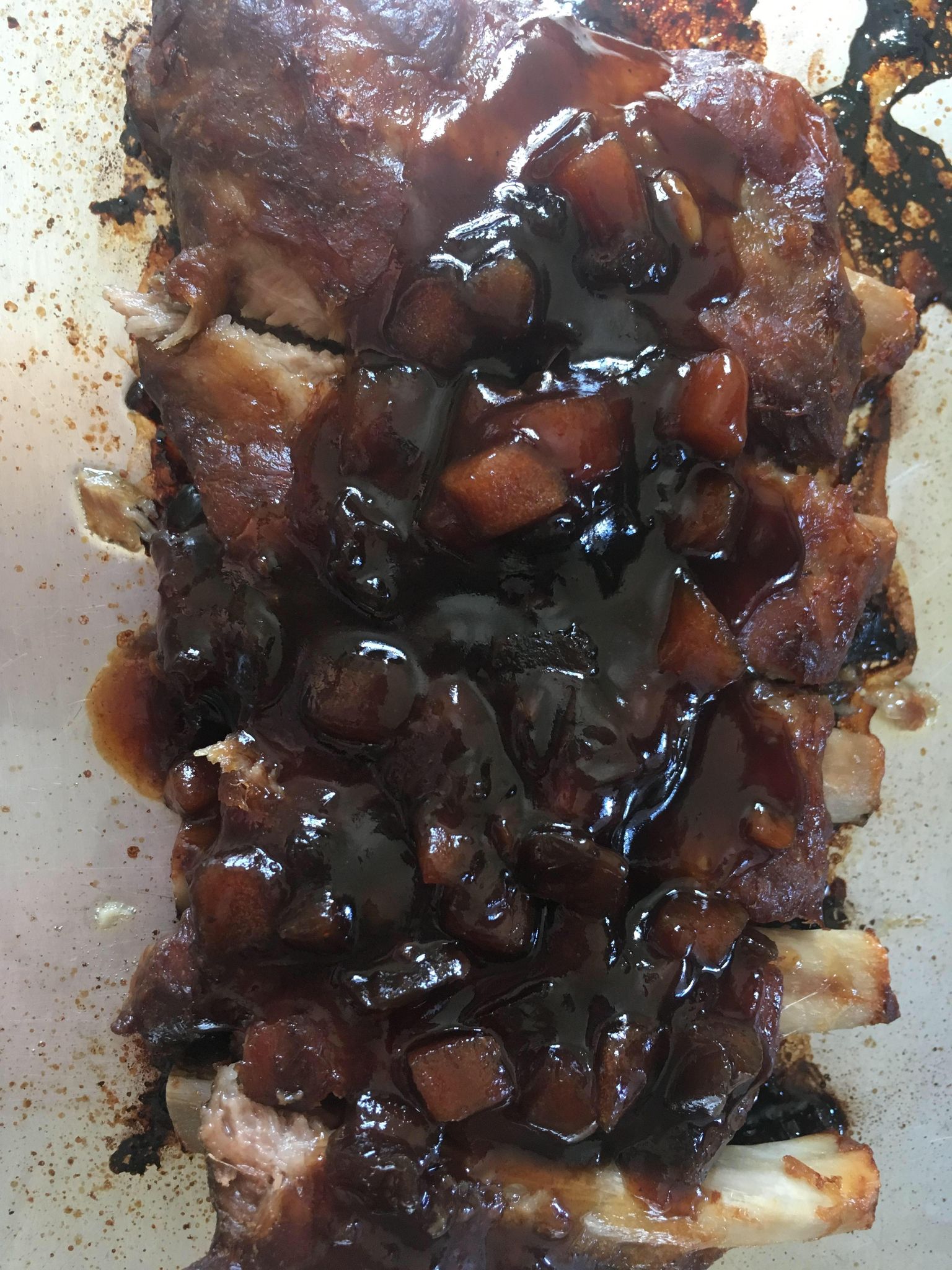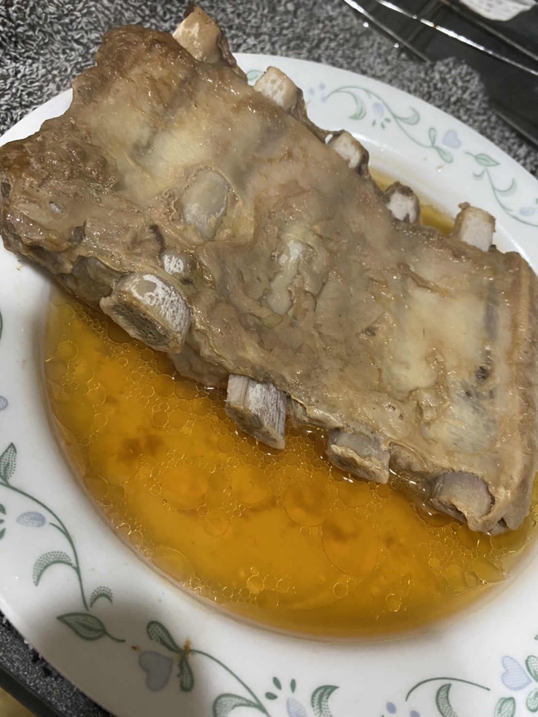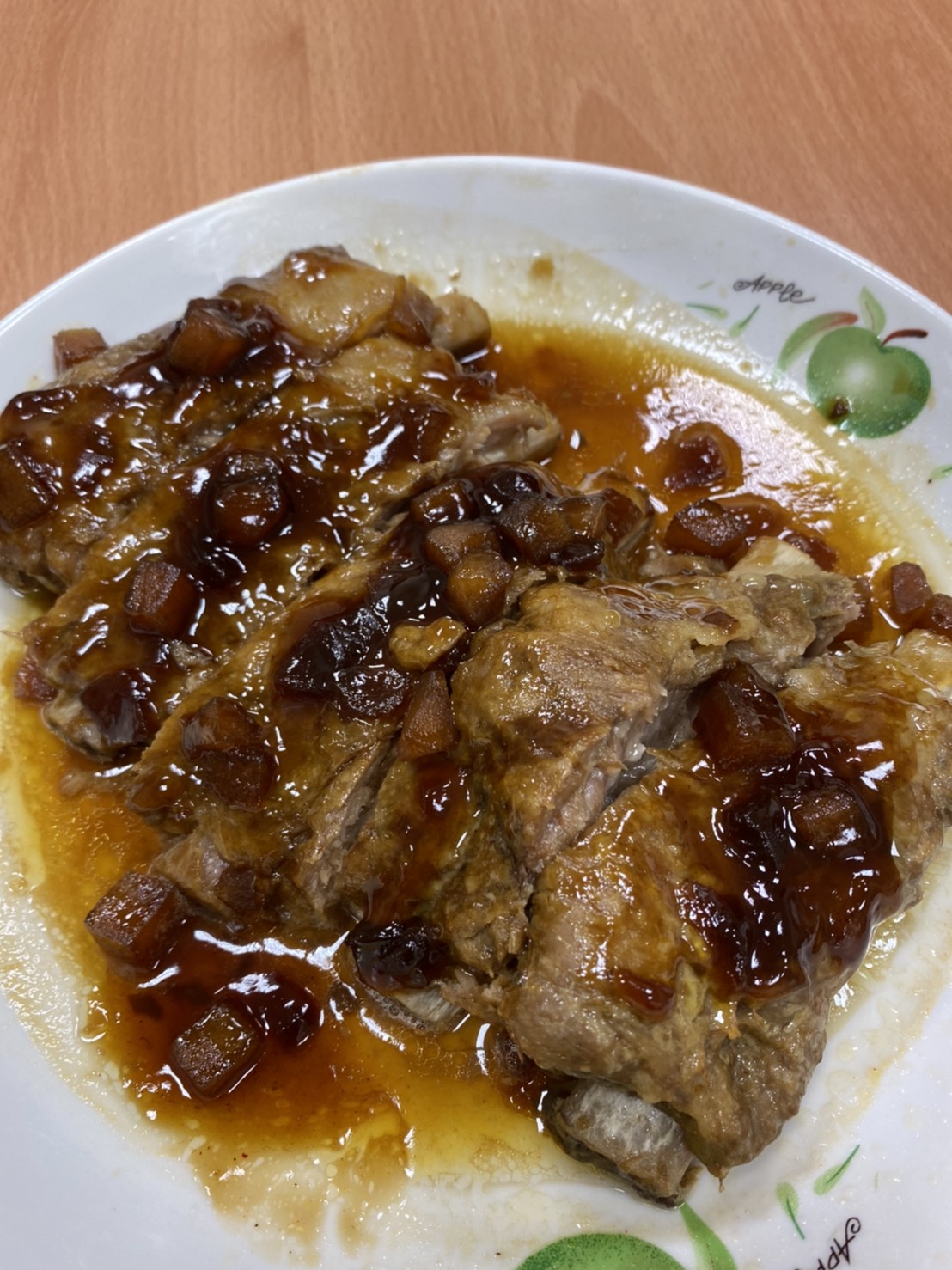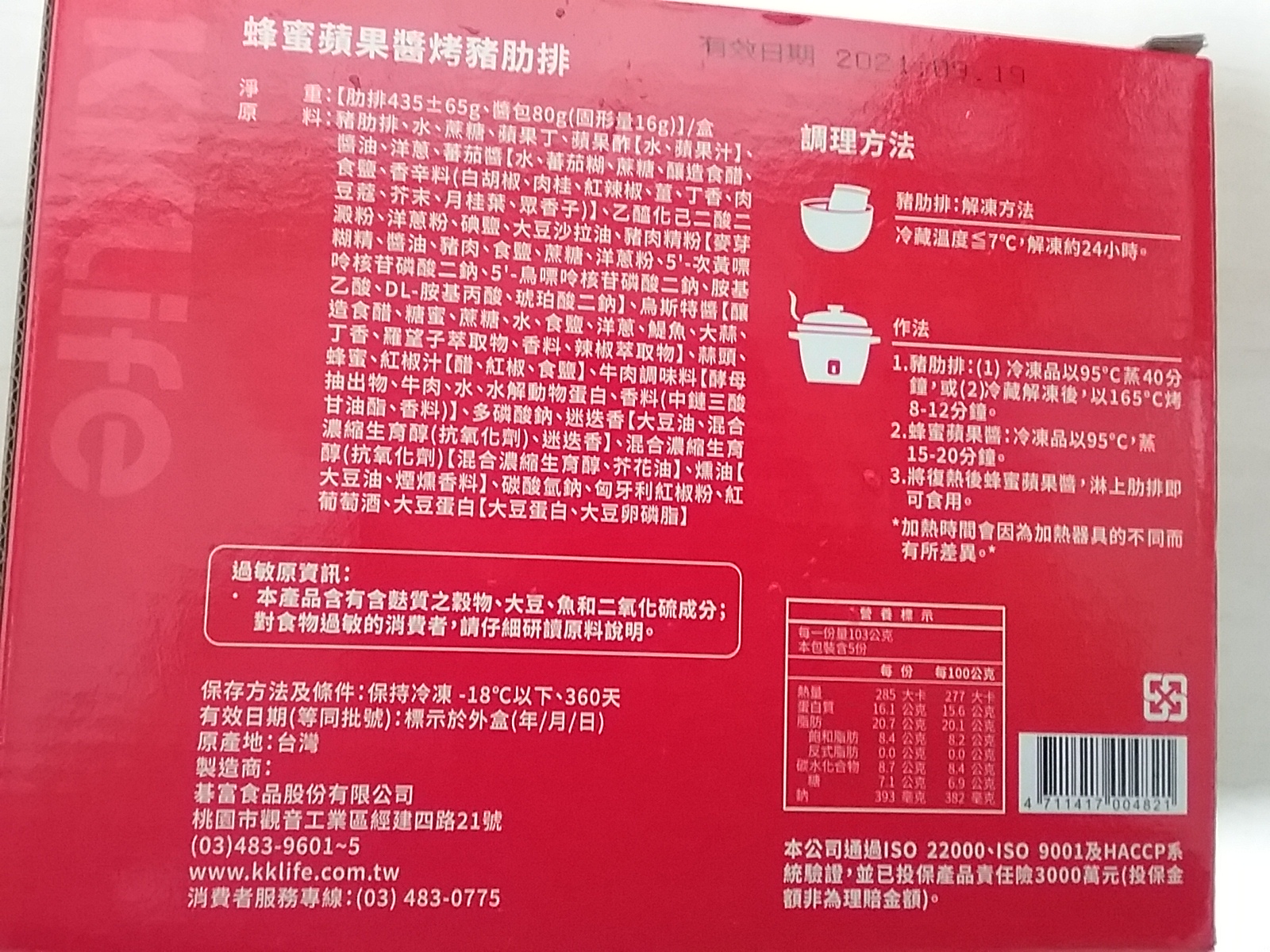 肋排解凍後,經過烤箱簡單復熱後的豬肋排,淋上蜂蜜蘋果醬,創造出豬肋排多層次甜而不膩、軟嫩入味的獨家風味,讓你吮指回味。
