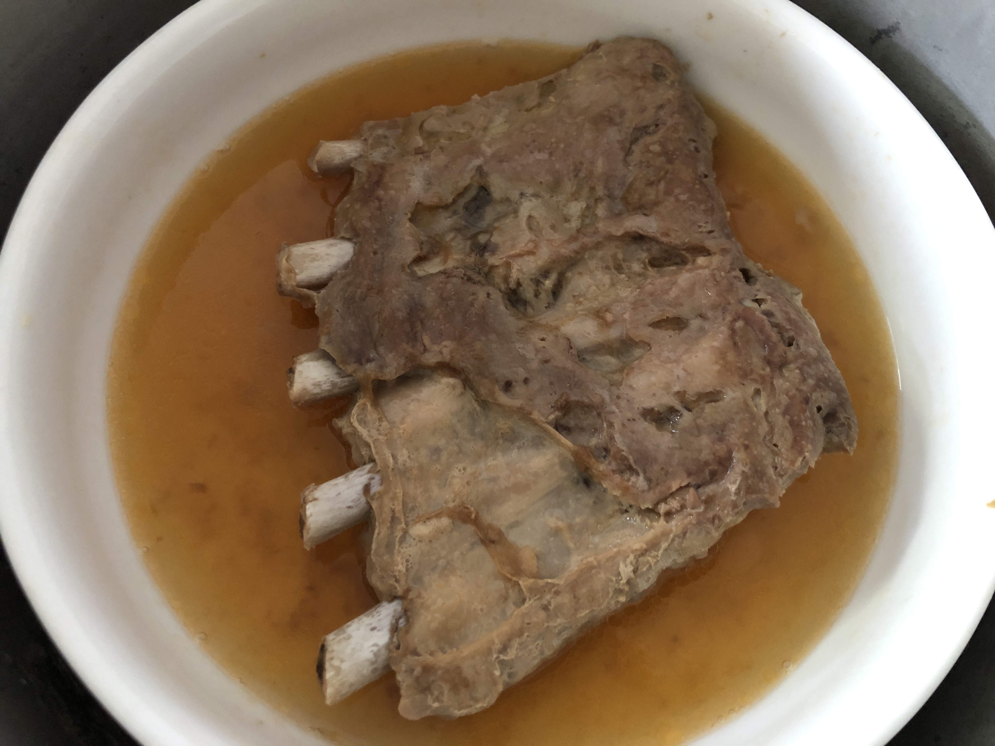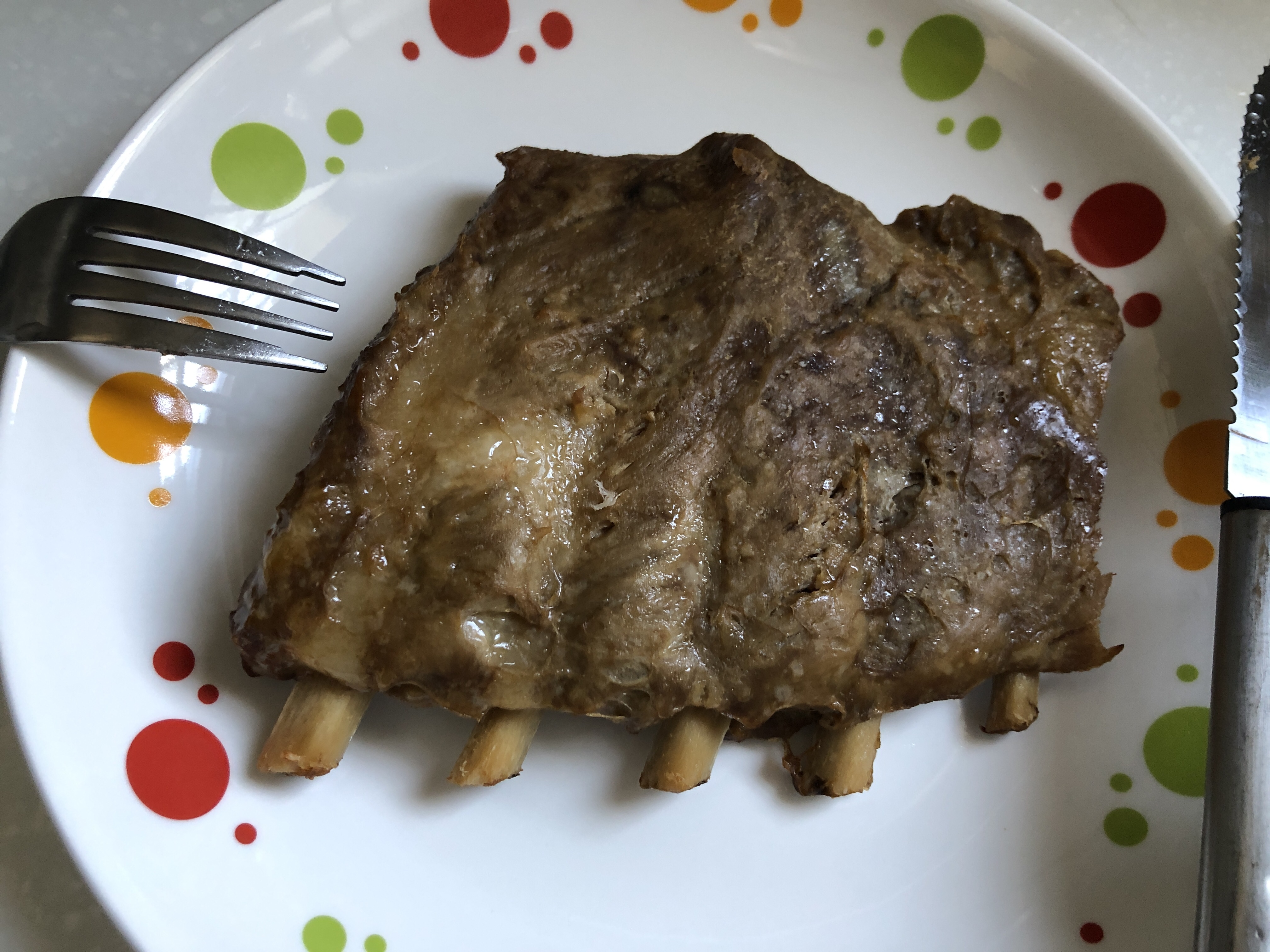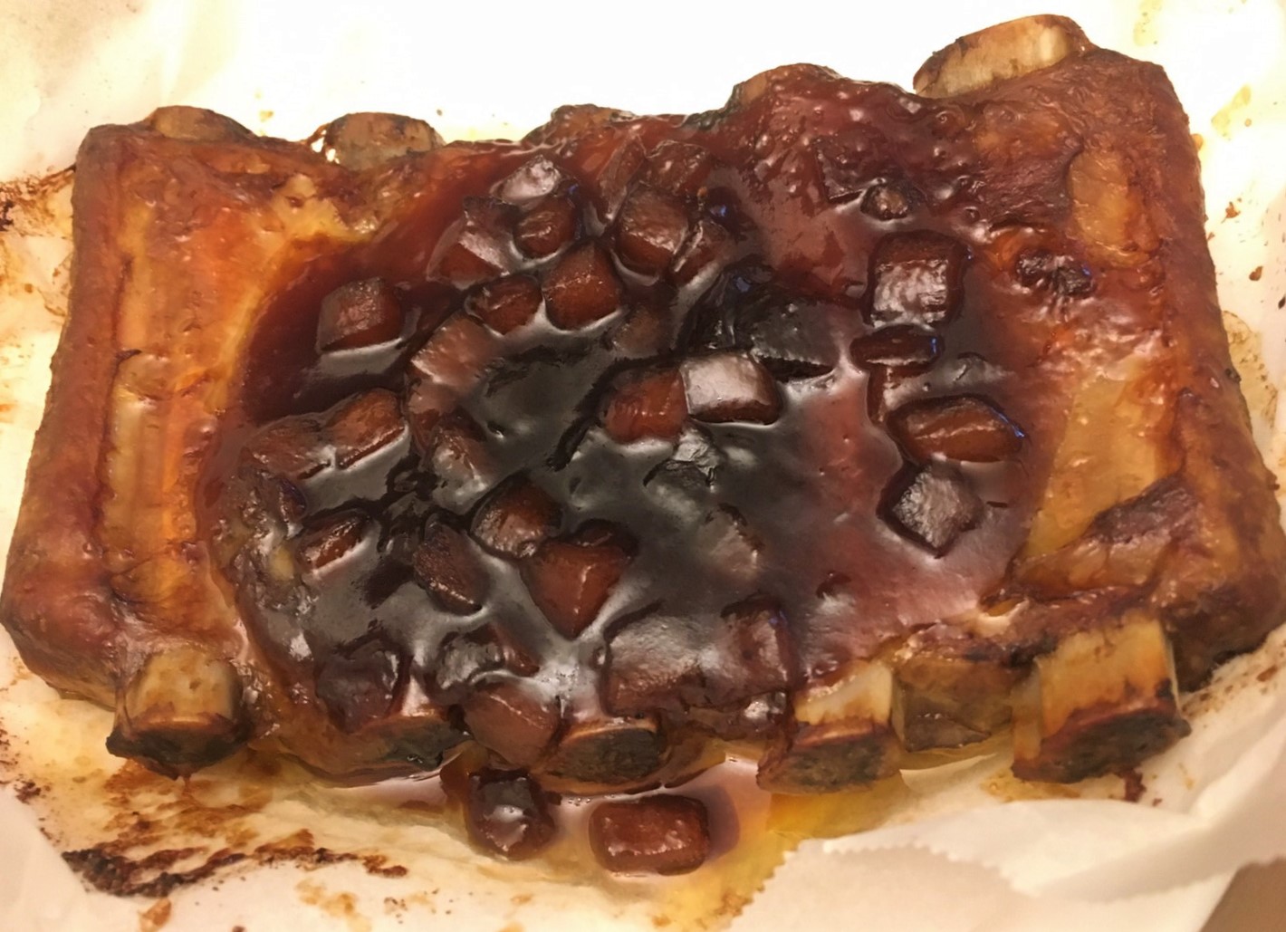 肋排選用大塊軟嫩多汁的腩排,經長時間熟製後,能夠輕鬆就將骨肉分離。