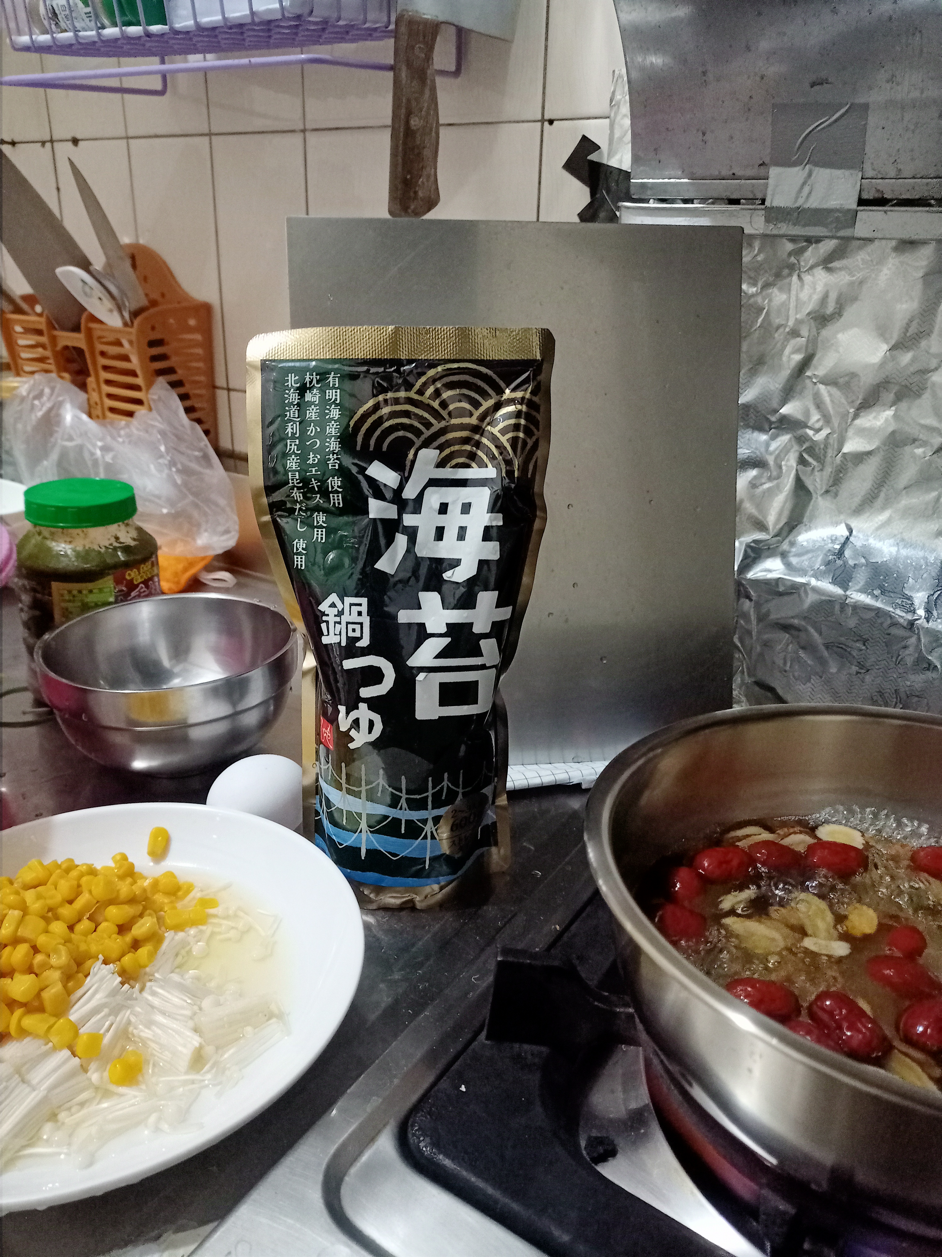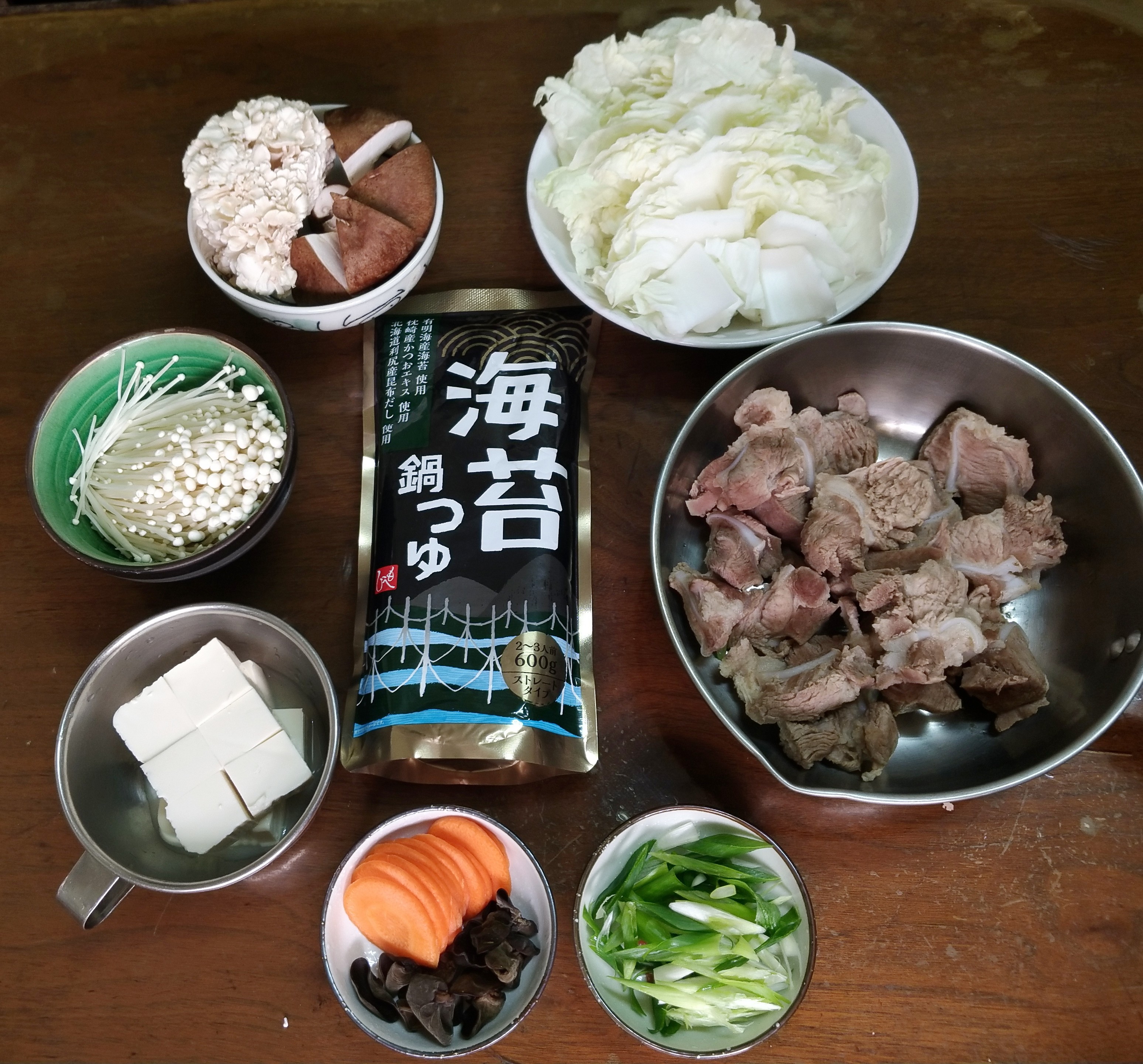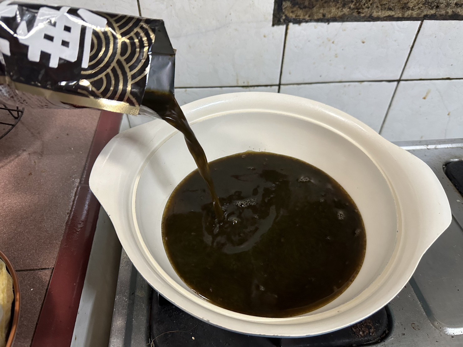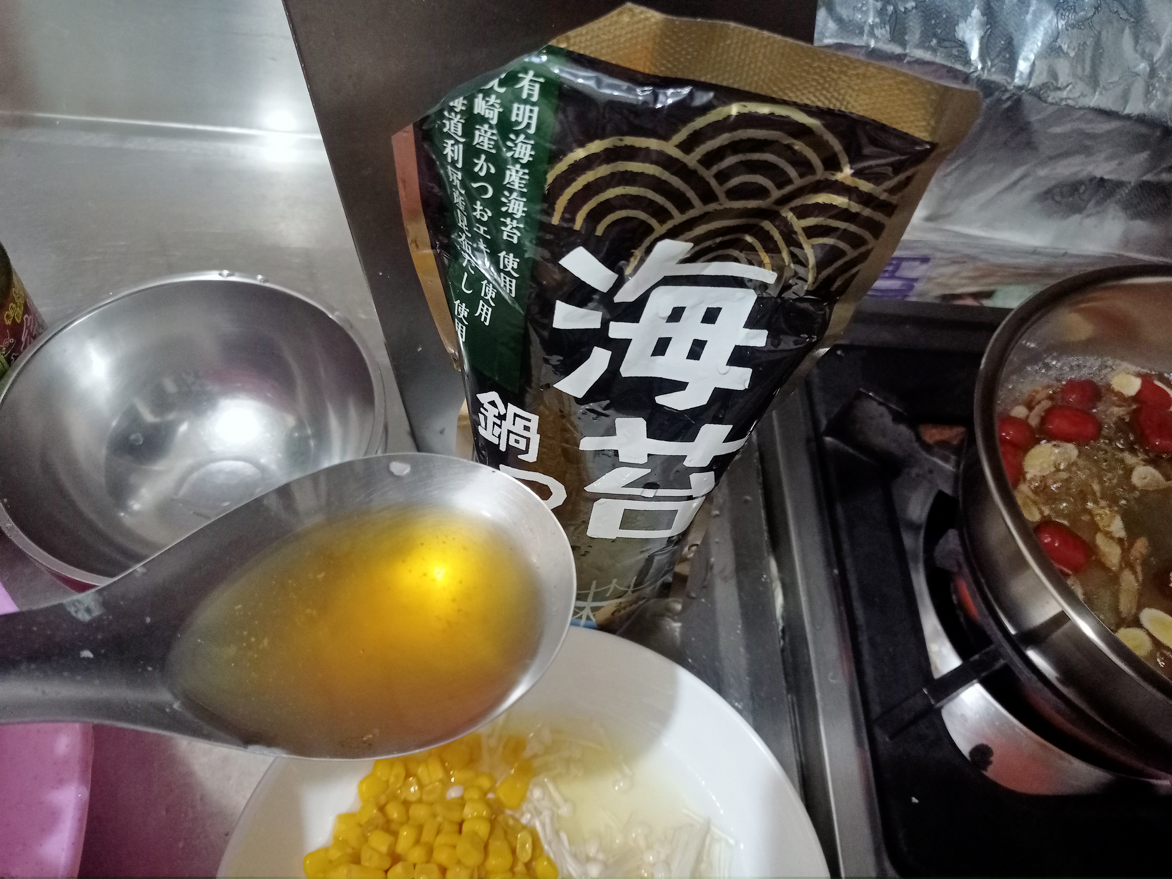水、醬油、調味劑、海苔、水解蛋白、和風調味料、複方水解蛋白、昆布高湯、發酵調味料、果糖葡萄糖漿、蝦醬、海鮮萃取物、沙糖、鰹魚萃取物、複方調味劑