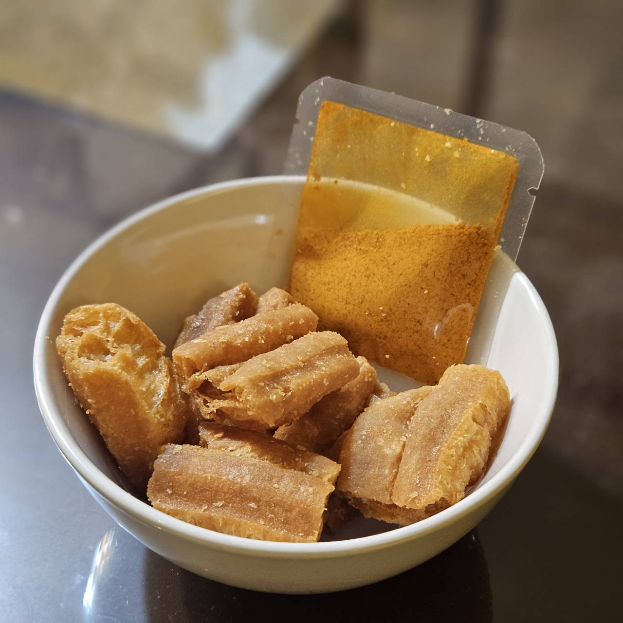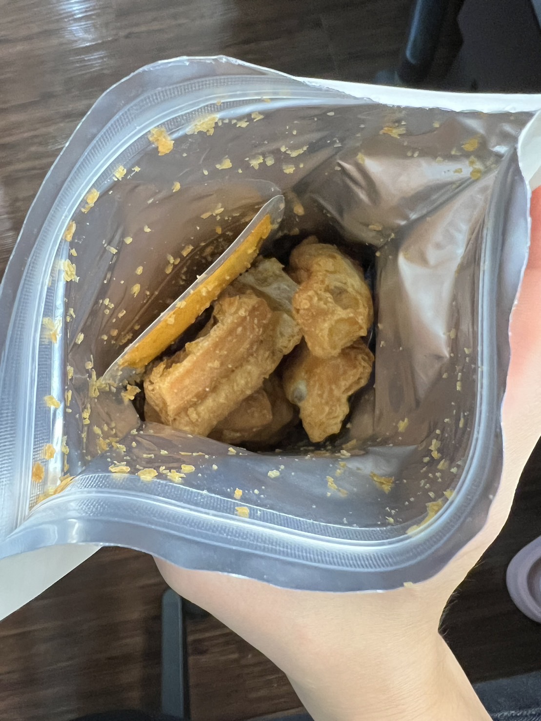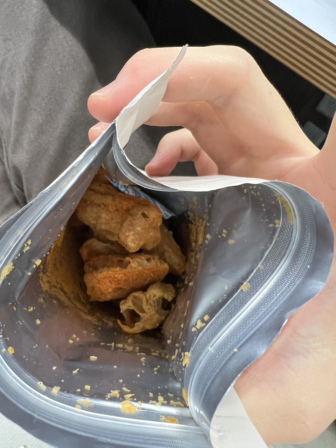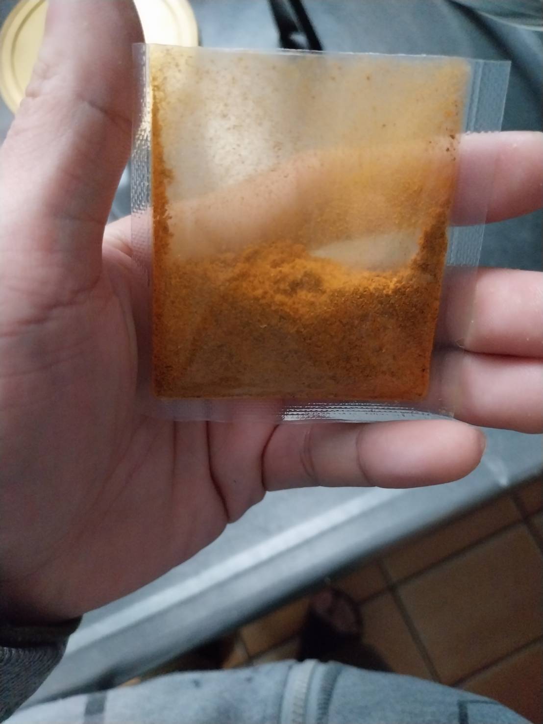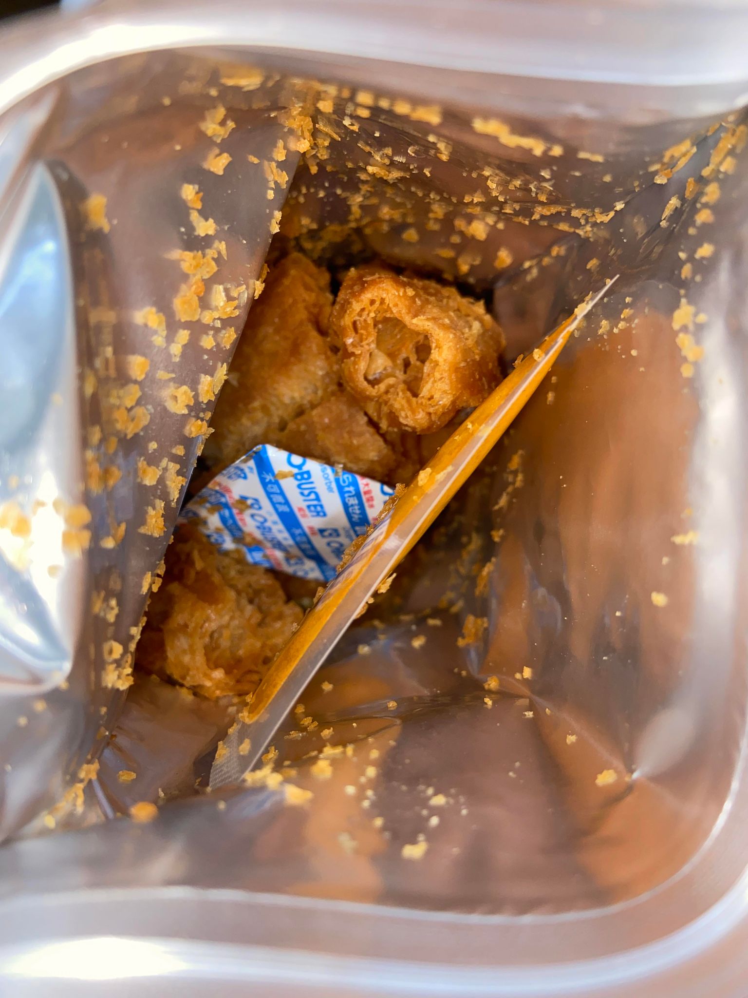 麵粉、油炸油(軟質棕櫚油、大豆油、芥花油、消泡劑(矽樹脂))、鹽、膨脹劑(碳酸氫銨製劑(碳酸氫銨、碳酸鎂))、辣椒粉、非基因改造黃豆粉、豌豆、味精(L-麩酸鈉、5'-次黃嘌呤核苷磷酸二鈉、5'-鳥嘌呤核苷磷酸二鈉)、花生粉、香菇粉(食鹽、香菇、L-麩酸鈉、砂糖、麥芽糊精、葡萄糖、大豆水解蛋白、醬油、蘑菇、5'-次黃嘌呤核苷磷酸二鈉、5'-鳥嘌呤核苷磷酸二鈉、胺基乙酸、酵母抽出物、黑胡椒、氧化澱粉、葵花籽油、芥花油、糊精、琥珀酸、碳酸鉀、檸檬酸)、青花椒粉、花椒粉、糖、芝麻、香料粉(八角、當歸、黨蔘、甘草)、二氧化矽