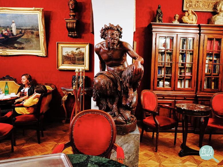 其實,義大利政府曾在1953年明文規定,不管未來由誰負責經營古希臘咖啡館,都得保證這家咖啡館完整無缺,因為裡頭的藝術作品和裝潢都在政府的保護範圍內。