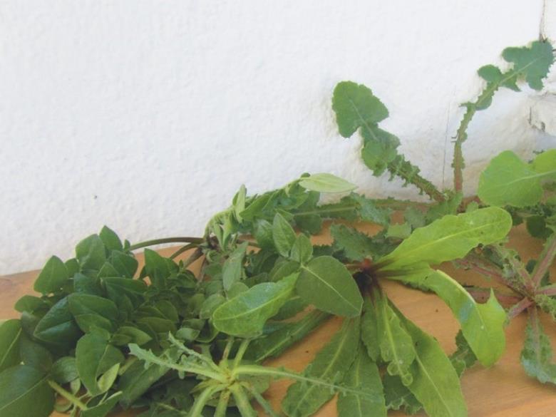 混合幾種不同野菜是最好的:蒲公英、苦苣(zochos)和菊苣(radikia)都非常苦,野萵苣幾乎是過分的苦,矢車菊(knapweed)很有滋味,「小腳丫」(podarakia)多汁而且是肉質的,但這兩種都很難大量食用。以下列出一些常見種類。