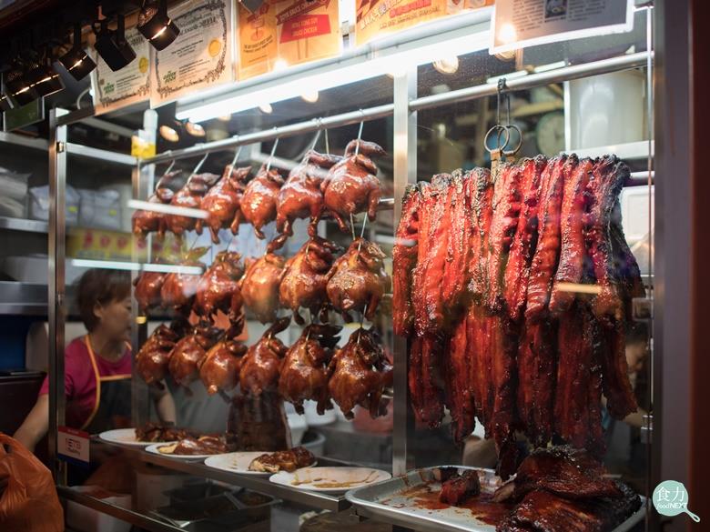 我們對港式燒臘店的第一印象,必定是廚師在灶間手起刀落,在他面前有一整排吊起來的燒鵝、燒鴨和油雞。其實,燒鵝與燒鴨無論在製法、吃法上並無差別,都是填滿調味料,掛進炭爐高溫燒烤而成,再配以甜酸醬食用,皮脆帶有光澤、肉嫩多汁且毫無腥味方為上品。不過,燒鵝比較肥美,肉質較佳,因而成本略高,有些店家會選用燒鴨替代。