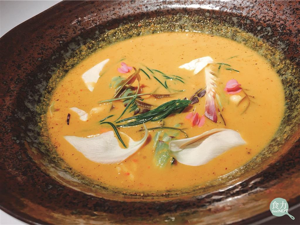 年輕主廚做出了非常有個性的泰國菜,時髦、精簡但又熟悉掌握了泰國菜的重要元素「香料」,一入口,你知道,那是泰國味道,但是換了一個國際共通的語言,更容易為外人接受。