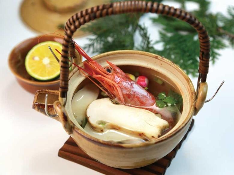 土瓶又是一個旬(編按:しゅん【旬】,代表食材是當季盛產、品質最新鮮的時刻)的代言人,以嗅覺捕捉季節的一道菜。比方有奇香的秋天食材之王──松茸,大多是放在土瓶內。了解了土瓶的功能性和食材的價值,自然會聯想,如何吃才能享受到最後一滴的香味?