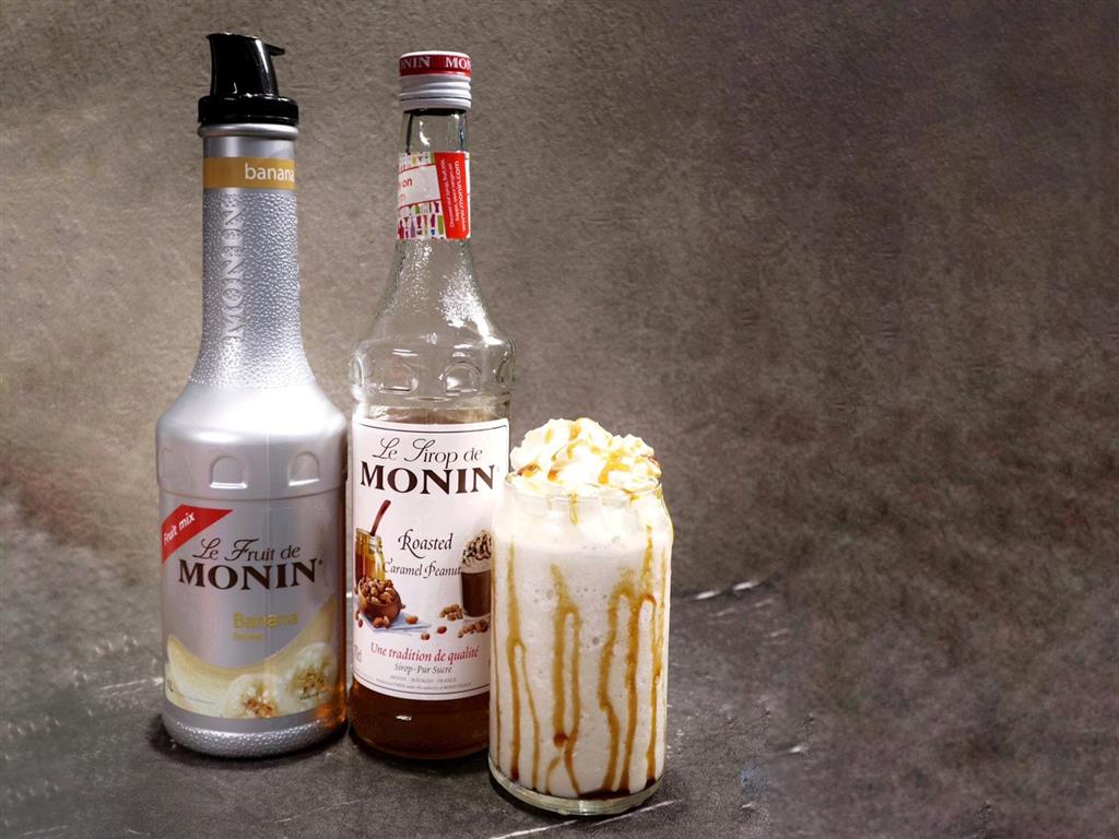 開元食品針對飲品消費市場的需求洞察,導入新潮流與新趨勢結合的應用,深受餐飲客戶支持參與,本次MONIN大中華區研發顧問袁浚傑(Kit Yuen)特別帶來多款創意飲品的應用技法,例如「好事花生香草奶昔」就是使用MONIN烤焦糖花生糖漿、香蕉果泥及香草冰沙液糖漿、戀職人鮮奶等原料,搭配冰塊攪打成奶昔,裝飾奶油、香蕉片後,再以MONIN藝術家焦糖風味淋醬筆來造型點綴,就是一款非常符合台灣民眾口味的調飲。