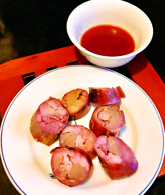 「膽肝」(tám-kuann)早年是宜蘭名產,以醃漬、煙燻、風乾豬肝製成。客家人善於醃製食物,也有「客家豬膽肝」的食品。早年的酒家菜、辦桌菜有一道「肝燉」(kuann-tūn),這是取台語「肝」與「官」同音的吉祥菜名。肝燉以豬肝、肥肉、荸薺、豆腐、雞蛋等食材,切碎拌勻放入大碗中,以小火蒸煮之後,倒扣在大而較深的盤子上,又香又綿,很受歡迎。基隆有一家專賣以豬肝和豬肉做成「豬肝腸」的燒烤老店,一直熱賣到今天。早年,基隆的紅糟肉圓都加了豬肝,連基隆廟口著名的炭烤三明治也包豬肝。