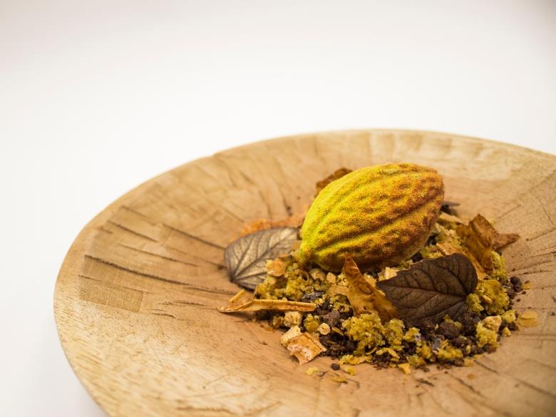 而所謂色香味俱全,Escalera所說的這道甜點名為「森林EL Bosque」,不僅吃得出森林的味道,也把森林景象擺在食客眼前。「我們利用各種技法,製造出不同質地,打造出甜點的外貌。」他說。在味覺與視覺之外,這麼做往往也能創造口感與冷熱變化,取悅了觸覺,發揮盤飾甜點的優勢。