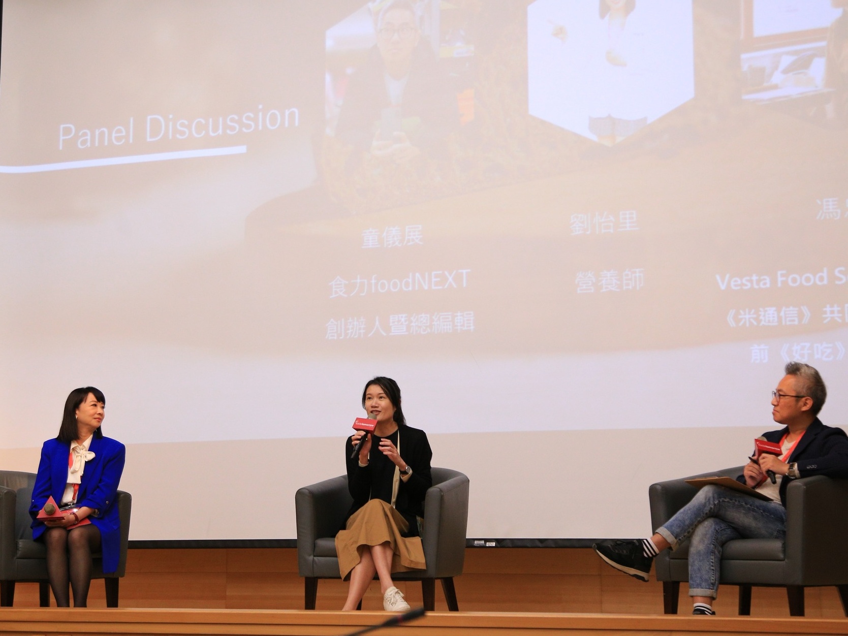 「北歐風格飲食」主題論壇由《食力》創辦人暨總編輯童儀展(右)主持,並邀請到營養師劉怡里(左)、Vesta Food Solution內容總監馮忠恬(中)一同就北歐飲食文化、全榖物營養與未來飲食趨勢3大主旨進行分享。(圖片來源:台灣焙樂道提供)
