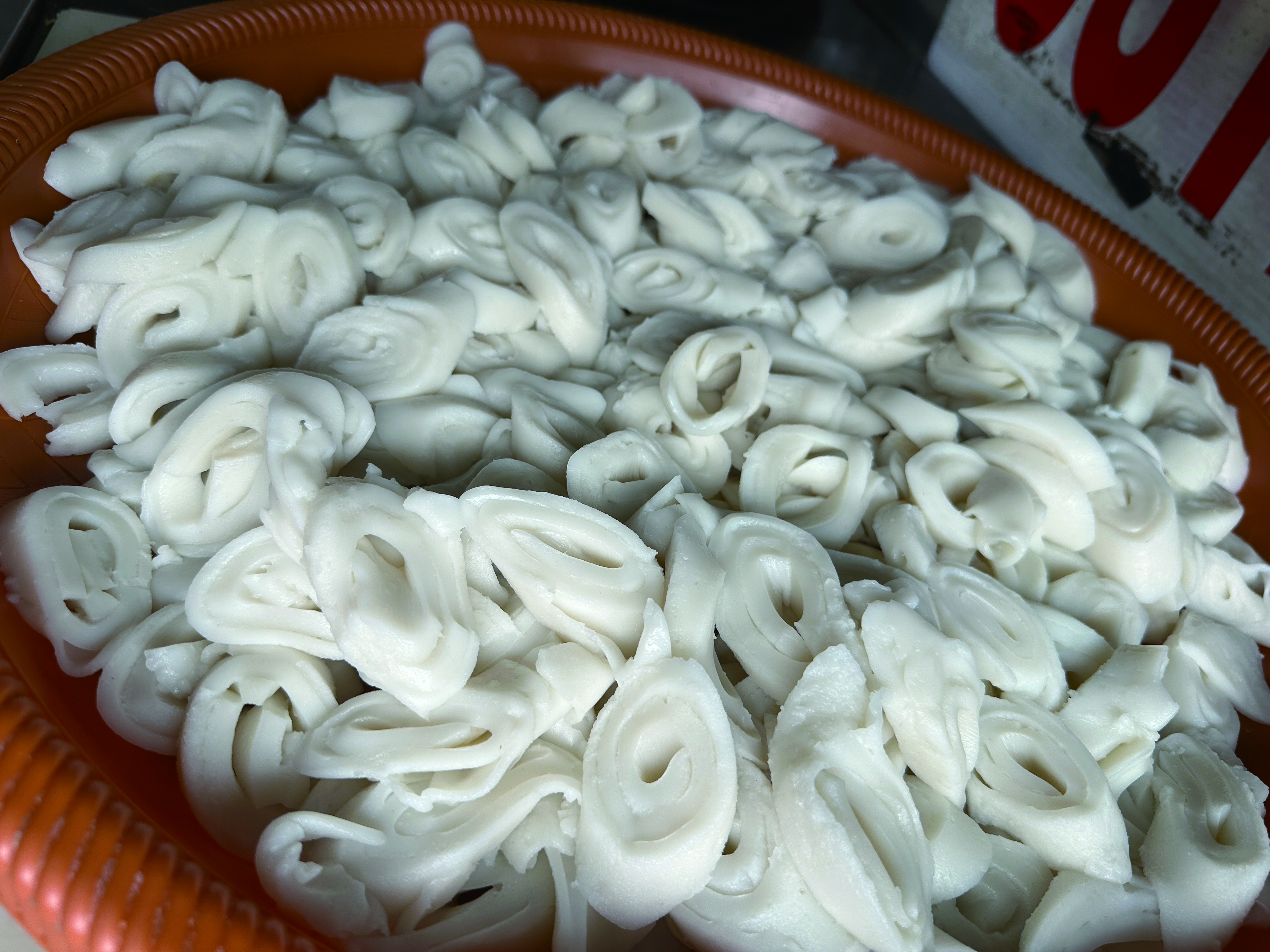 繼續往東海岸前進則有「吉蘭丹州叻沙」(Kelantan Laksam)將米漿炊熟後捲起切段,一如廣東人的豬腸粉外型,佐以椰漿、鮮魚熬出白皚皚的醬,在眾多叻沙紅林中異軍突起。