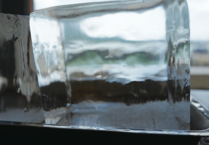 製作純冰,是將RO水放進製冰設備裡,大約三天就可製成;但天然冰需要一、兩個月,甚至更久的時間才能成形,很神奇的是,結冰時間越慢,溶冰時間也越慢。之前為了研究冰塊,我曾找過東京工業大學與東京海洋大學共同研究的科學報吿,裡頭就指出人造冰塊和