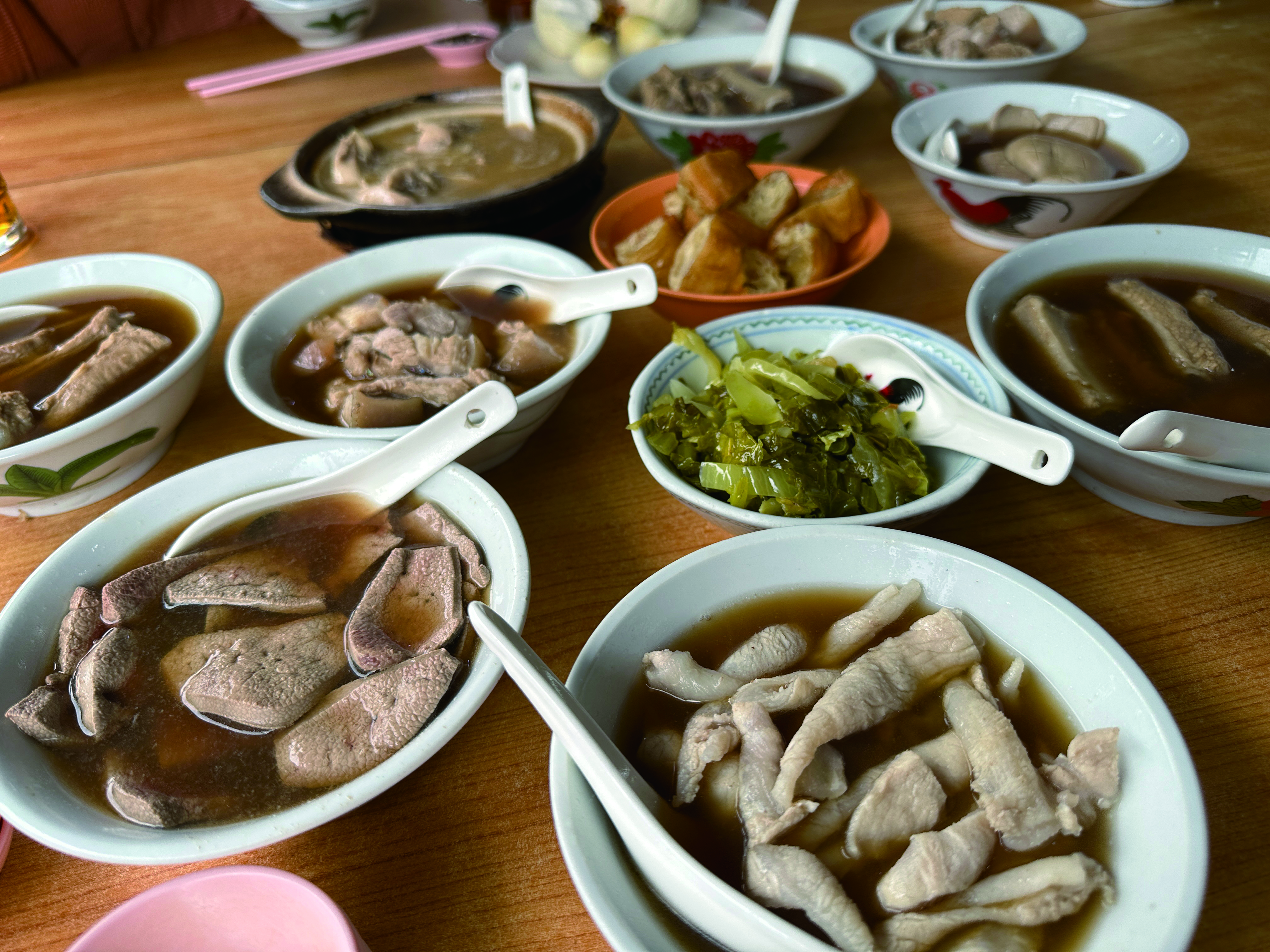 至於第四種要屬巴生有一派滷湯型,乍看就是福建滷肉手法,實質用藥膳辛香料熬煮,肉剁大塊一扯即骨肉分離,店家老闆為了保持湯汁濃郁,每天精準計算肉與水的比例,份量固定,代表店家就是巴生三美和毛山稿,老饕直接走到一大鍋混熬豬肉前,完全眼見為憑,現點現切,這一類老店以雞公碗盛裝,要加湯?門都沒有!