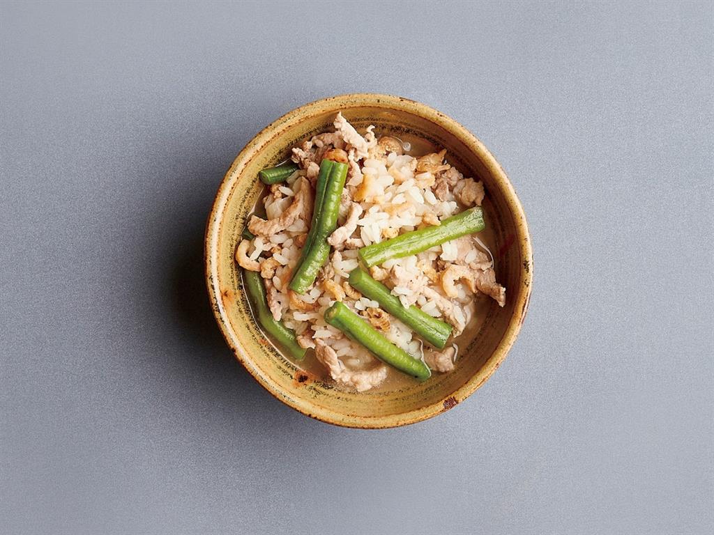 註:豇豆也可換成絲瓜,4人份用量是一條絲瓜(約300克)。削除絲瓜外皮,切塊,把豇豆換成絲瓜,即可煮出美味的絲瓜粥。