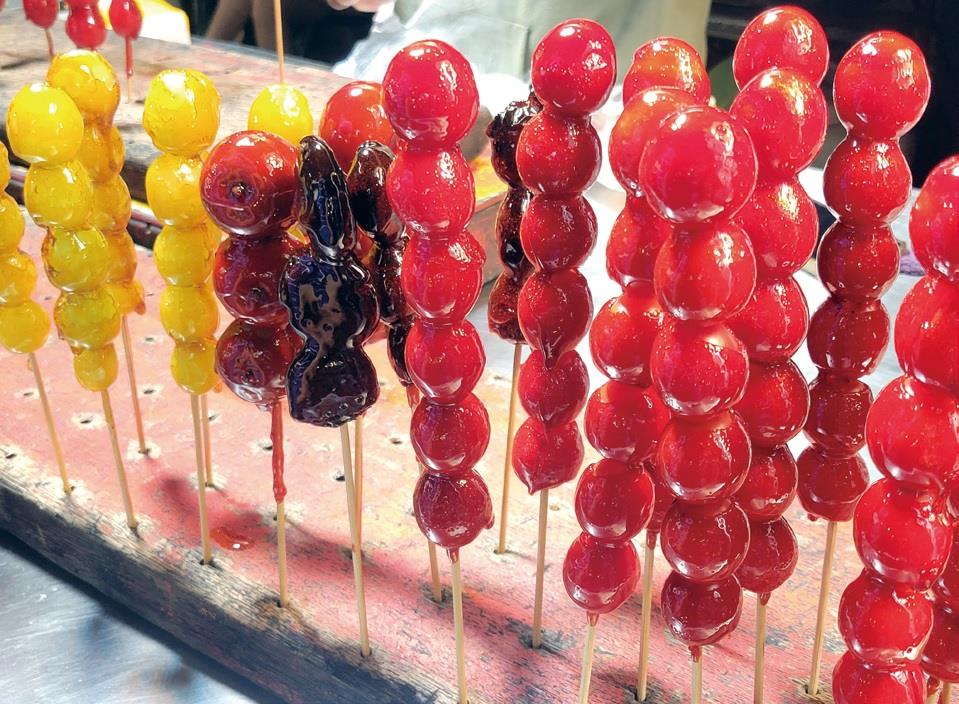 能做糖葫蘆的水果選擇非常多,只是簡單裏上麥芽糖,就有很誘人的好賣相,是在夜市邊走邊吃的好選項之一。(圖片來源:幸福文化提供)