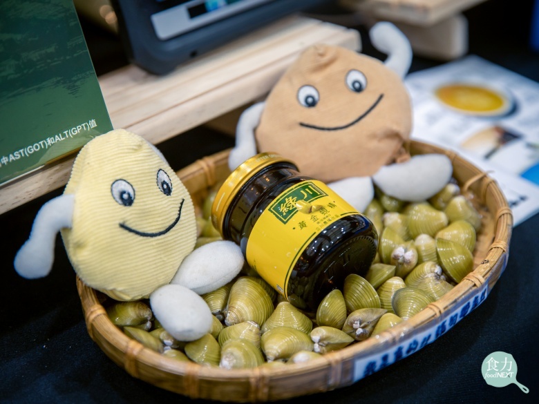 立川漁場在「2022花蓮食農博覽會」上分享環境保護的重要性,一般台灣河蜆外殼呈暗褐色或漆黑色,但由於壽豐地區的水質較佳,此地生產的蜆外殼呈現黃褐色,故被稱為「黃金蜆」。(張偉明 攝)