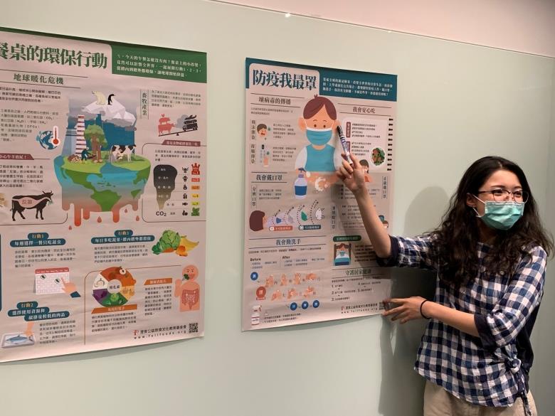 而2021年配合影響全球環境甚鉅的新冠肺炎,特別將防疫須知融入圖譜,提醒民眾如何從生活中落實防疫工作,藉由「防疫我最罩」圖譜,傳達防疫的重要性;也因應聯合國呼籲氣候變遷所可能帶來對環境的改變,製作「餐桌的環保行動」主題圖譜,倡導「低碳行動三部曲」,鼓勵大家從餐桌上的小改變,為環境帶來正向影響。