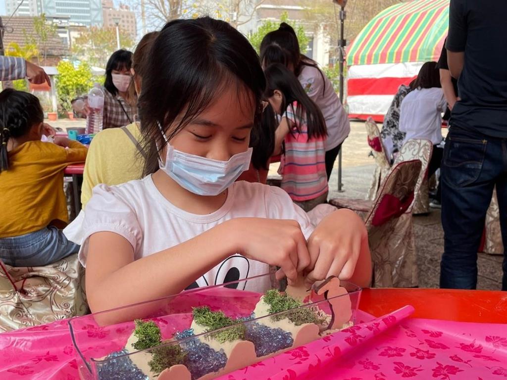 早上的古蹟闖關遊戲,帶領親子們認識台灣閩南建築物特色與張家古廟建築特色,孩子們通過「聰明門」拍照並學習與食物相關的吉祥話,透過親子互動一同完成闖關,更加深了親子雙方的感情。下午的「米好食光」食育學堂,透過社團法人台灣大米缸永續關懷協會開發設計的米教具,讓大家認識米粒結構及稻米的種植過程,並由食育講師帶著大家一起製作節慶代表米食艾草粿,祈求平安又有財。