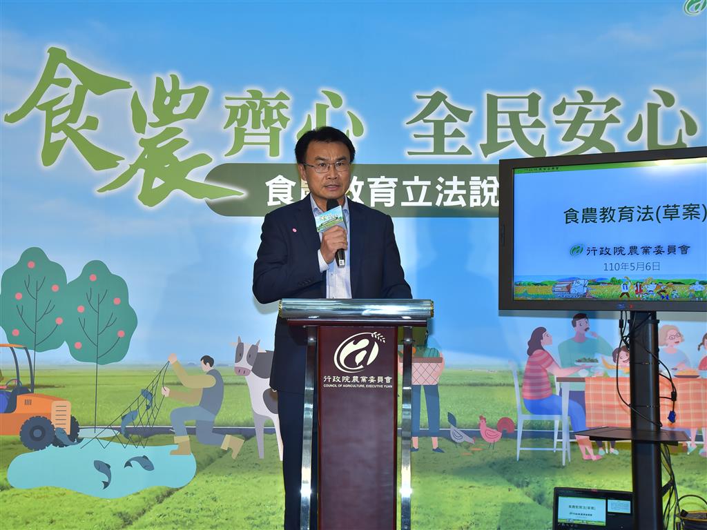 農委會主委陳吉仲表示,食農教育法推動的對象涵蓋家庭、學校、政府部門、農民團體、食品業者、社區、民間團體等,幾乎全民都包括在內;內容則包含支持在地農業、鼓勵地產地消、強化食農連結、培養均衡飲食、惜食減少浪費、傳承飲食文化、國民免於飢餓等。期望大家都能認知到農業不只是農民的農業,更是全民的農業,明(2022)年食農教育的相關預算為10億元,希望能進一步推動。