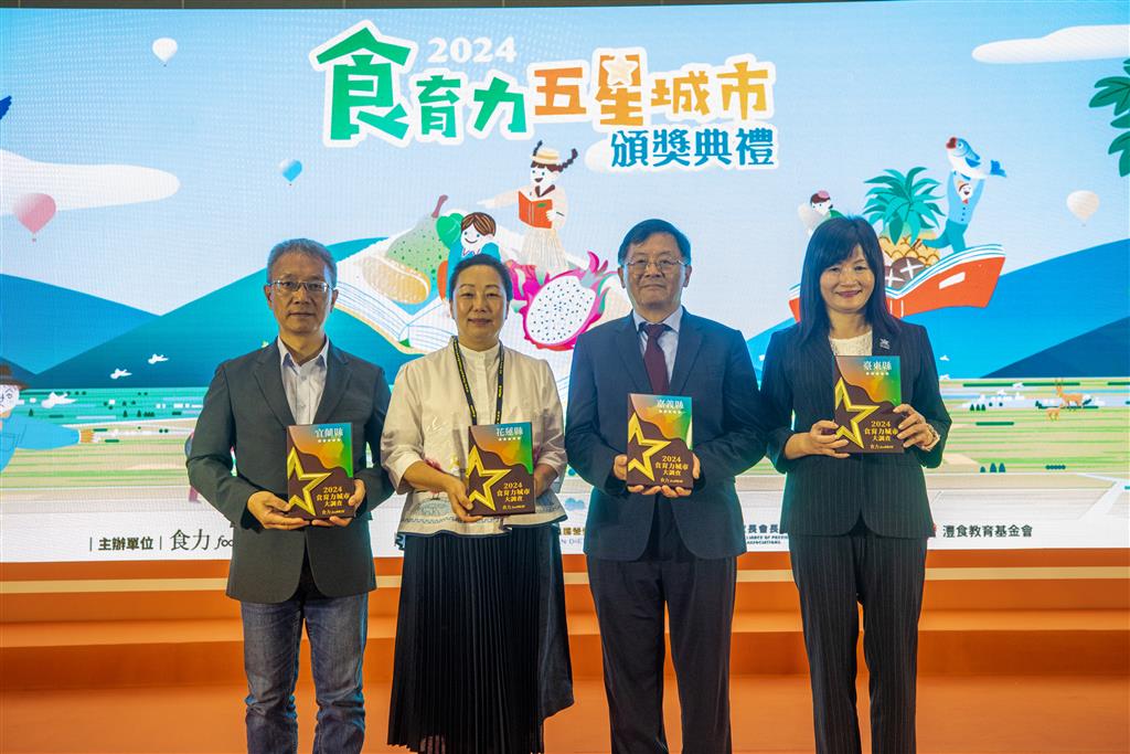 《食力》2024食育力城市大調查進入第4屆,2024年6月27日於南港展覽館2館舉辦「2024食育力五星城市頒獎典禮」,獲得五星殊榮的4座城市分別由花蓮縣長徐榛蔚、宜蘭縣副縣長林茂盛、嘉義縣副縣長劉培東、台東縣農業處處長江慧卿等人代表出席領獎,同時分享各縣市在食農教育上的方針與成果。