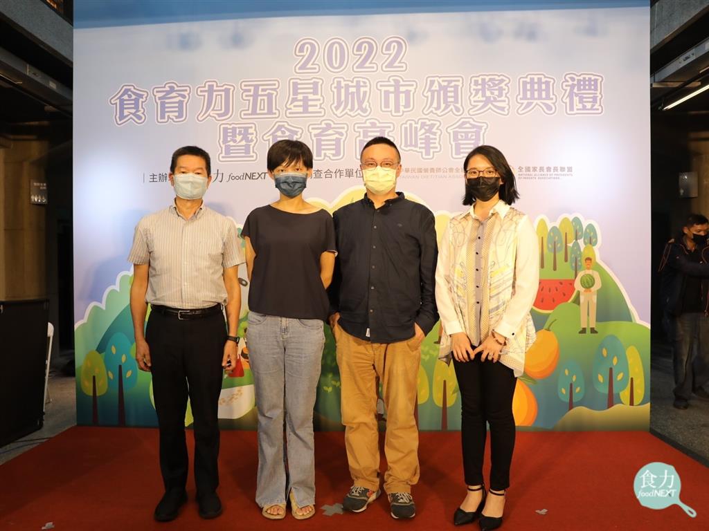 「2022食育高峰會」讓民間推動食育努力的單位與民溝通,讓大家了解不只是立法,從簡單吃、認識土地開始有很多選性推法可以執行。由左至右為育秀教育基金會董事長景虎士、土生土長創辦人顧瑋、灃食公益飲食文化教育基金會資深經理葉俊甫、食力傳媒副總編輯林玉婷。(陳瀅瀅攝)