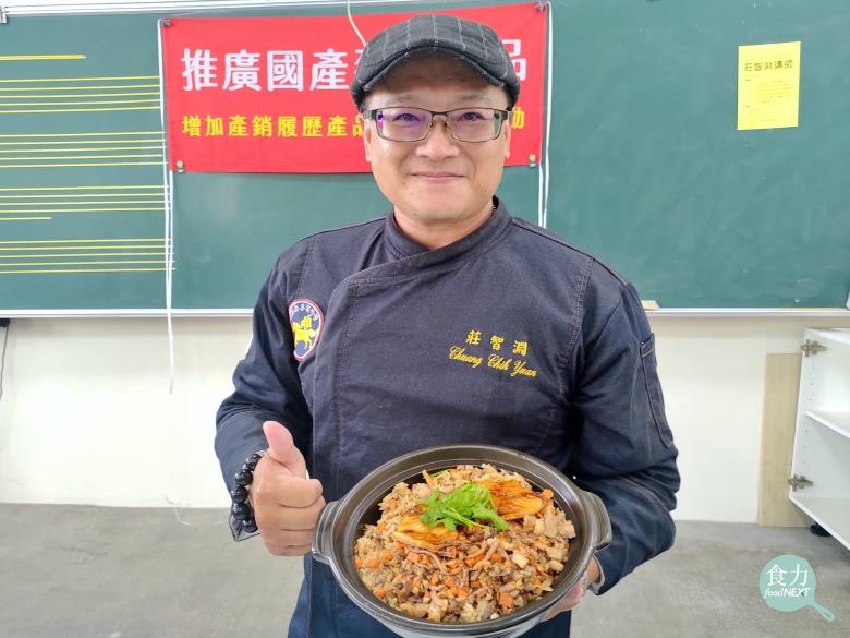 為讓校園午餐工作者持續精進廚藝知識,也能善用產業產銷履歷食材、國產肉品,高雄市文山高中營養師陳盟仁邀請赴日取得金牌的總舖師莊智淵,設計3道辦桌功夫菜,讓校園午餐菜單更豐富多樣。