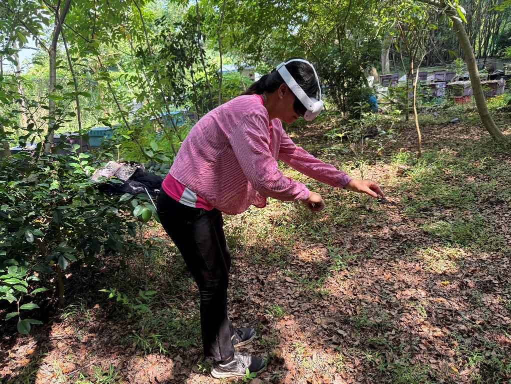 苗栗農改場表示,傳統的養蜂教學需要走入蜂場,對於初學者或害怕蜜蜂的人而言,不僅心理負擔大,也存在被螫傷的潛在風險。該場新開發的「蜂蜜採集MR沉浸式體驗數位教材」,可透過數位科技模擬蜂場管理及採蜜過程,體驗者只需伸出雙手,就能操作「擬真」的採蜜工具,學習如何打開蜂箱、取出巢脾、尋找蜂王、刮除蠟蓋及搖蜜等,並可重複操作,不受天候、場地與蜂群狀態影響。
