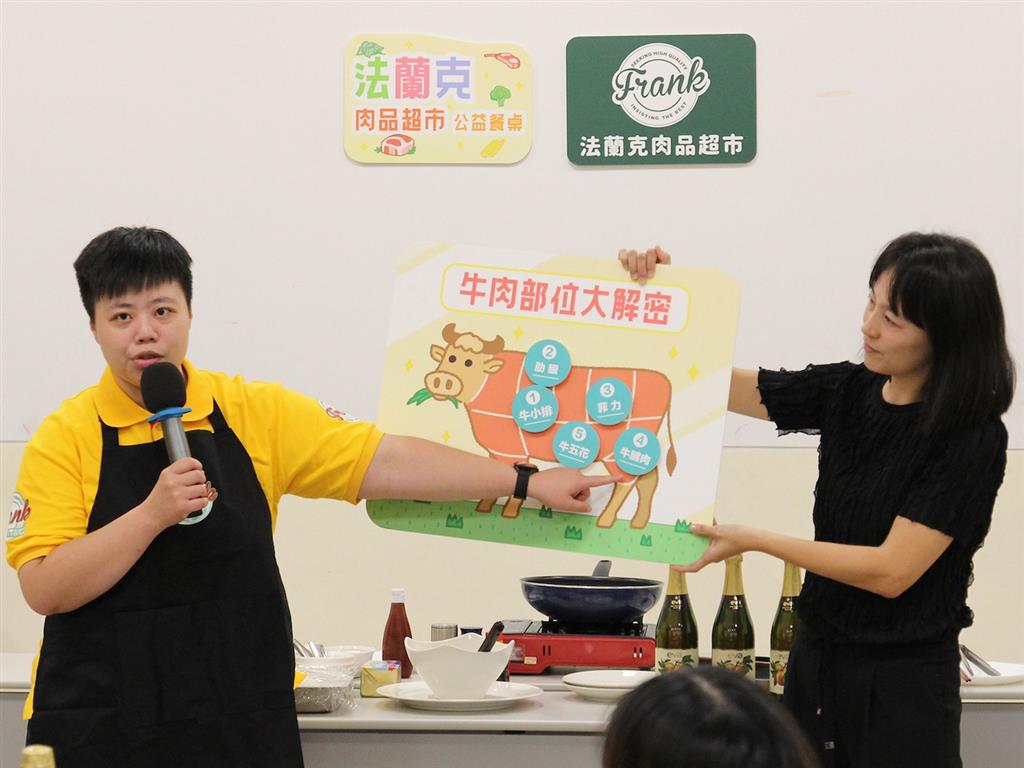 活動當日由法蘭克企業志工,帶領趣味互動遊戲,幫助孩子們瞭解肉品採購撇步、牛肉部位、蔬果維他命C含量等食材知識,精心設計有獎徵答橋段,引發孩子們學習動力。