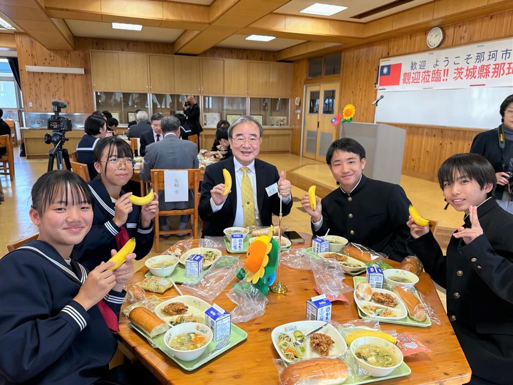 農業部表示,自2019年與日本茨城縣笠間市簽訂合作備忘錄以來,香蕉因食用方便,深受當地中小學童喜愛,採購數量也由2019年1萬根,至今年超過5.4萬根。台灣香蕉的香氣與紮實口感深具魅力,供餐活動當天,學童品嚐台灣香蕉後紛紛表示「歐伊系」,「台灣香蕉特別香,超喜歡!」,當地教師也表示香蕉營養豐富,非常適合供應孩子們午餐水果。同時也分享創新加工產品「綠香蕉薯條餅乾」,以未催熟的青香蕉加工利用,口感酥脆大受好評。