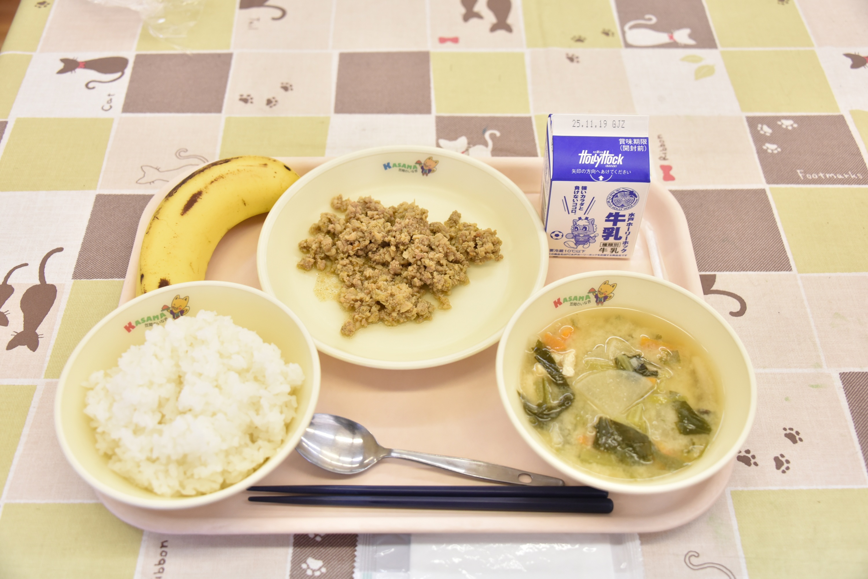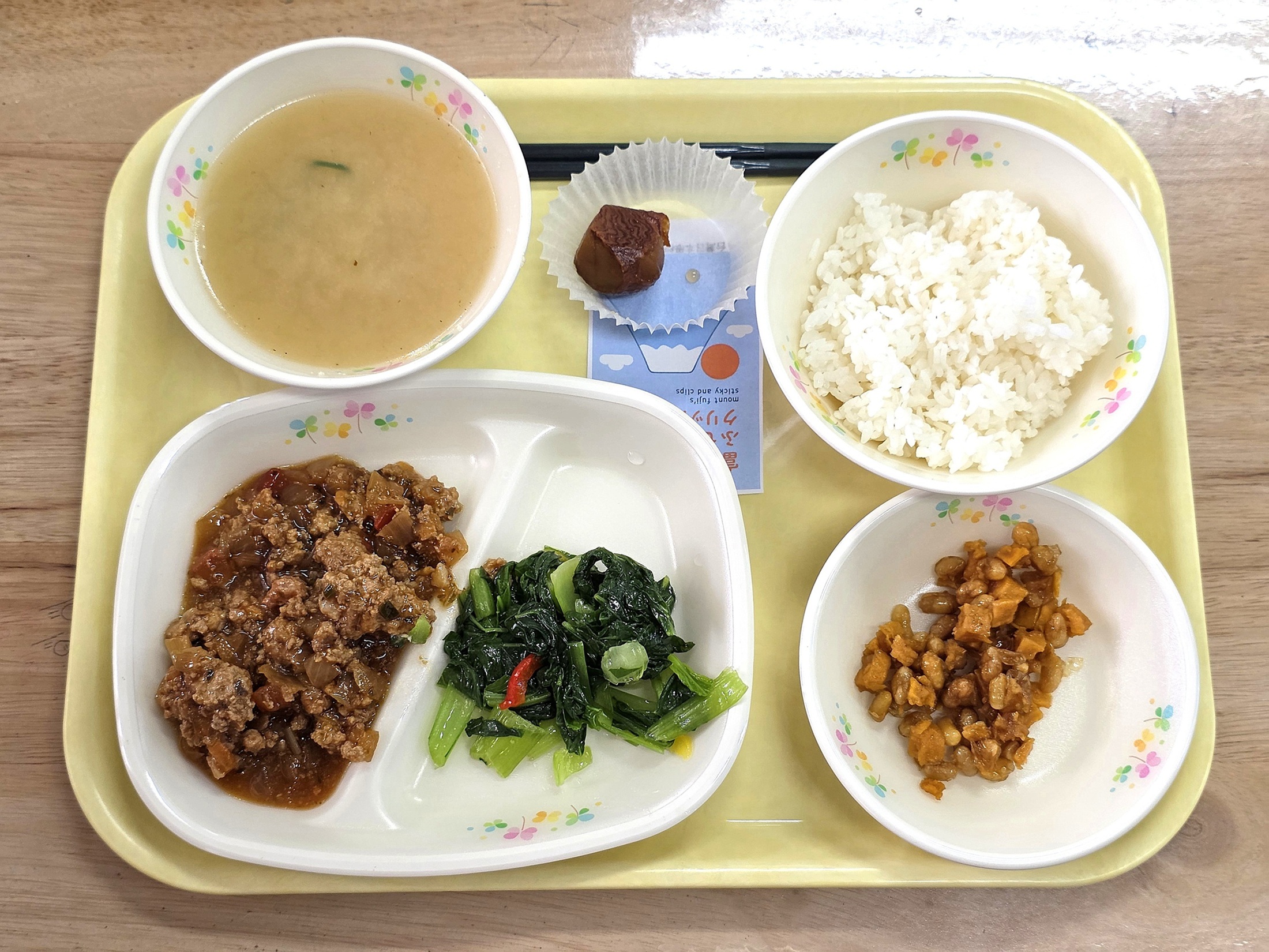 農糧署進一步說明,11月6日跨國學校午餐交流適逢日本笠間市內學校辦理的「台灣香蕉日」,別具意義。台日兩校共同菜單納入了雙方營養師的巧思,台灣方面設計了超級下飯的「台式打拋肉」,日本方面則設計了溫潤健康的「豆乳味噌湯」,除了共享的共通菜色,兩校更交換了最具代表性的特色餐點,台灣學童有幸品嚐到來自「日本笠間台灣辦事處」所提供的「栗子澀皮煮」,而日本學童則享用了來自台灣的國產水果「香蕉」。