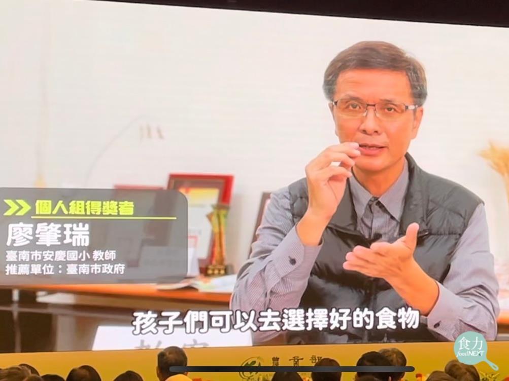 台南安慶國小特教班廖肇瑞老師榮獲「國家食農教育傑出貢獻獎」個人組特優獎,廖肇瑞表示,要讓特教生從低頭、僅能幫一個小忙,到成為可以導覽、介紹的推手,讓特教生們提升自信心,也讓學童了解到食材背後的故事,在未來也還有許多共同成長的空間。