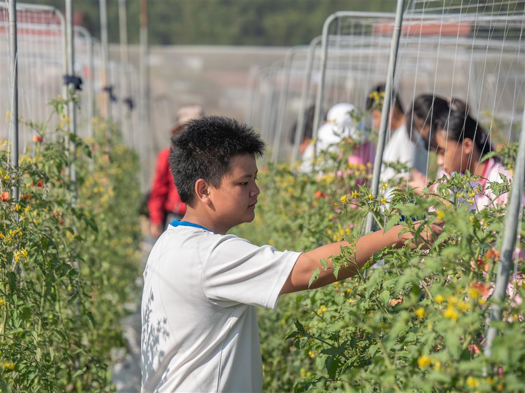 南隆國中學生在魚菜共生農場採收農作物。(圖片來源:南隆國中提供)