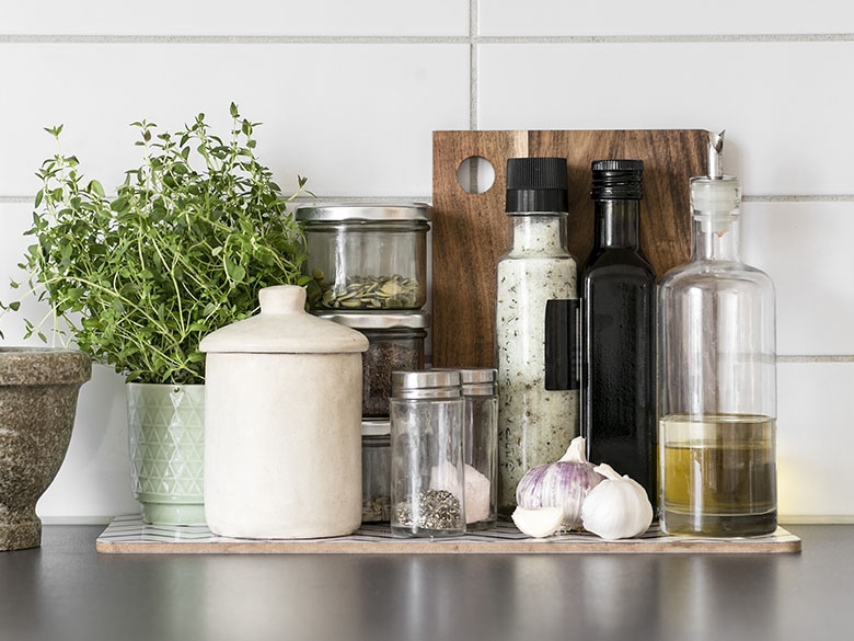 用香料或新鮮香草不僅可提味,且不會增加額外的脂肪、糖、鹽或熱量。試試以新鮮洋香菜、羅勒、蒔蘿與芫荽替代乾燥香料,為菜色增加獨特的新鮮風味(通常一小匙乾燥香料相當於一大匙新鮮香料)。洋香菜的溫和滋味與許多菜色都很搭,可在料理過程中加入,也可最後再灑上。新鮮羅勒是義大利菜的必備品,和番茄是絕配。蒔蘿和小黃瓜、青豆與其他蔬菜很合。奧勒岡適合撒在沙拉上,而芫荽可賦予莎莎醬、辣醬、亞洲料理與咖哩獨特滋味。烹煮完成後加入新鮮香草,風味最好。