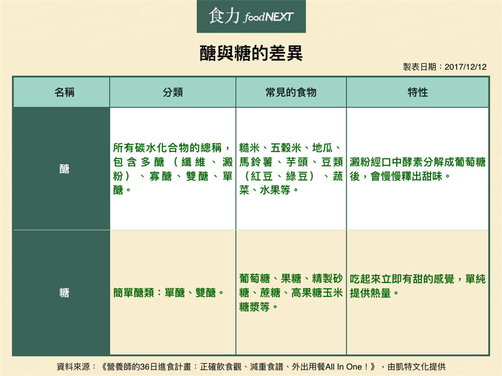 「醣」跟「糖」音讀起來一樣,但其實並不相同,醣類這邊泛指所有的碳水化合物,其實也含括「糖」在內,這邊簡單來看看兩者的差異。