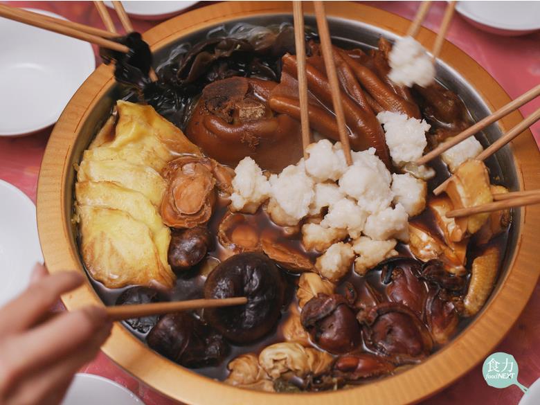 6、撈油減醬:年菜加熱前也可先將白色凝固油脂去除,可減少油脂的攝取。並於製備時減少醬包加入的量,食用時別搭配過量的沾醬,就可減少鹽分及熱量的攝取且較可吃出食材原味。