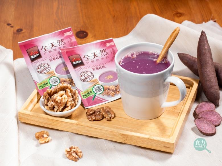 萬歲牌全天然什穀堅果飲紫薯核桃口味以「全天然、成分全部看得懂」的單純配方,搭配「原果研磨」技術將整粒穀物與堅果磨成細粉,完整保留堅果穀物的營養與香氣,100%無添加人工化學添加物,只以天然食材的自然香甜與紫薯原色,打造出極致視覺、味覺與嗅覺感受的美味堅果飲,獲得食驗室體驗員綜合評分9分的超高分好評。