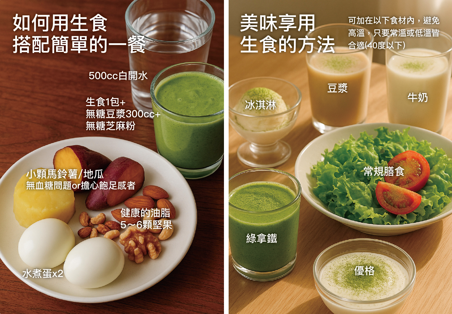 2、全食物原則:生食完整保留食材原型,根、莖、葉、果實全株使用,減少營養流失。