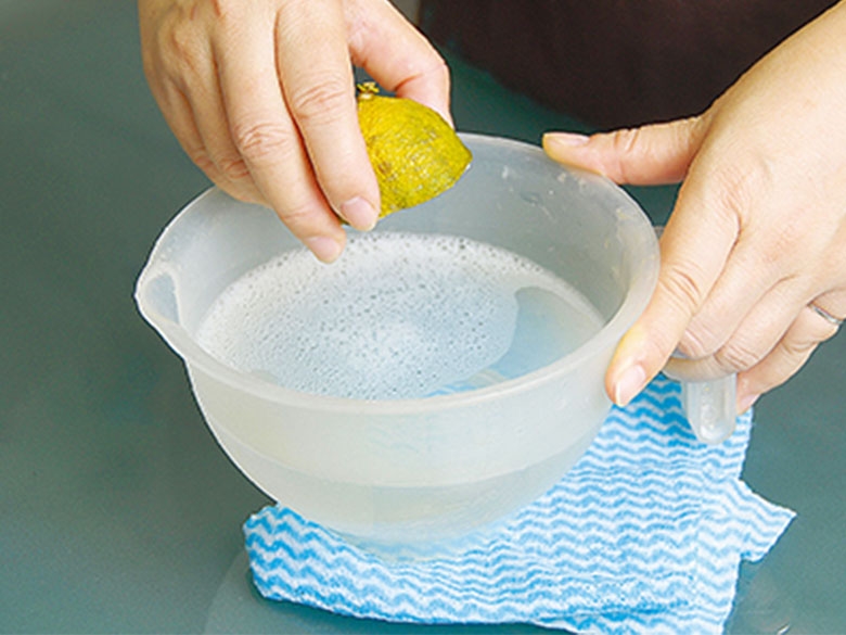 1.利用擠完汁的檸檬皮放在熱水裡,微波一分鐘,加熱的檸檬皮會釋放出有清潔功效的柑橘精油。