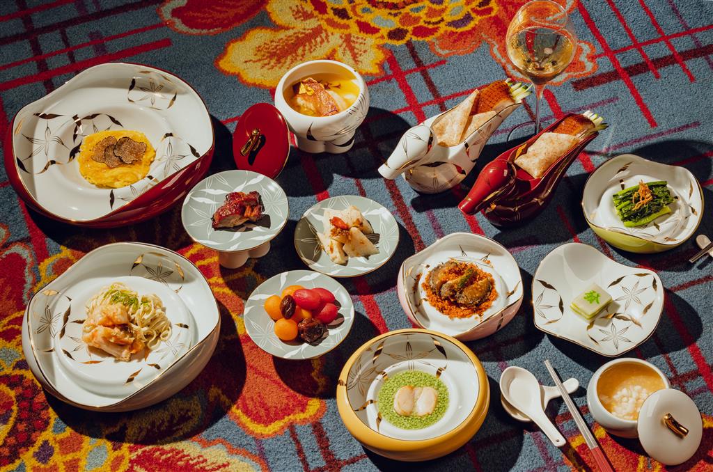 聯名套餐以經典菜餚「鹿野雞金湯」、「秘制脆皮鵝」、「三元片皮鴨」等菜色發想趣味食器,包含保溫盅的金湯碗、鵝型的鴨鵝捲盤、波浪弧形的主菜深盤等,餐食器型的圓潤優雅、柔軟曲線呼應著團聚的圓滿,在美麗與實用性間取得平衡。