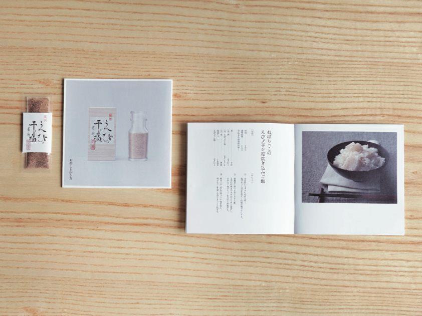 以「日本新糠蝦海鹽」為例,為鳥取縣的食品製造商製作以全國為對象的商品促銷用概念食譜。以「富地方色彩的飲食及生活」為骨幹,清楚營造出和大廠所展開的宣傳的差別化,精心設計出具有地方特色、能將商品優點發揮地淋漓盡致的食譜及視覺,讓食譜及視覺擔任直接影響到銷售的「業務員」角色。