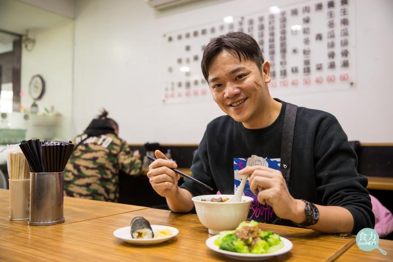 這個時間吃排骨酥麵?索艾克果然是以嗜吃傳統食物聞名的主廚,「早上吃排骨酥好像很重口味,但它其實很清爽,」他放下勺子露出滿意地微笑,接著細數這碗早餐麵的好處:入味的排骨酥、有點嚼勁的麵條、香香的金針花,好像有抓醃過的高麗菜,吃起來又甘又脆,「湯湯水水鹹鹹的熱食,吃完之後,真的會覺得今天比較有力氣一點」。